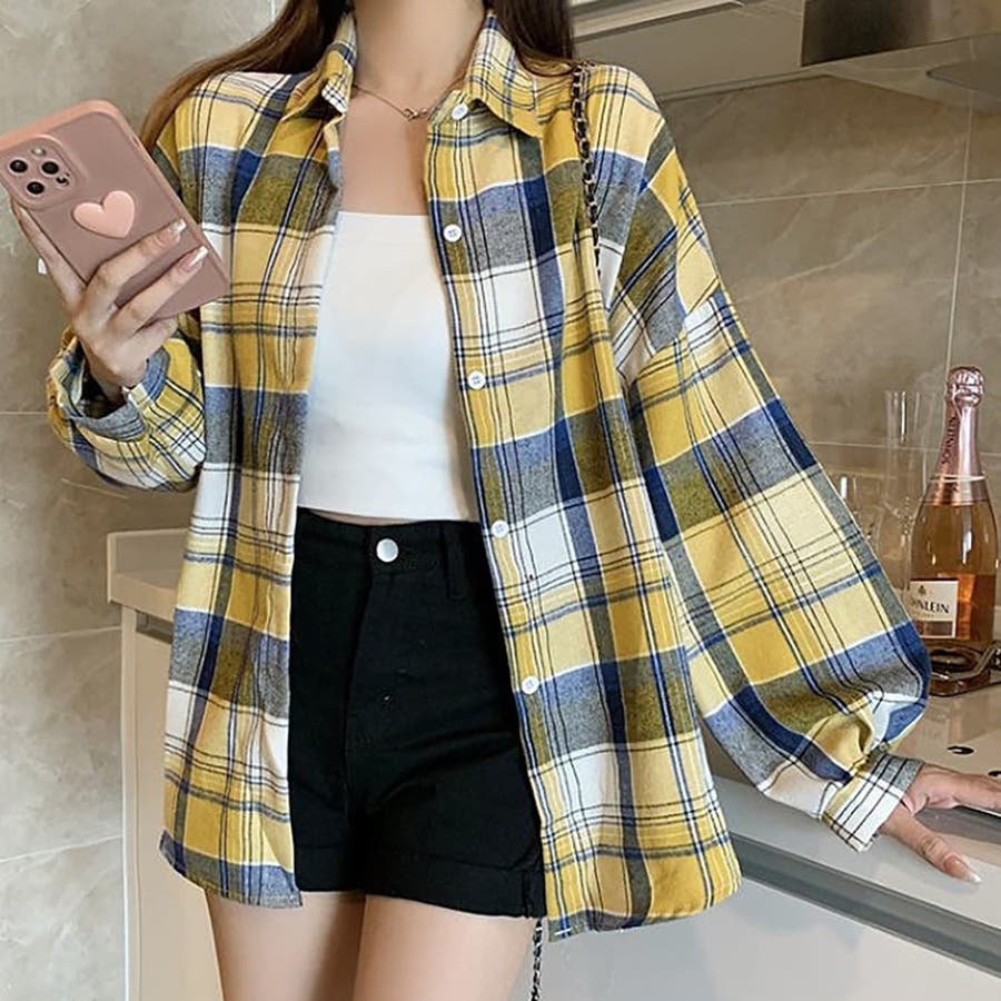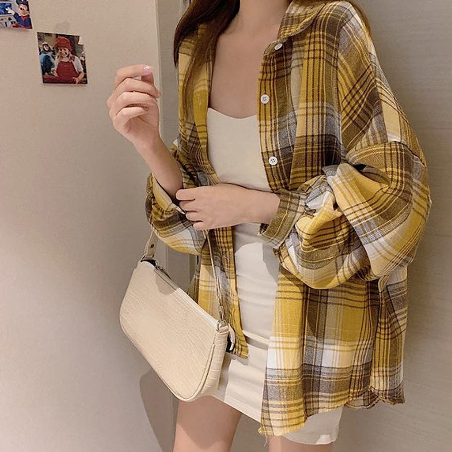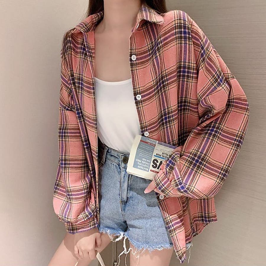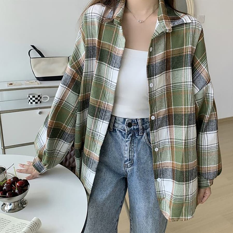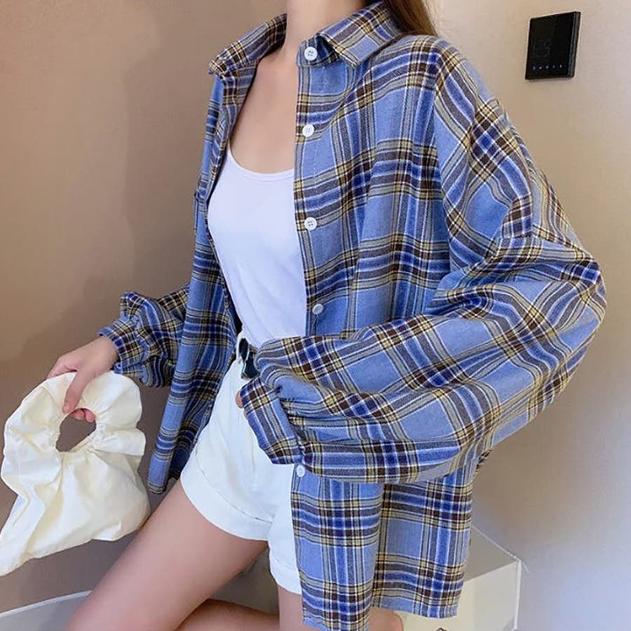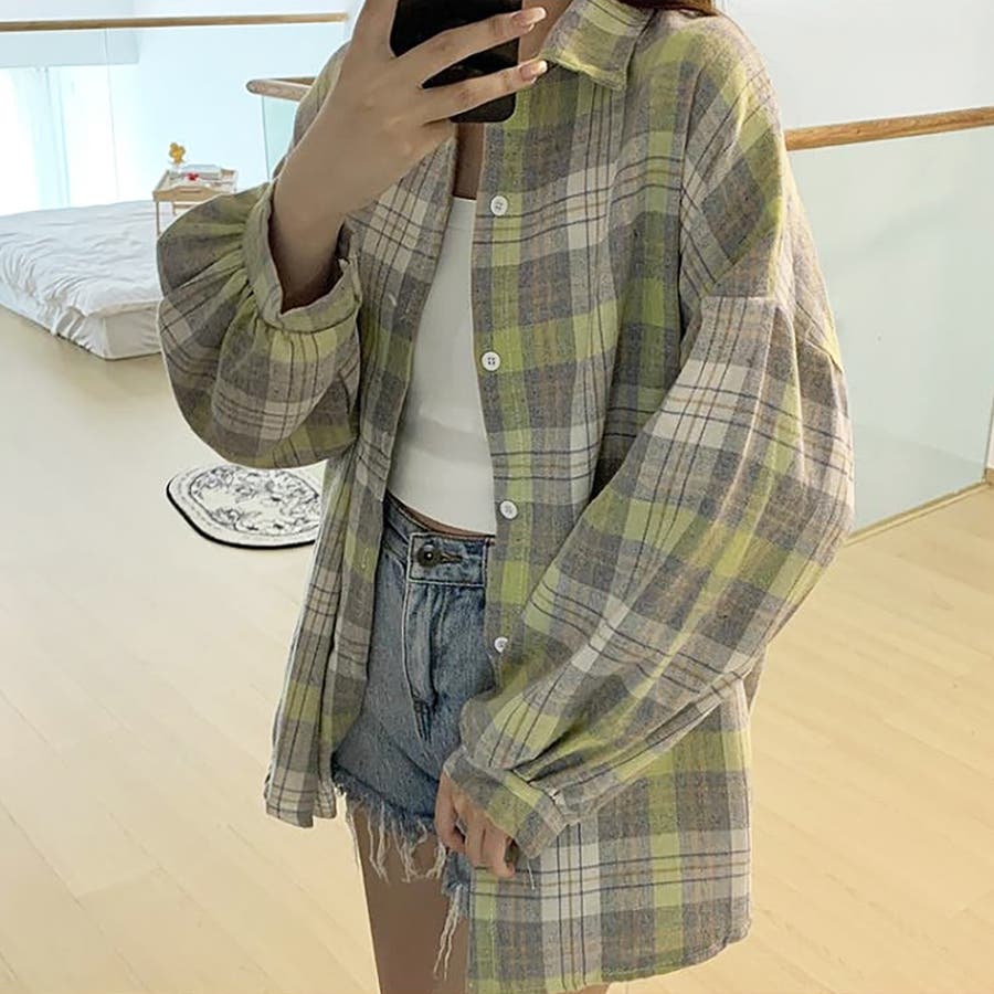 オーバーサイズ チェックシャツ【韓国ファッション】【春夏新商品】