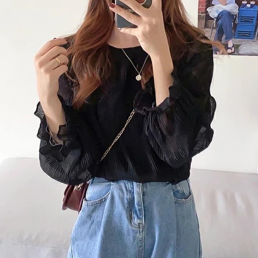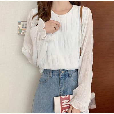 シャーリングシアーブラウス【韓国ファッション】【春夏新商品】