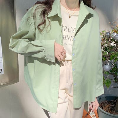 プレーンなデザインでオーバーなサイジングがポイントのカラーシャツ。
