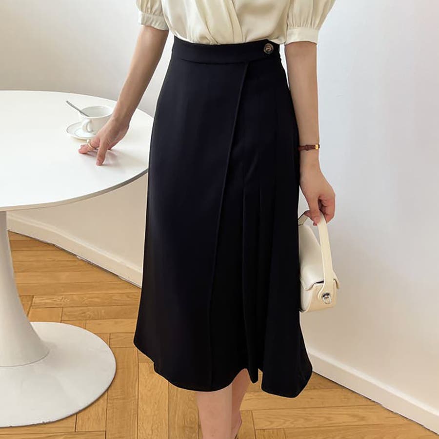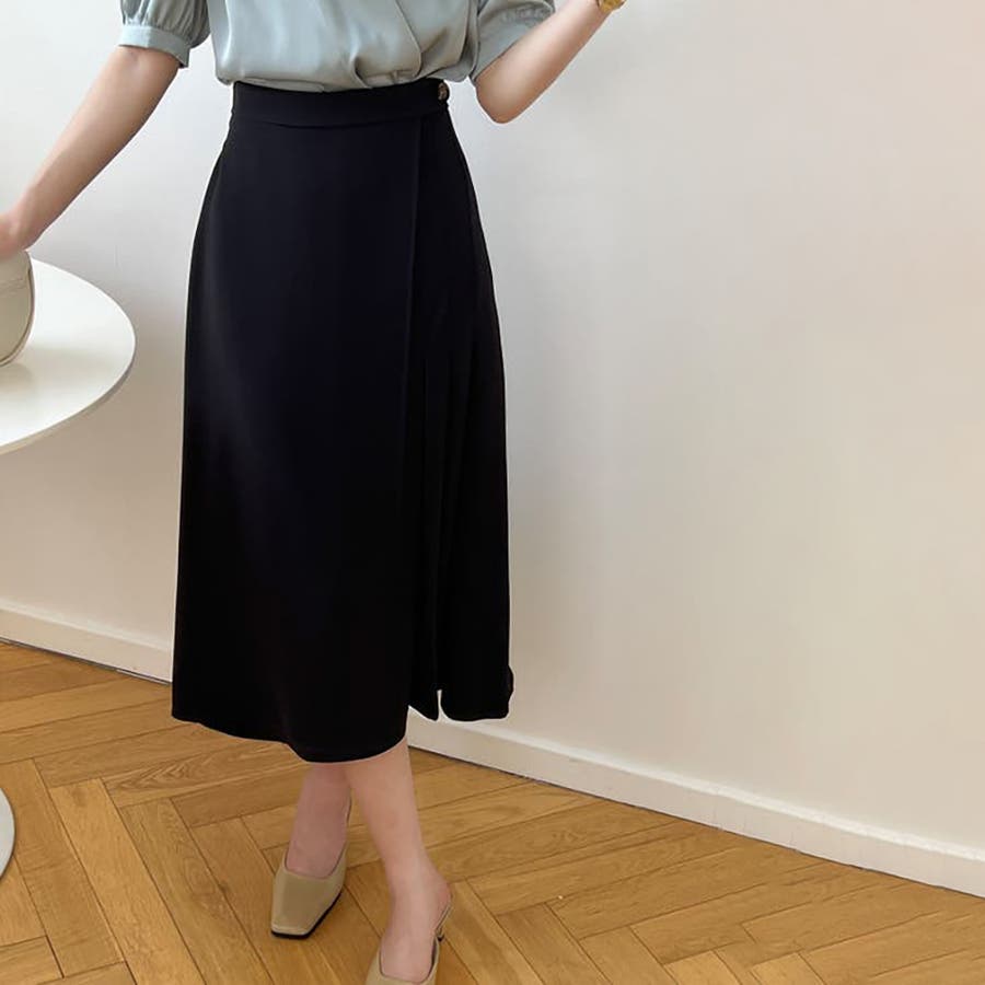 サイドボタンプリーツ巻きスカート【韓国ファッション】
