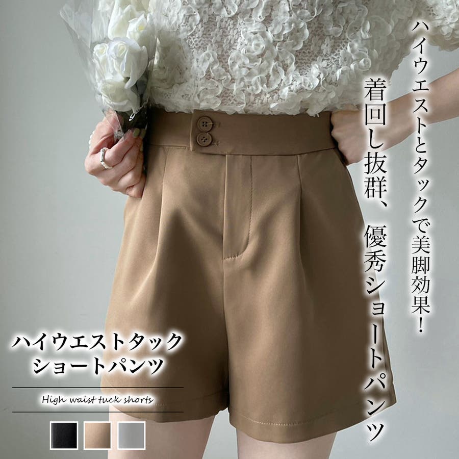 ハイウエストタックショートパンツ【韓国ファッション】