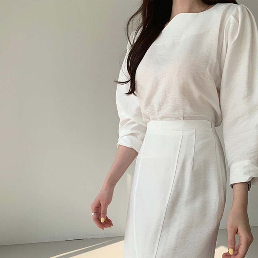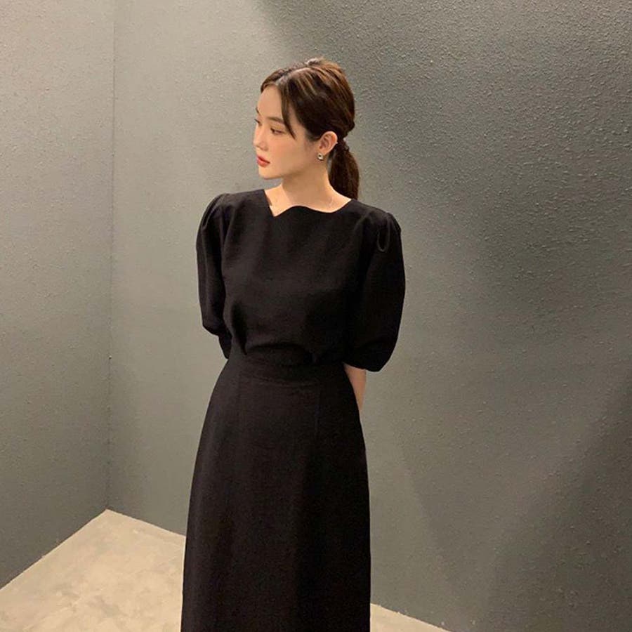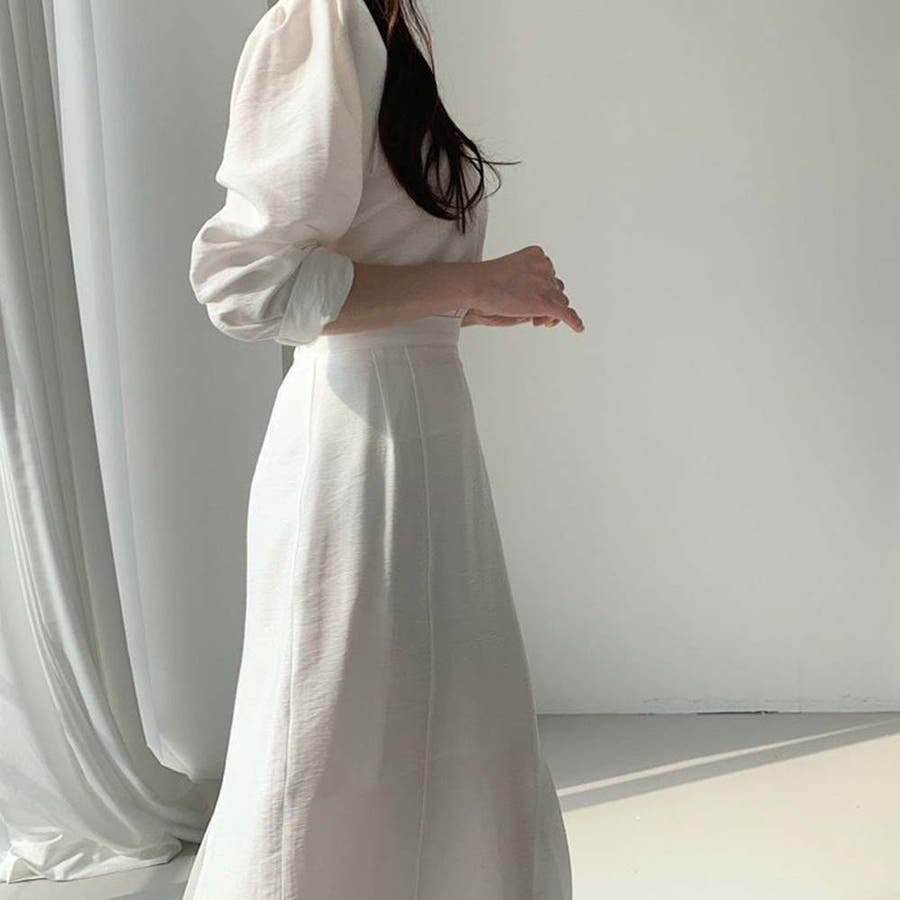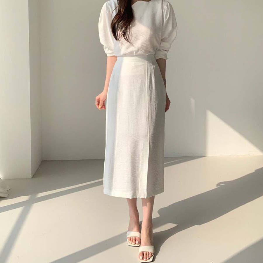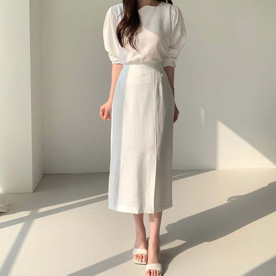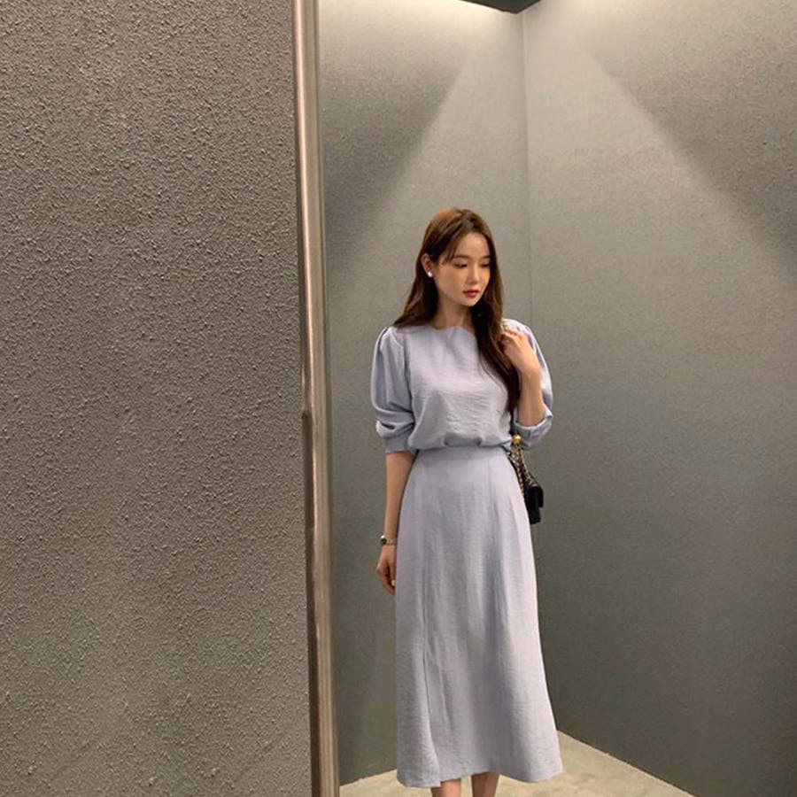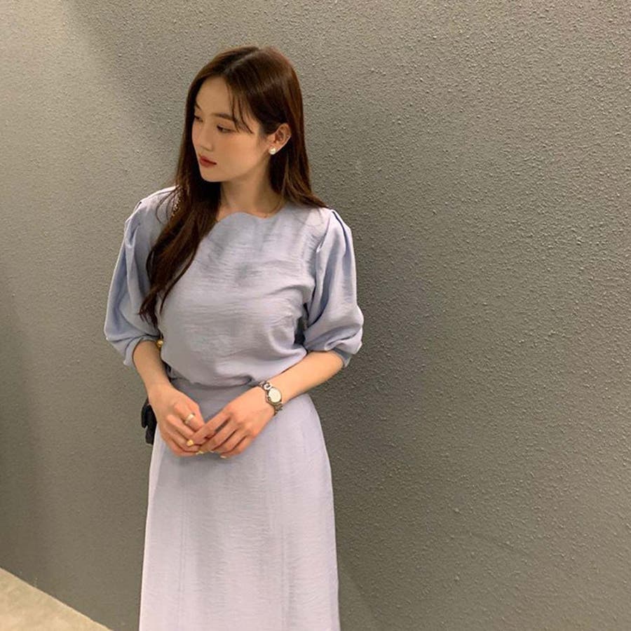ツーピースセット シフォンブラウス&ミドルスカートセットアップ【韓国ファッション…