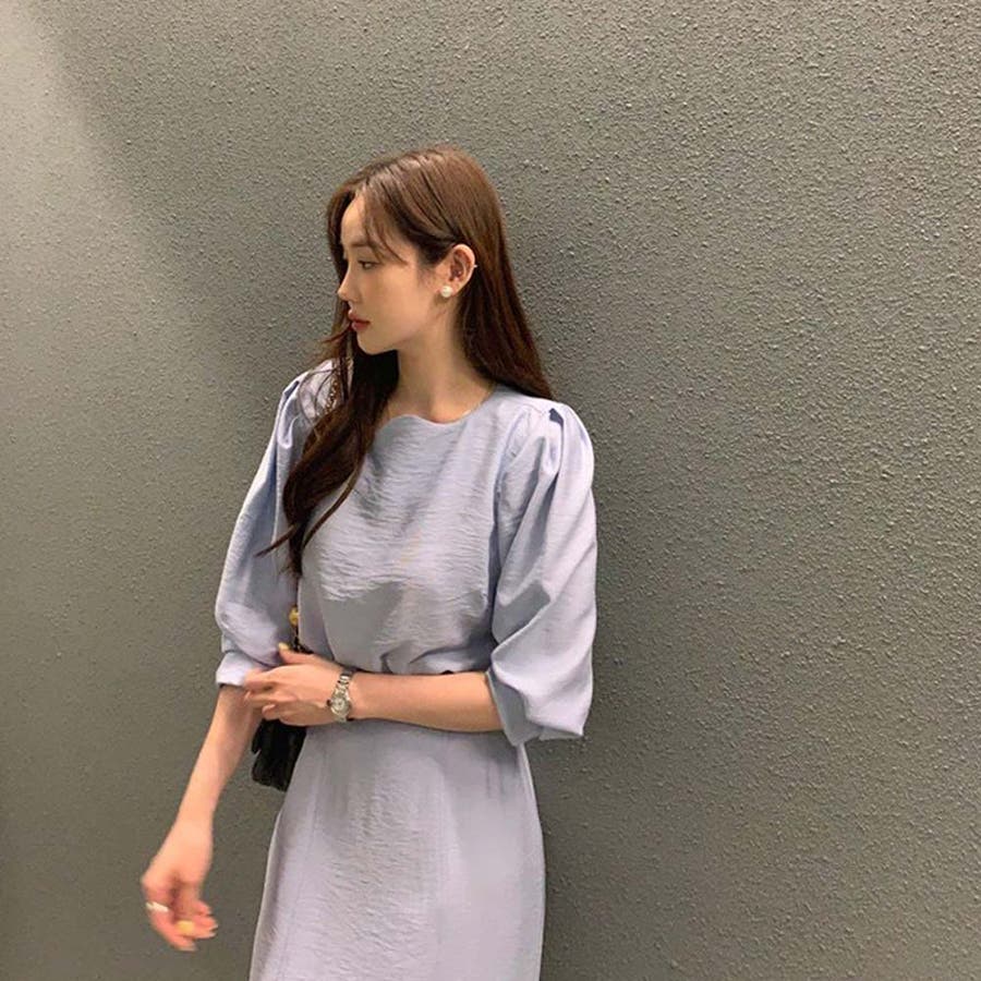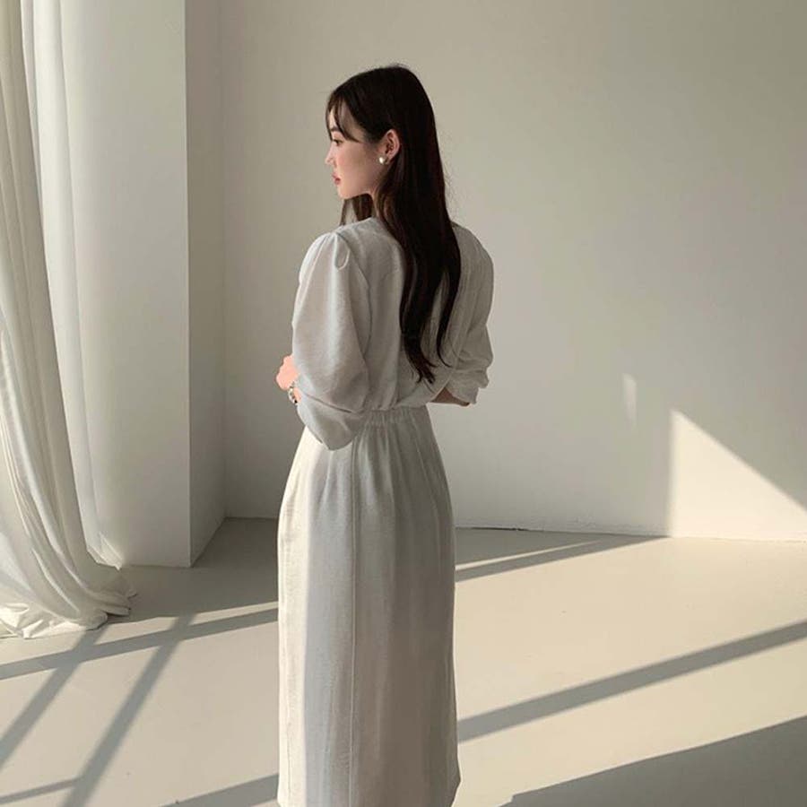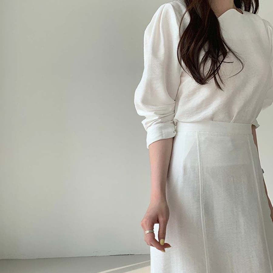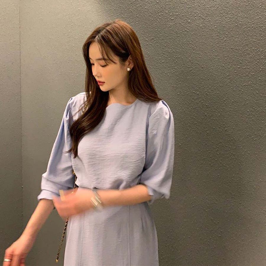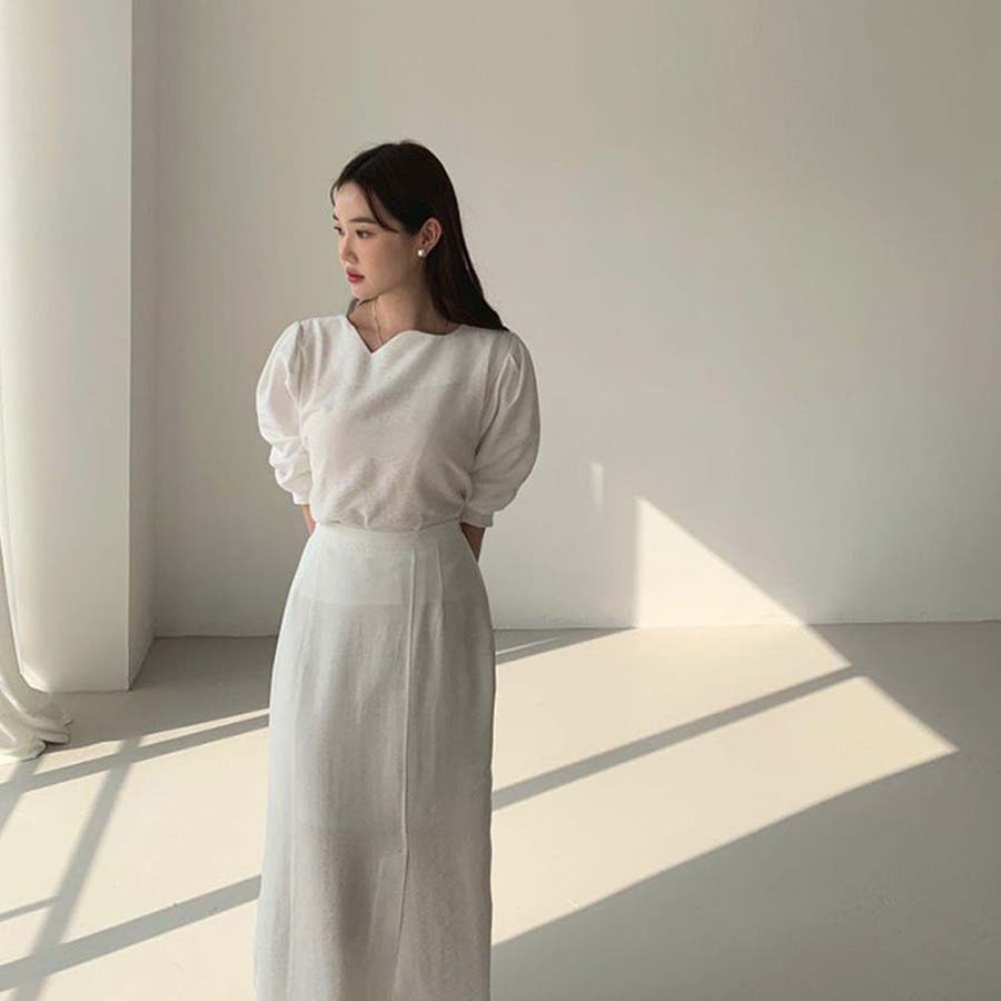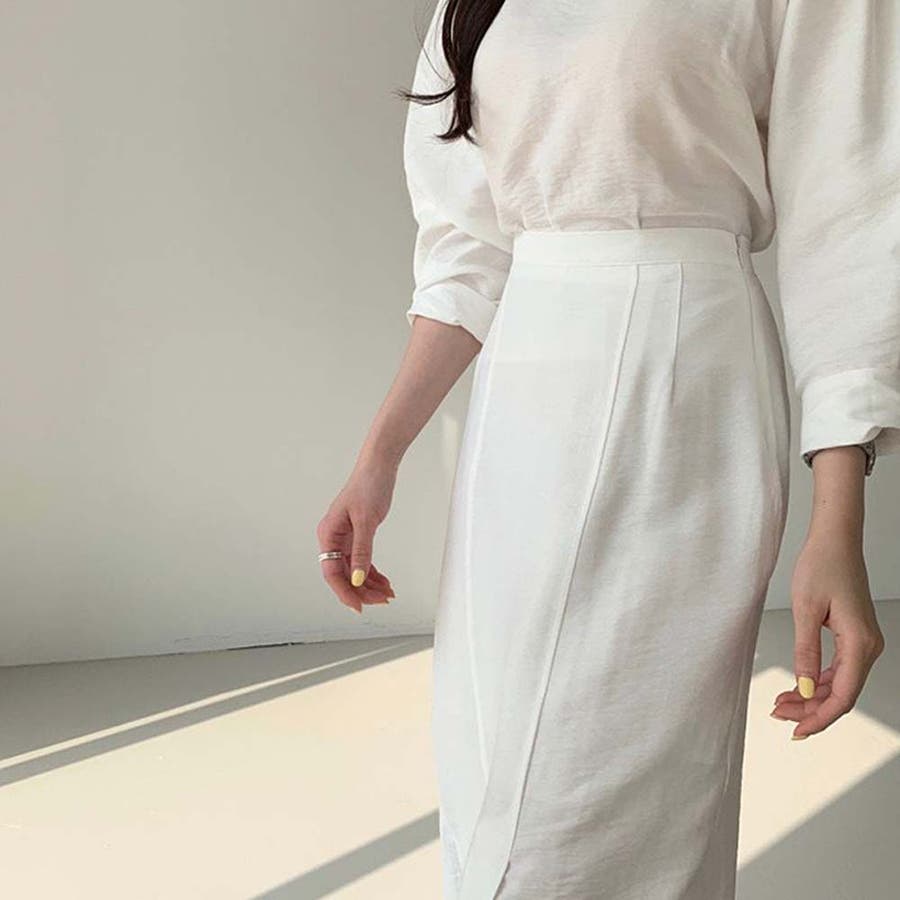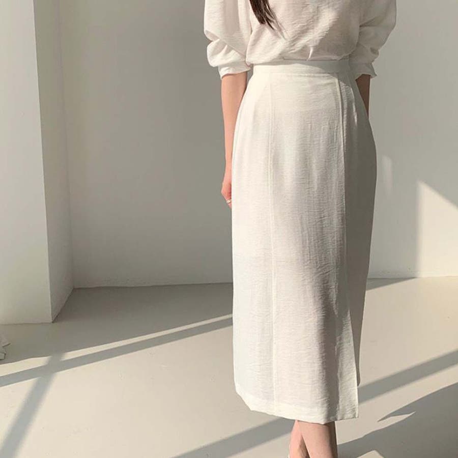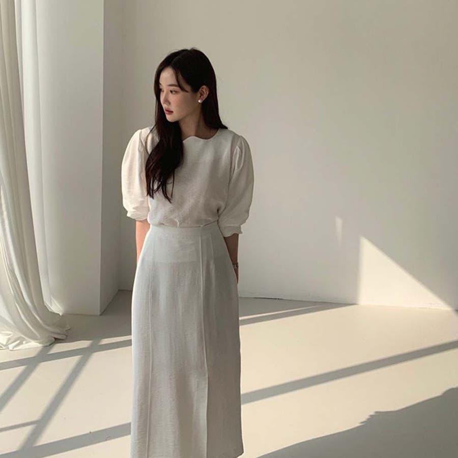 ツーピースセット シフォンブラウス&ミドルスカートセットアップ【韓国ファッション…