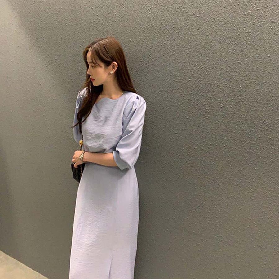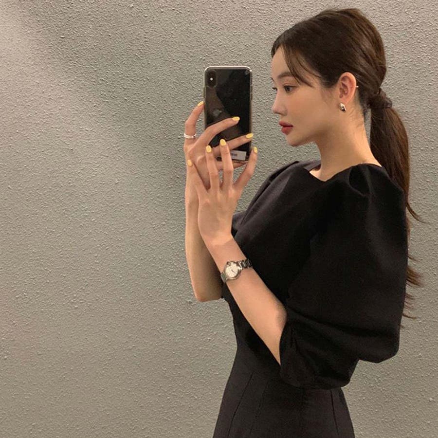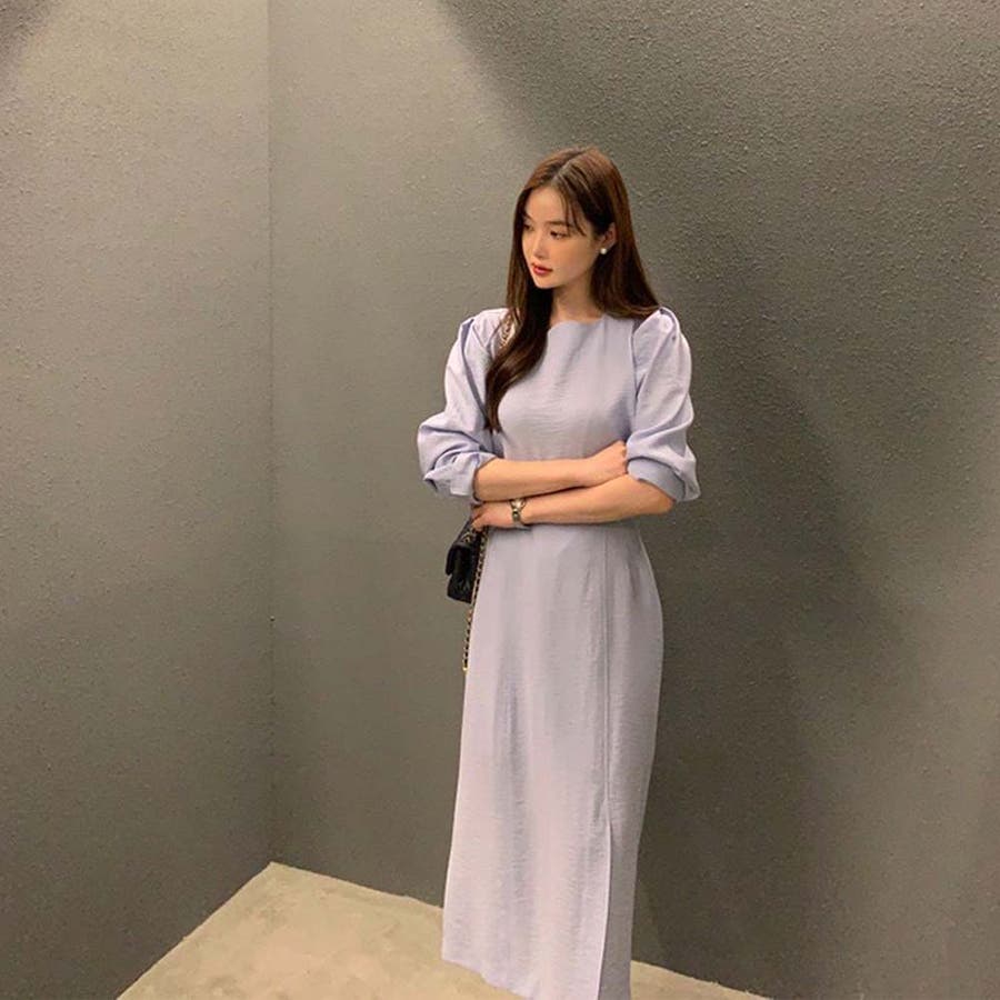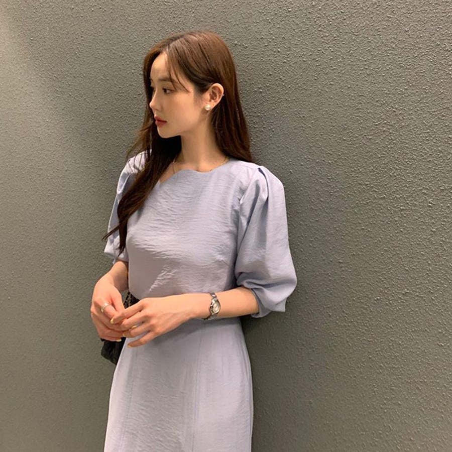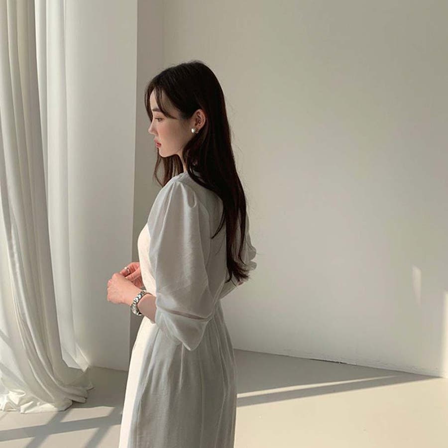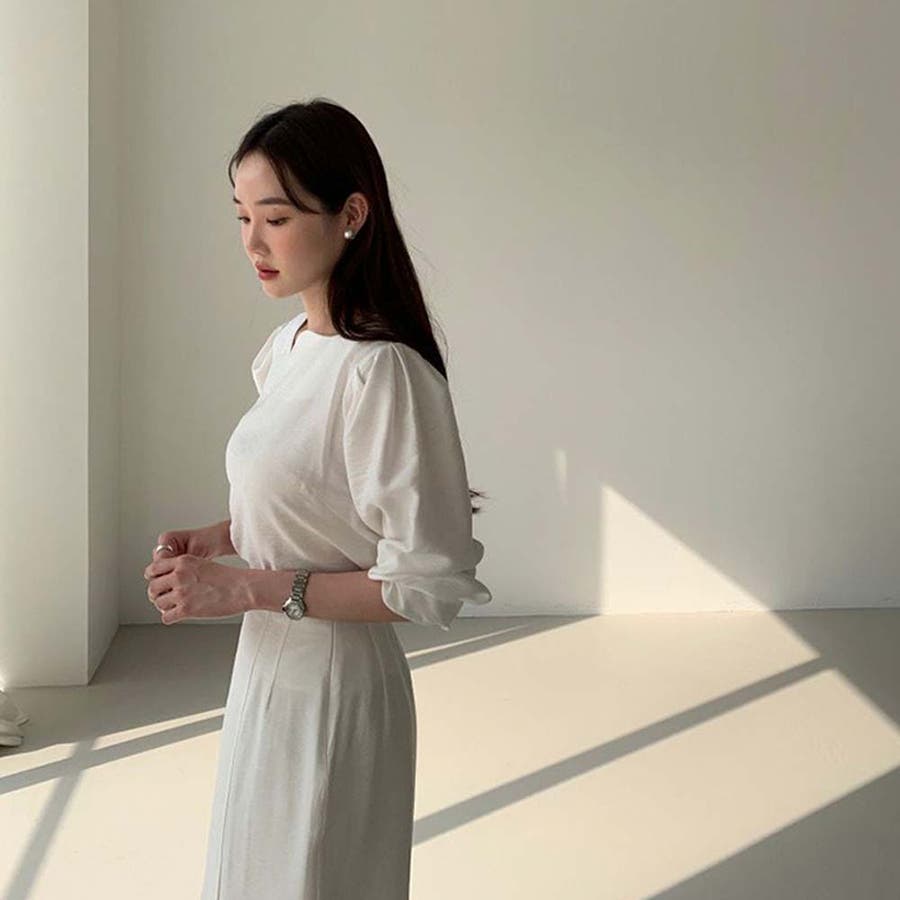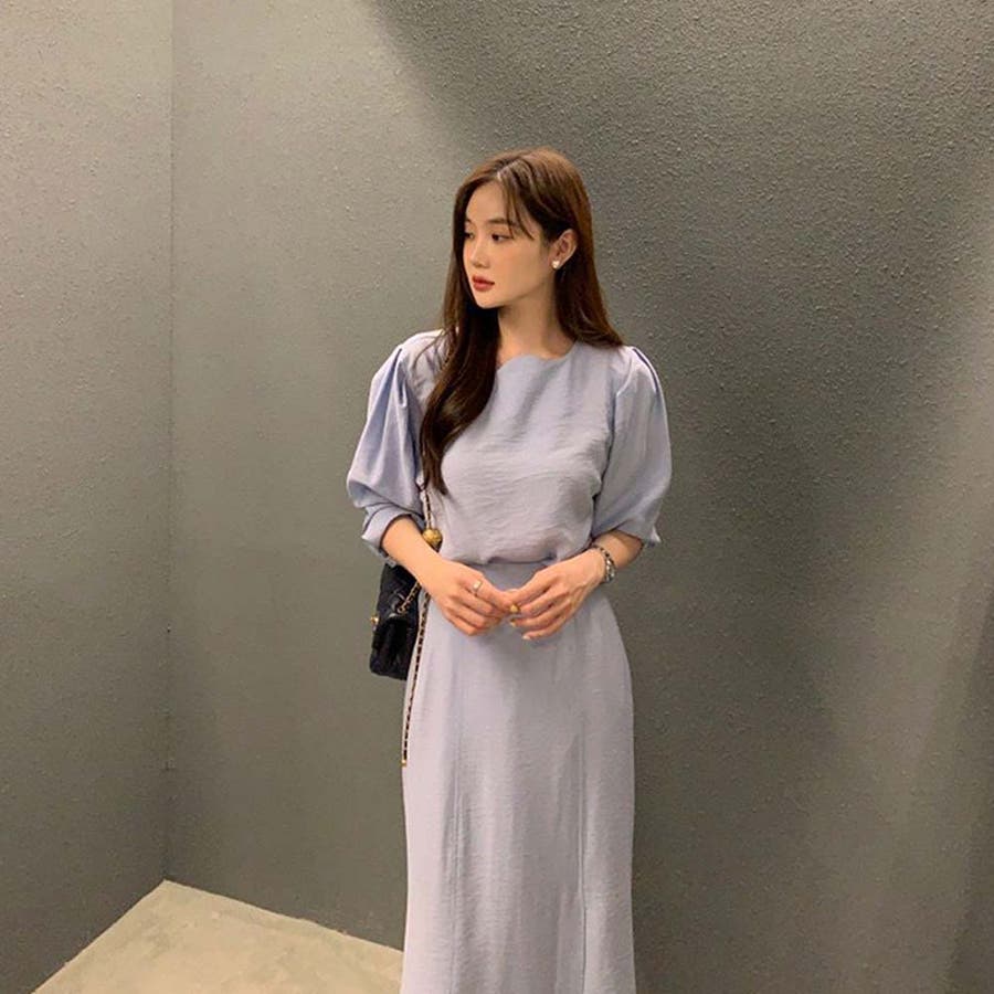 ツーピースセット シフォンブラウス&ミドルスカートセットアップ【韓国ファッション…