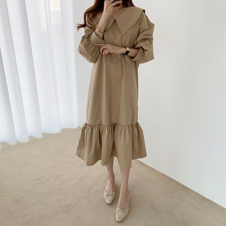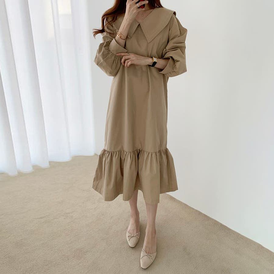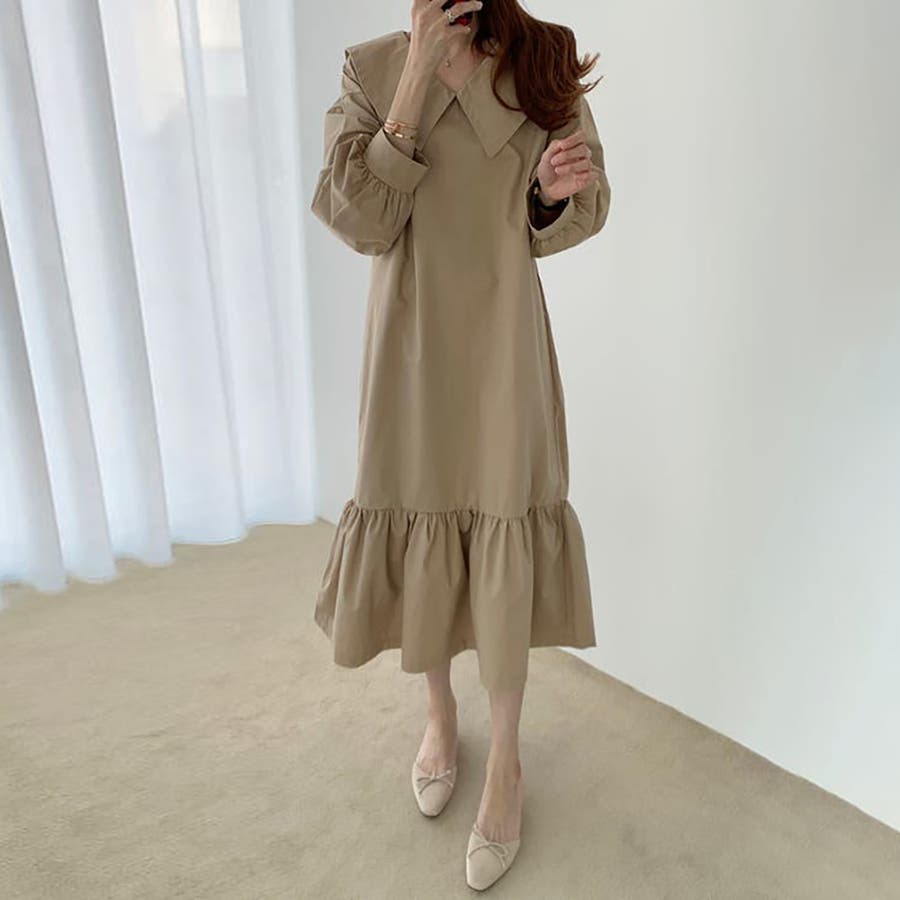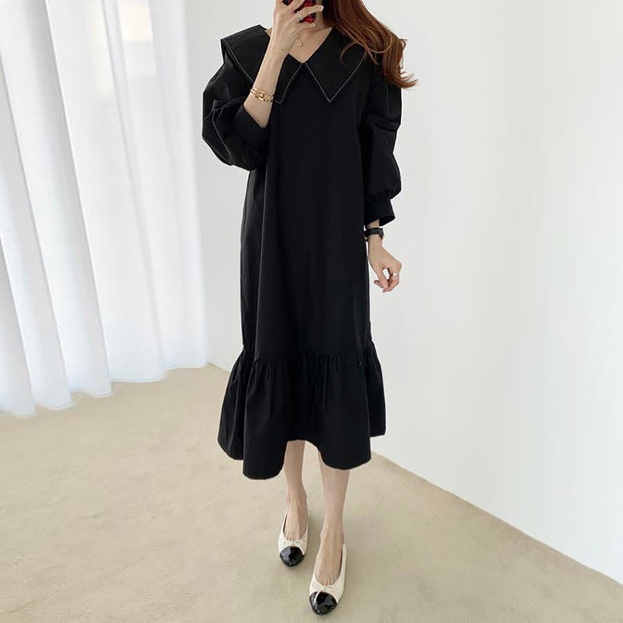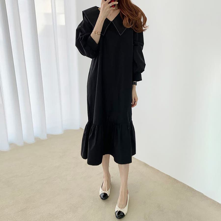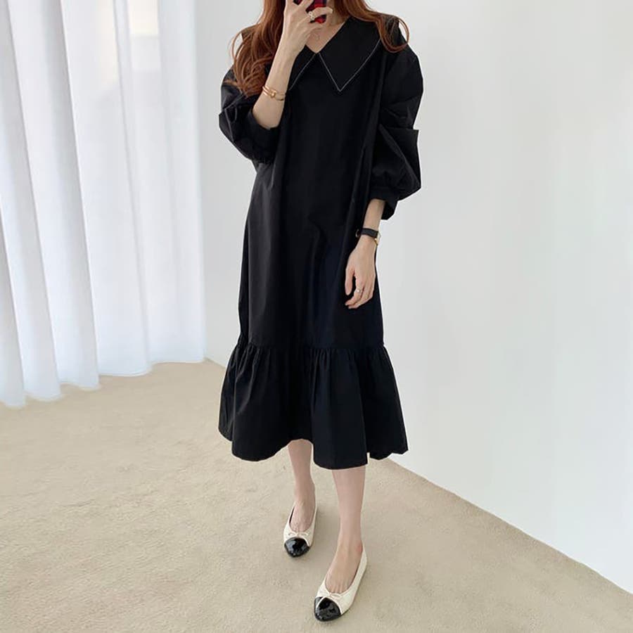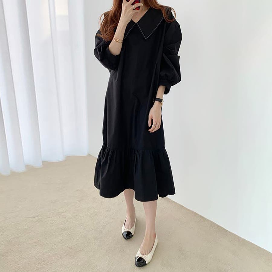 セーラーカラーロングワンピース【韓国ファッション】【春夏新商品】