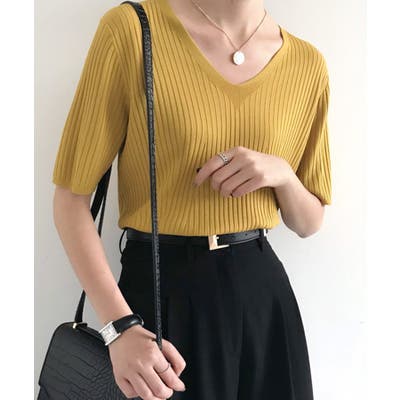 #韓国ファッション#夏服 #半袖 #夏トップス #体型カバー #大人 #オフィスカジュアル #サマーニット #リブニット