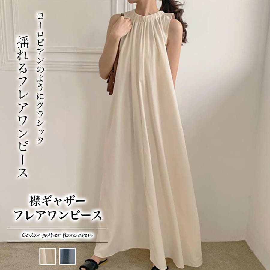襟ギャザーフレアワンピース【韓国ファッション】