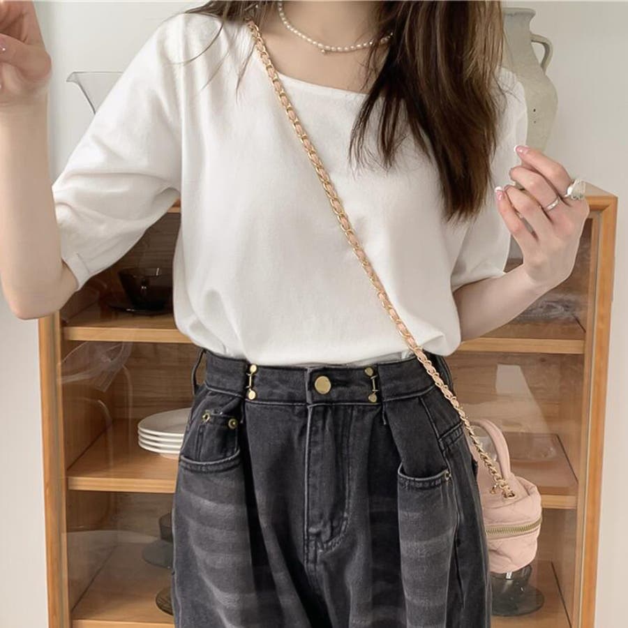 長めの半袖で二の腕をさりげなくカバーしてくれます。
