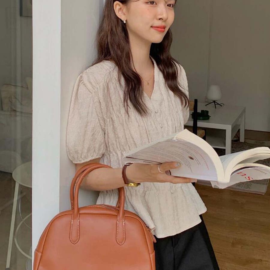 ギャザーを寄せた、ふっくらボリュームのやわらかなシルエットが魅力。