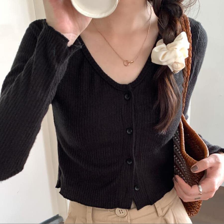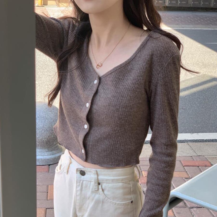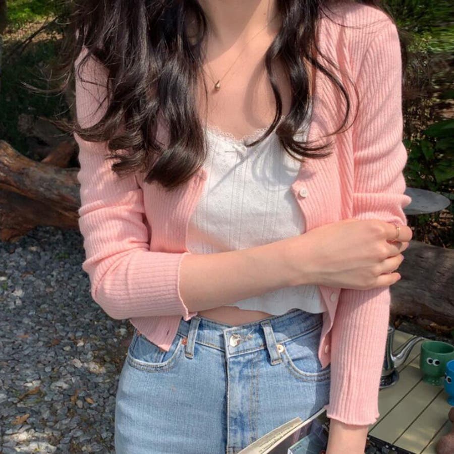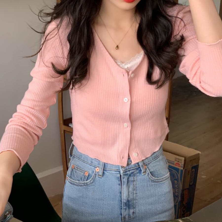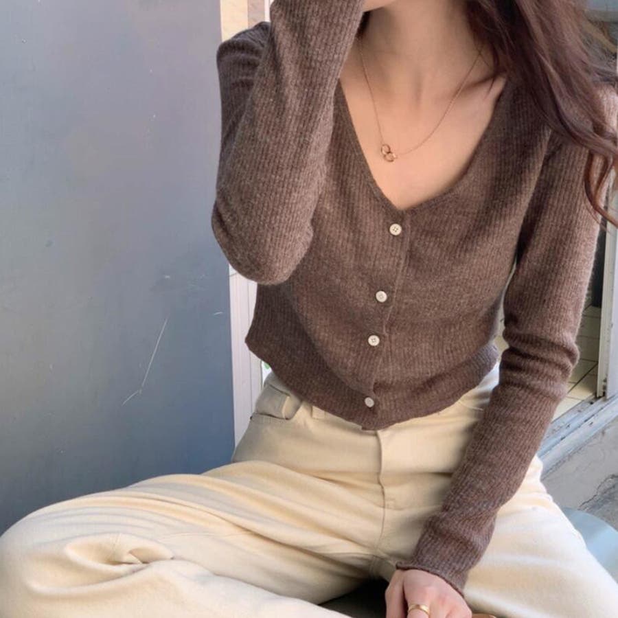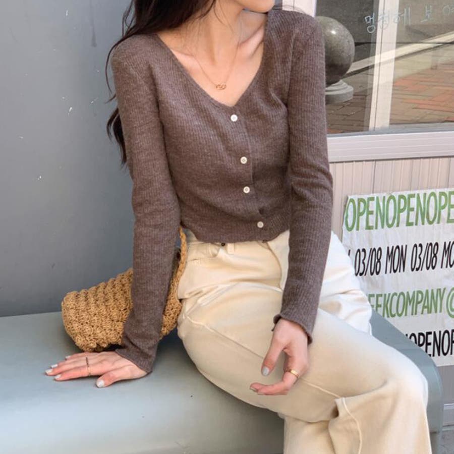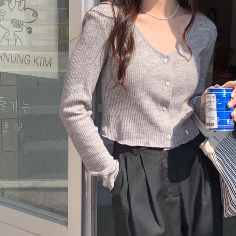 Vネックリブニットカーディガン【韓国ファッション】【春夏新商品】