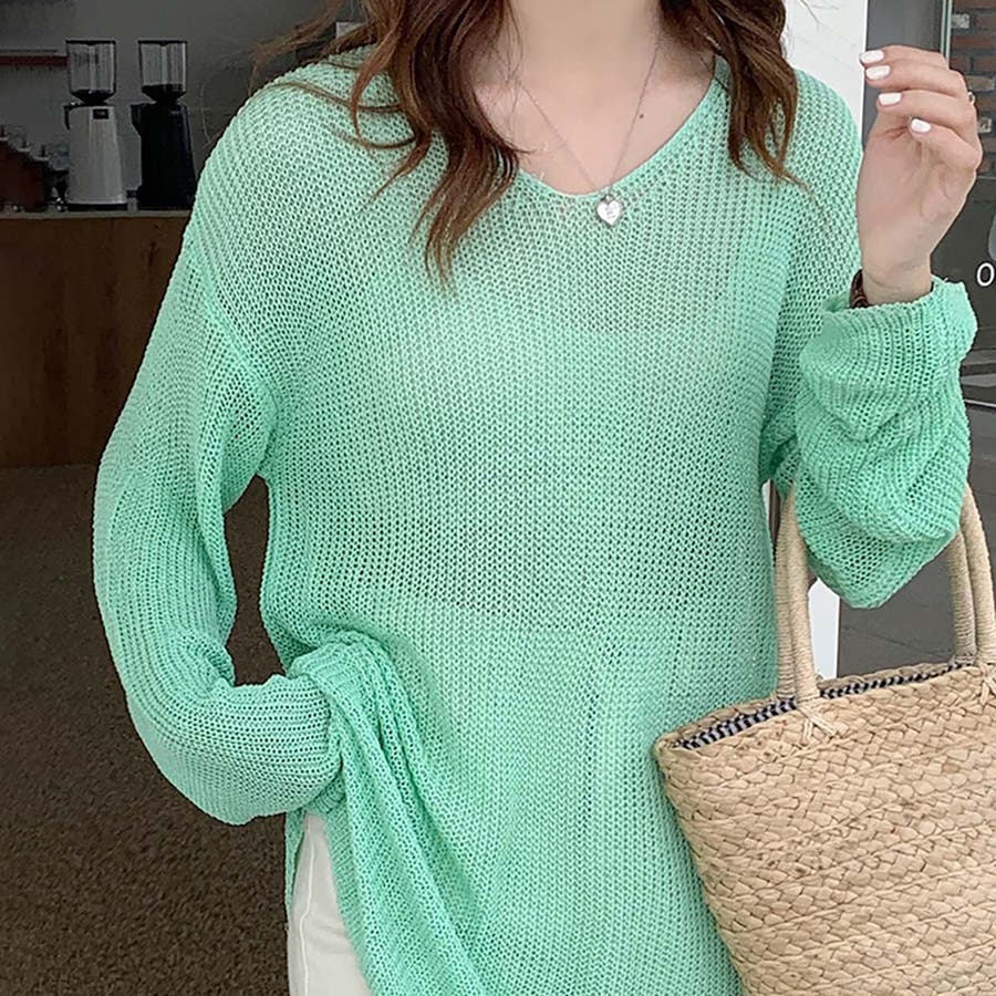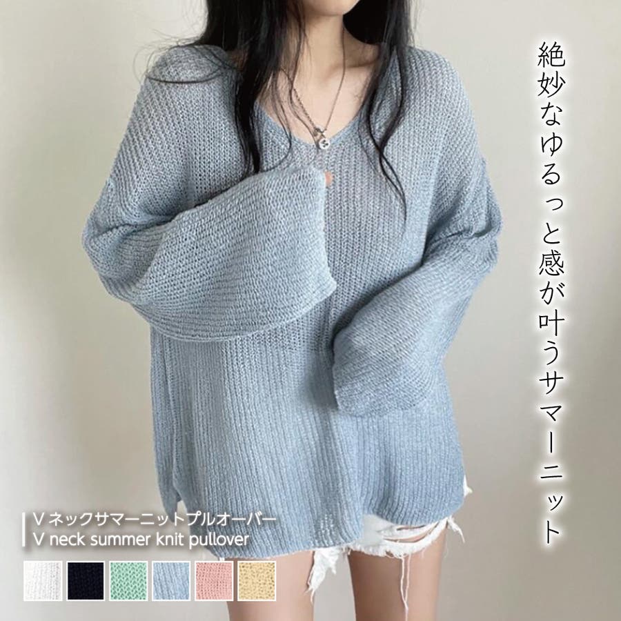 Vネックサマーニットプルオーバー【韓国ファッション】