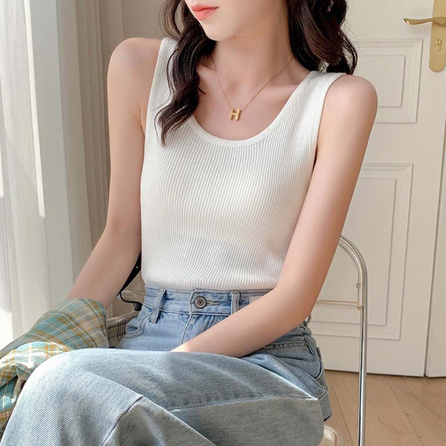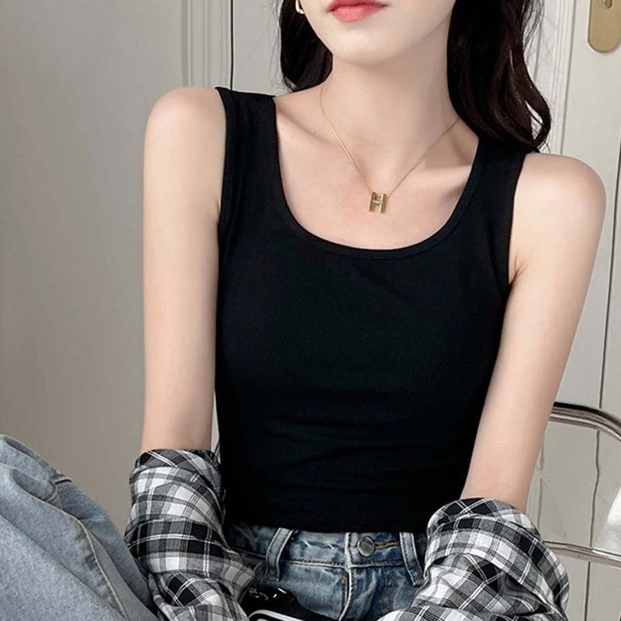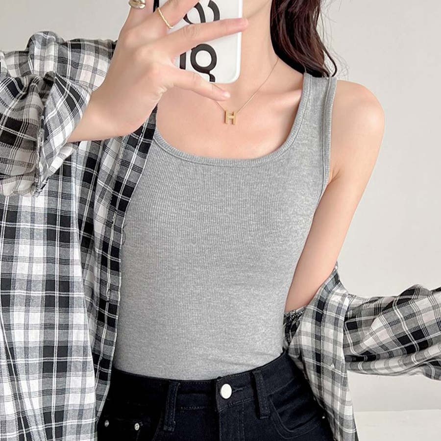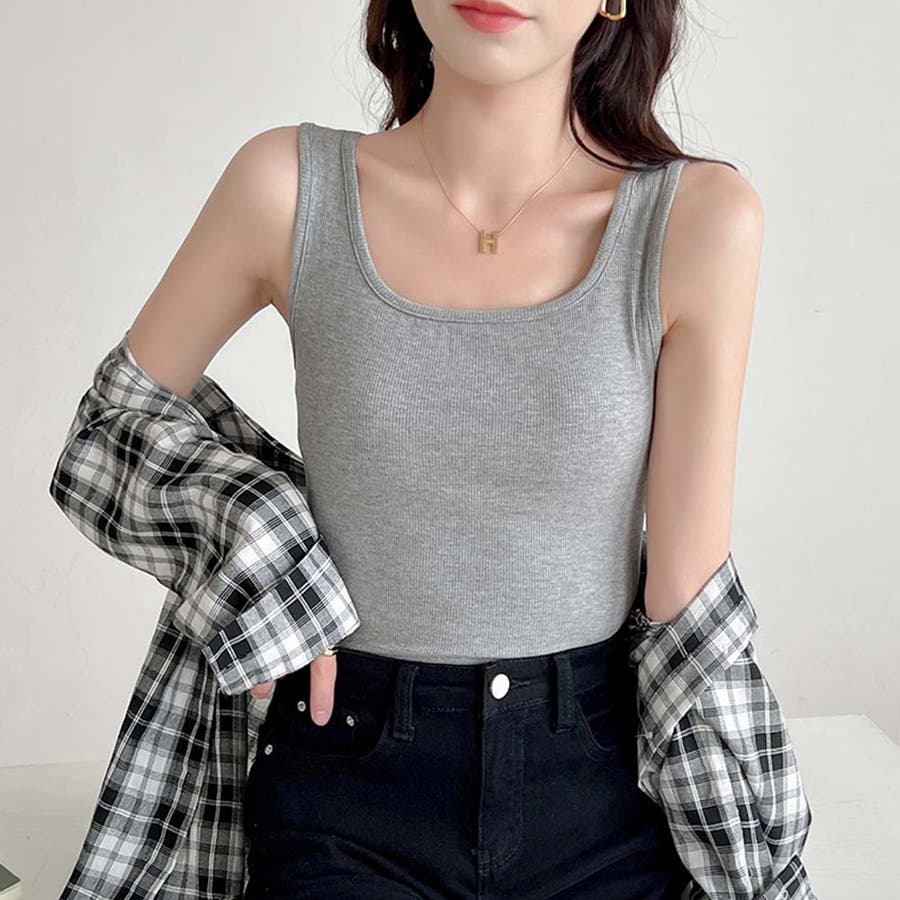 スクエアネックリブタンクトップ【韓国ファッション】【春夏新商品】