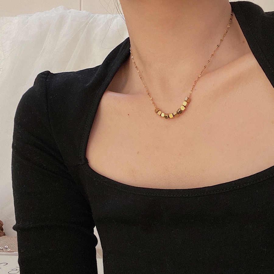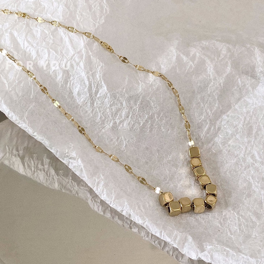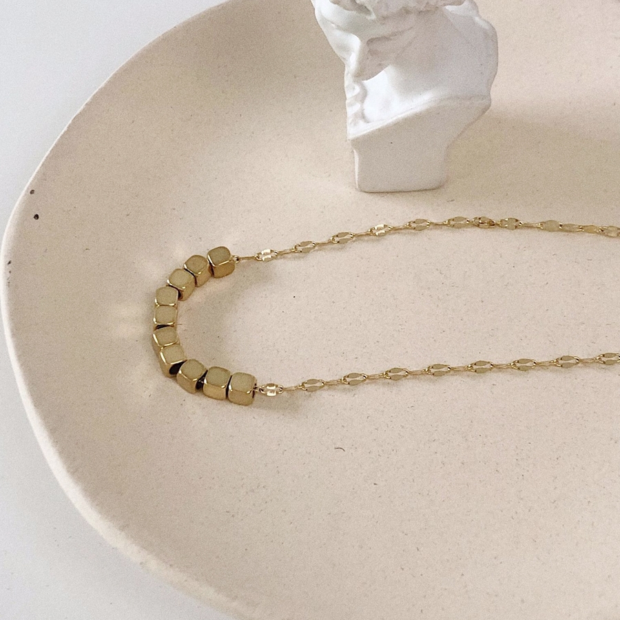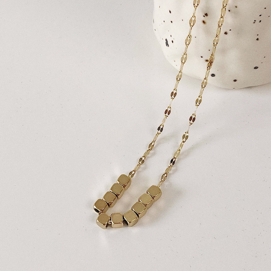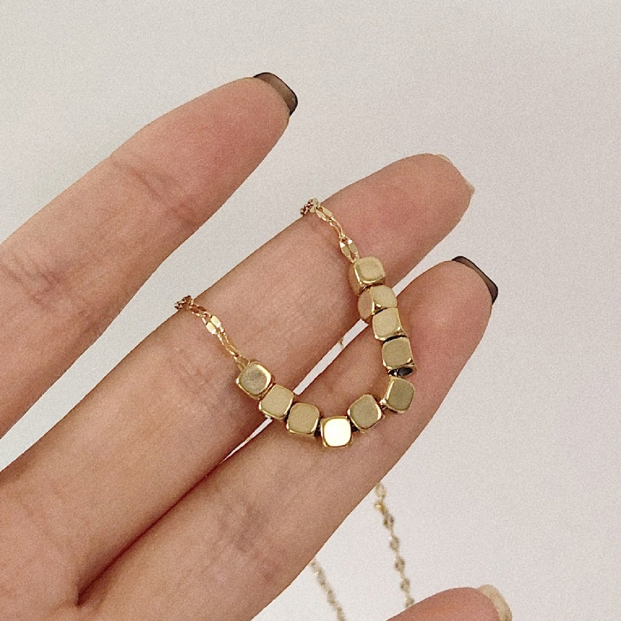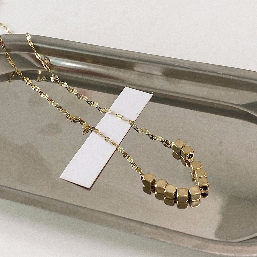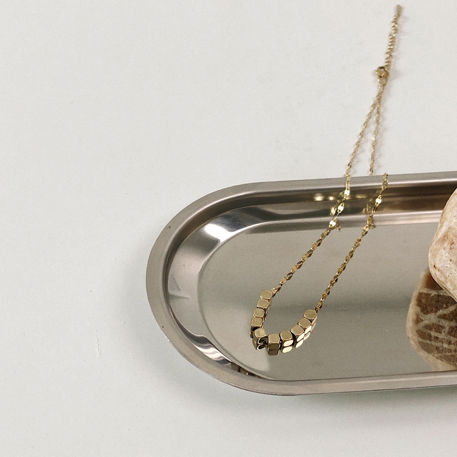 立体感のあるスクエアストーンに繊細なスクリューチェーンを組み合わせました。