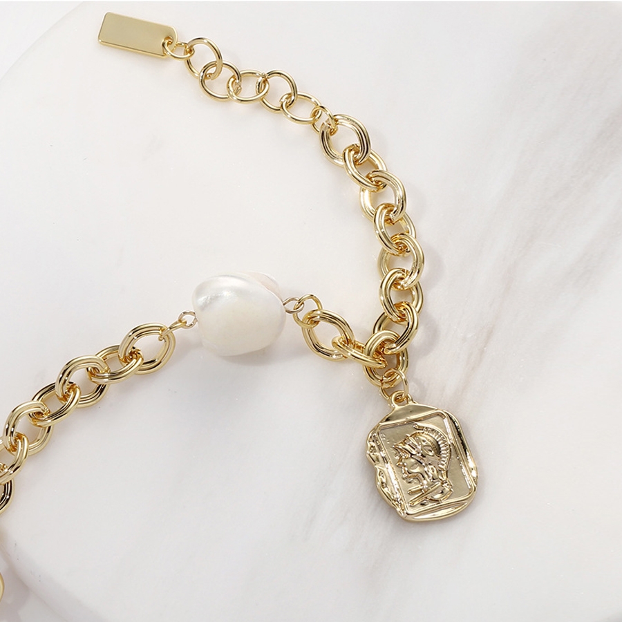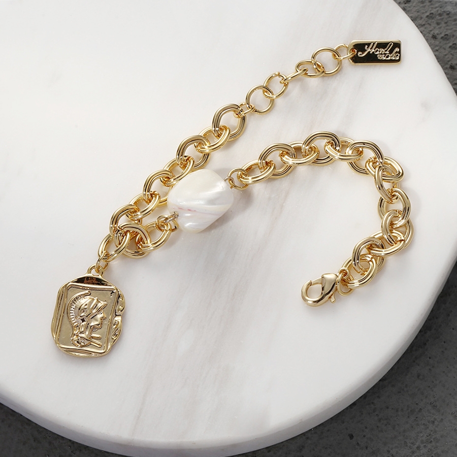存在感のあるデザインと太めのチェーンで、手首を華奢に見せてくれます。