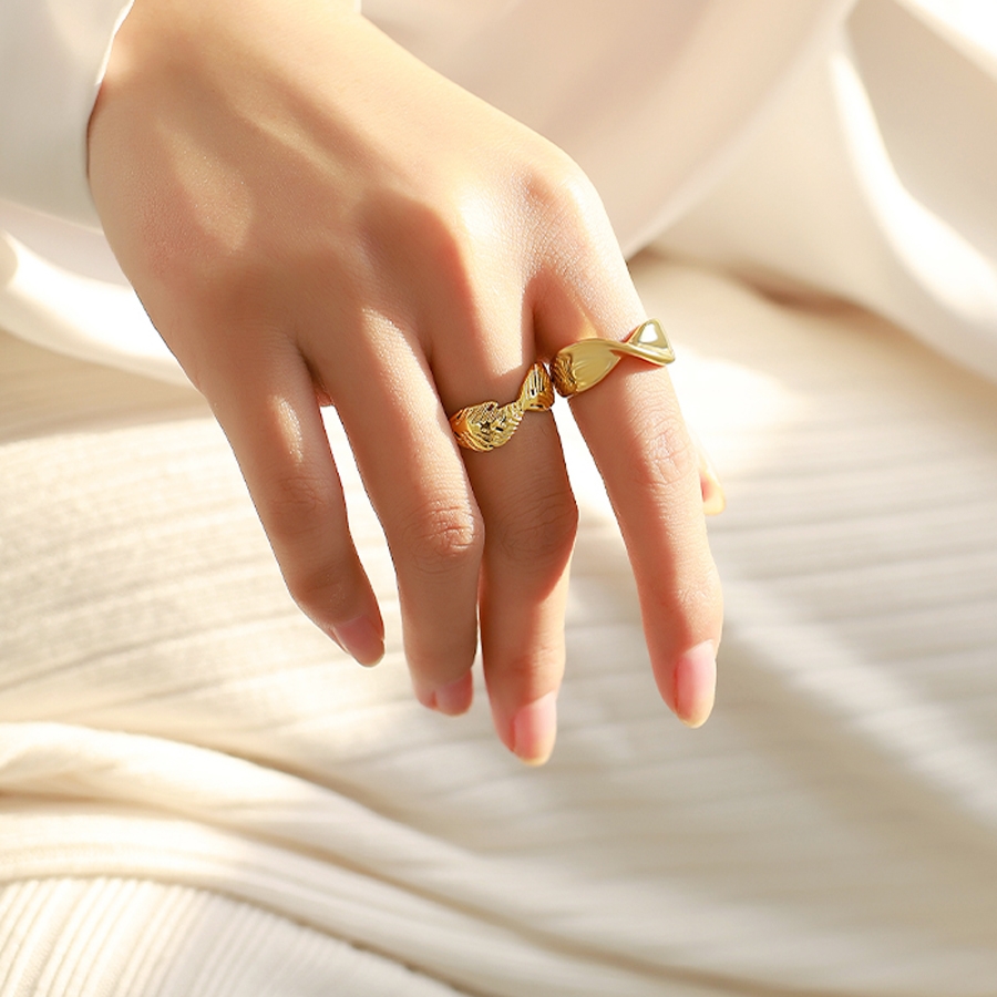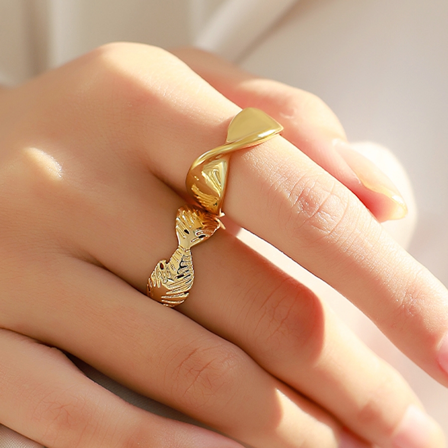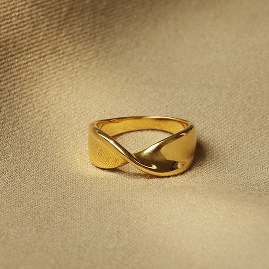 ボリューム感のあるねじれデザインで指を細く華奢に見せてくれます。