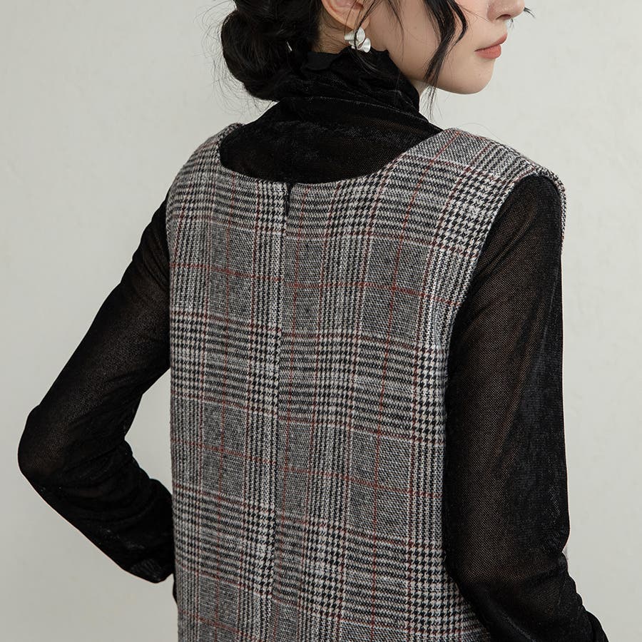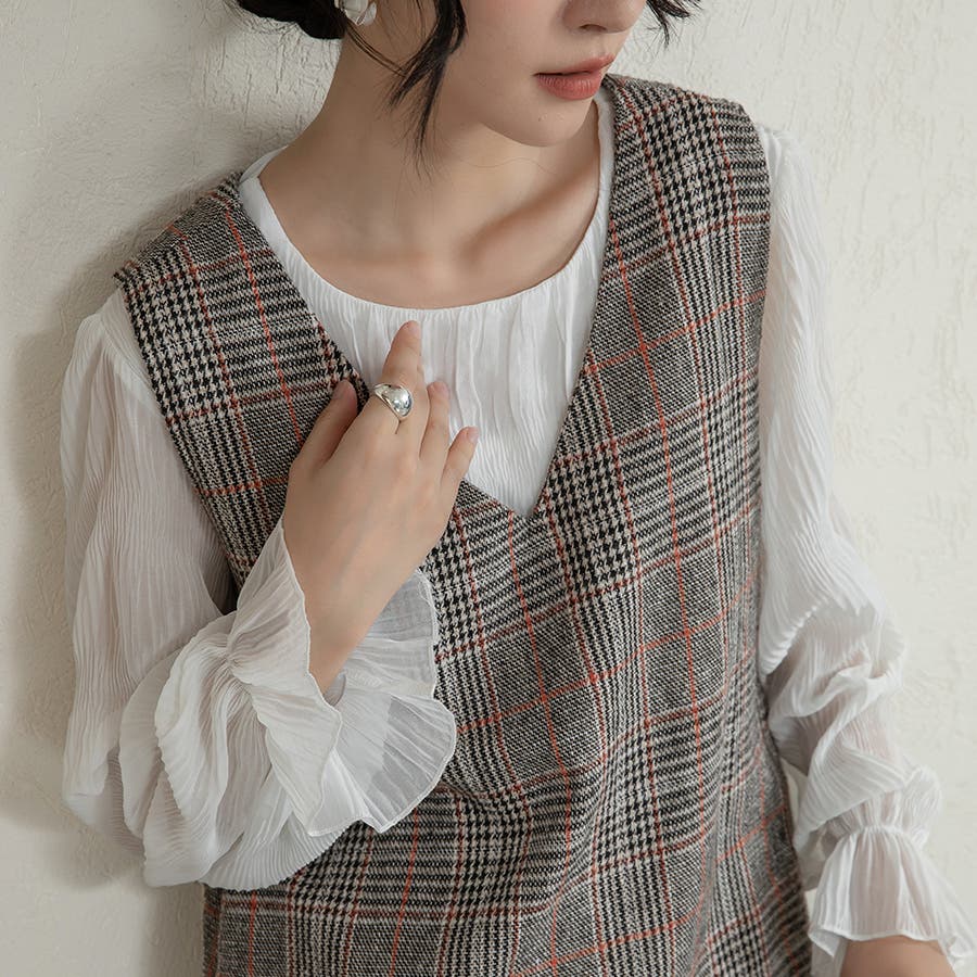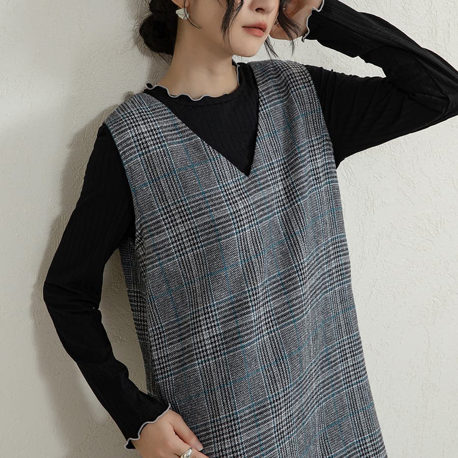 前後にあしらったVネックラインで、レイヤードコーデに使いやすいデザイン。