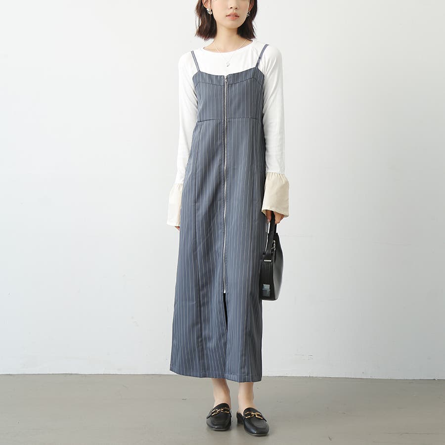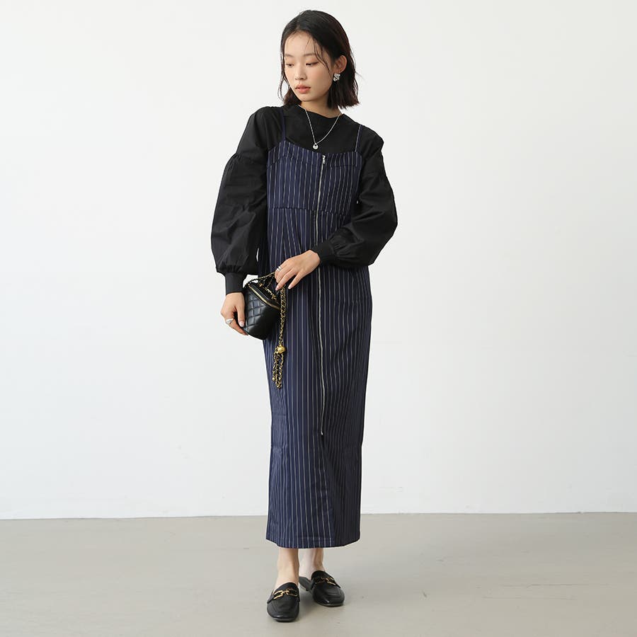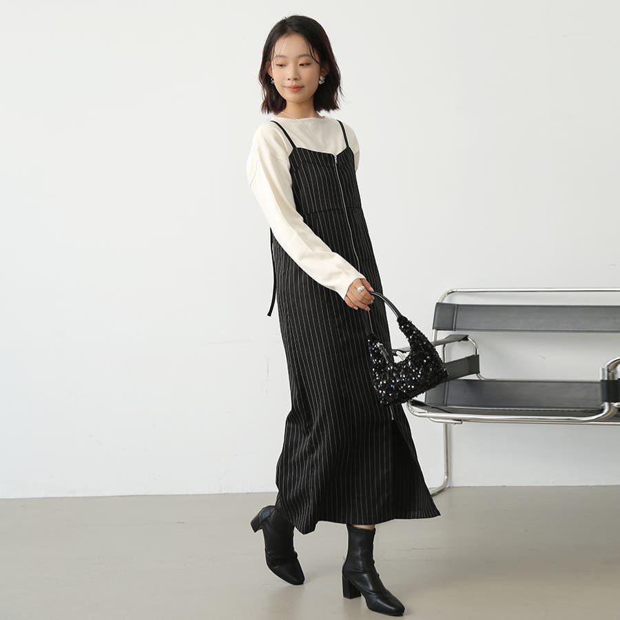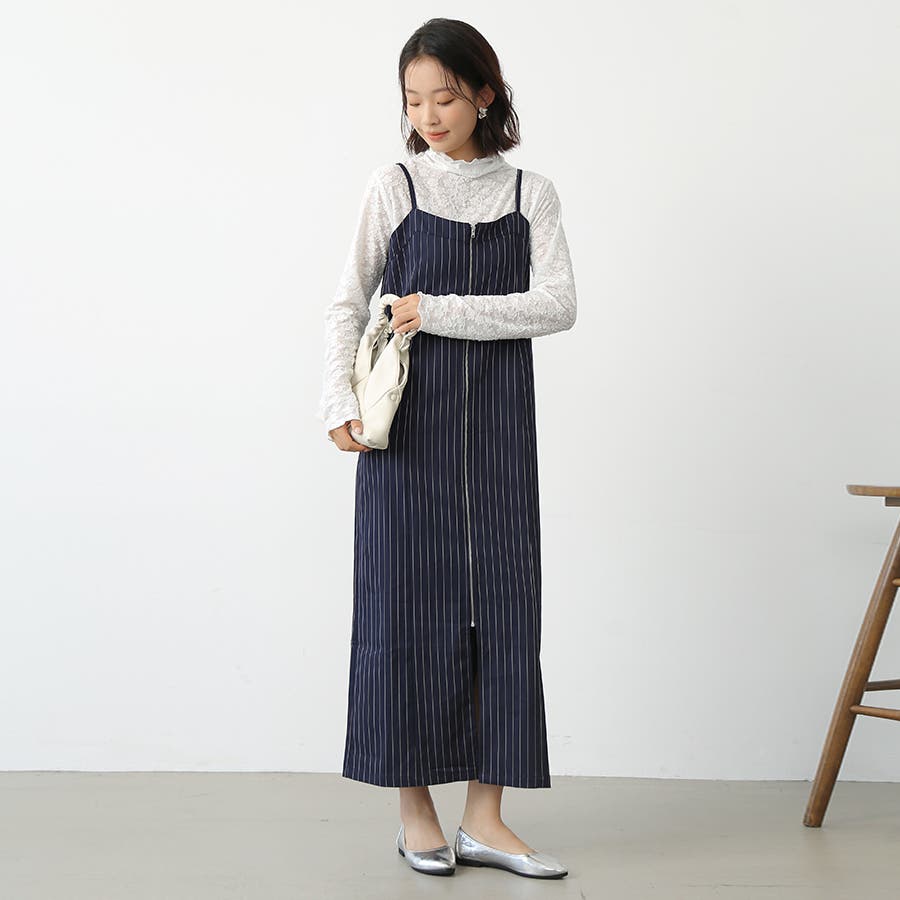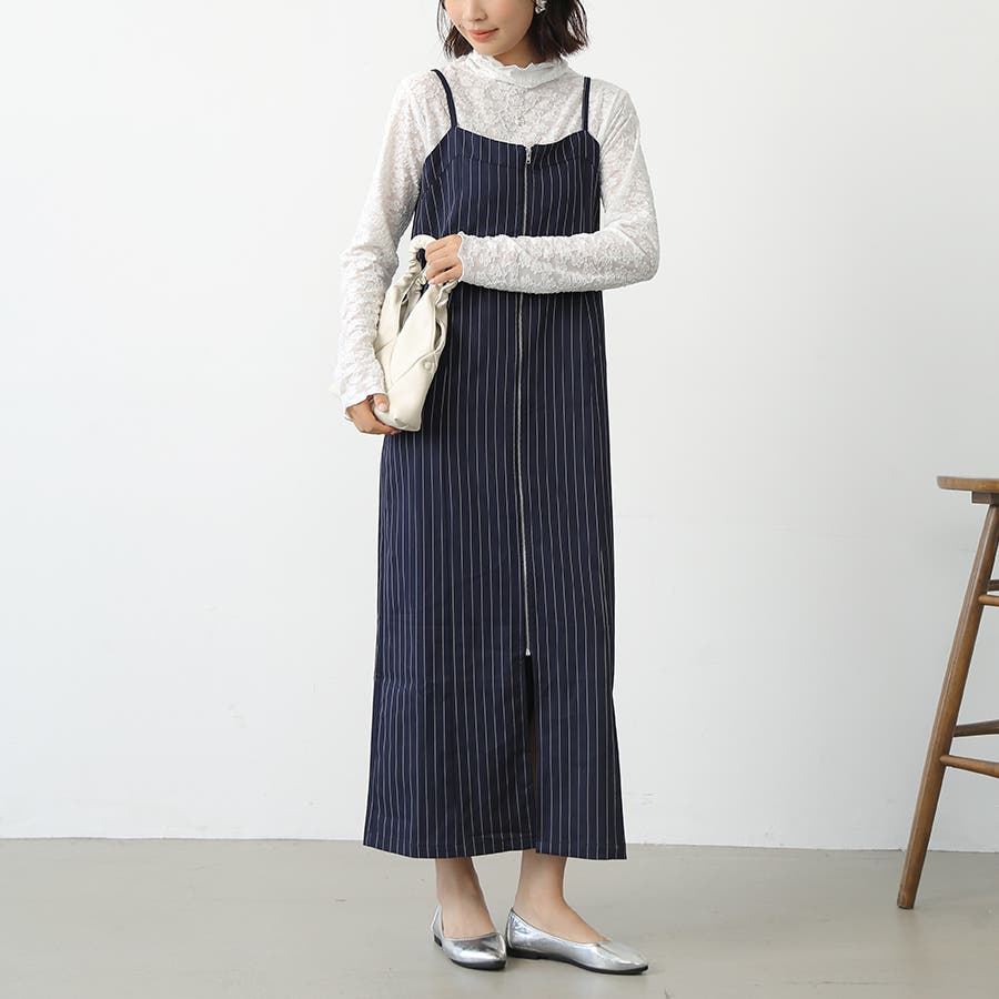 ストライプ柄が縦のラインを強調し、スタイリッシュな印象を与えます。