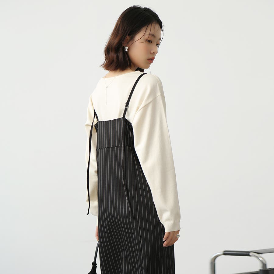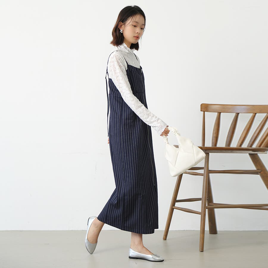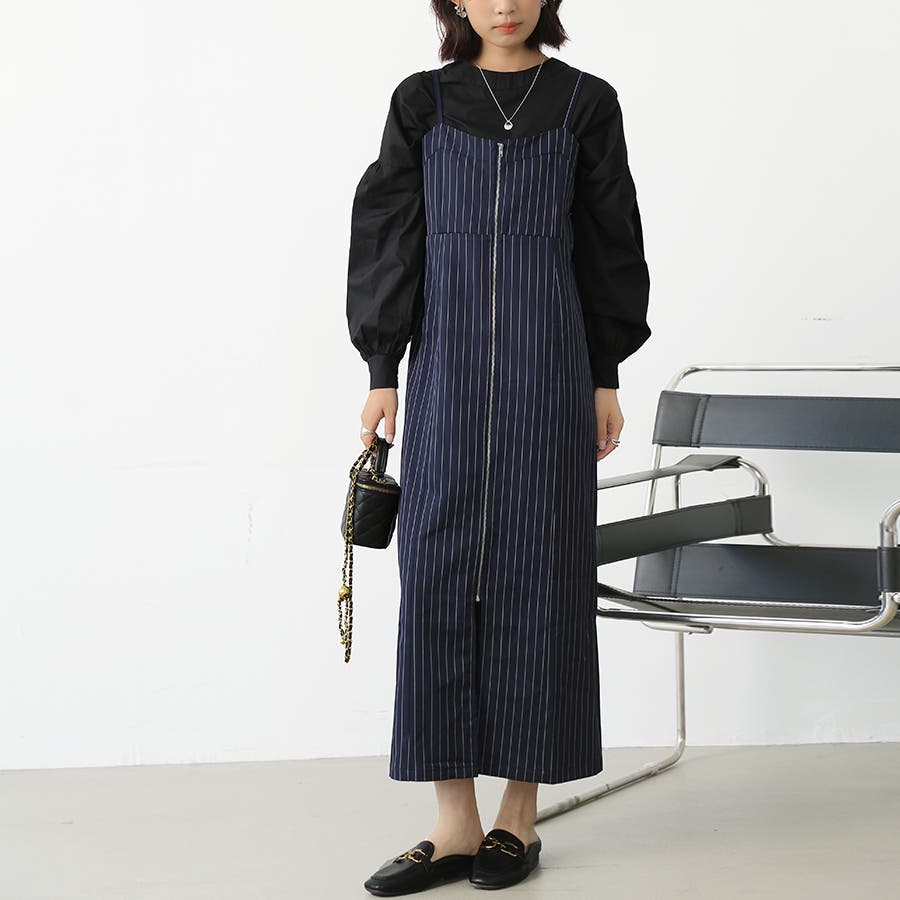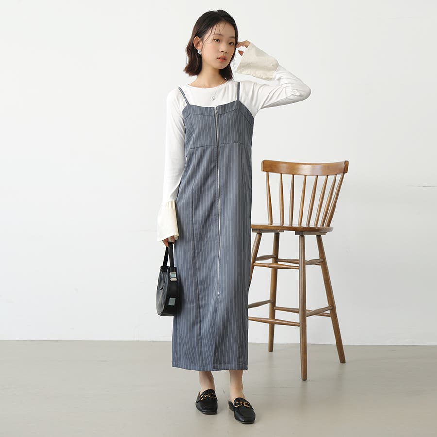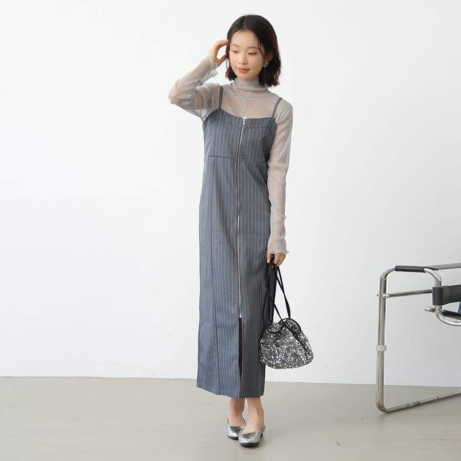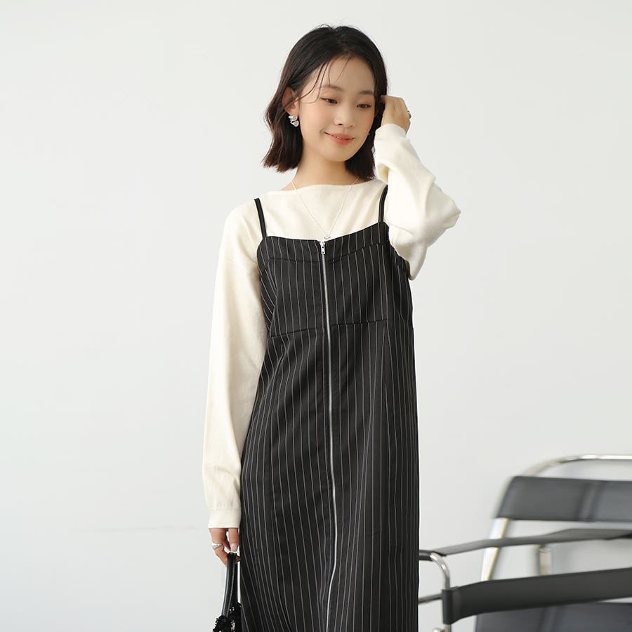 ストライプ柄が縦のラインを強調し、スタイリッシュな印象を与えます。