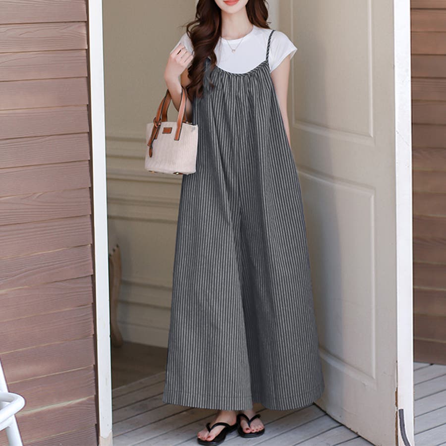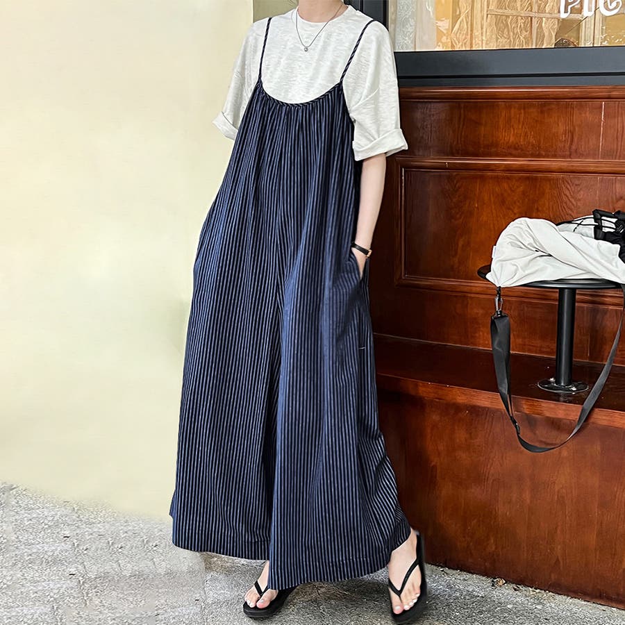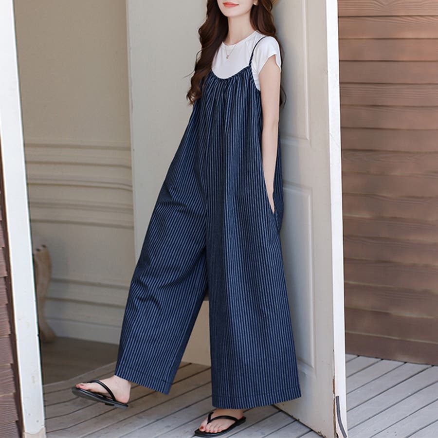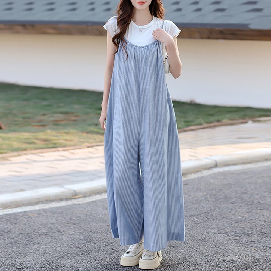 ゆったり着心地抜群なのに綺麗見えするオールインワンのワイドパンツ♪