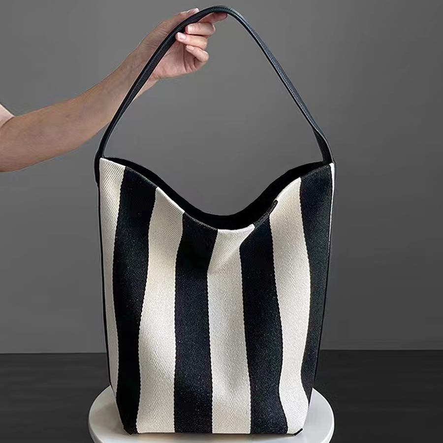 ミニバッグ付きの2点セット ストライプ柄トートバッグ