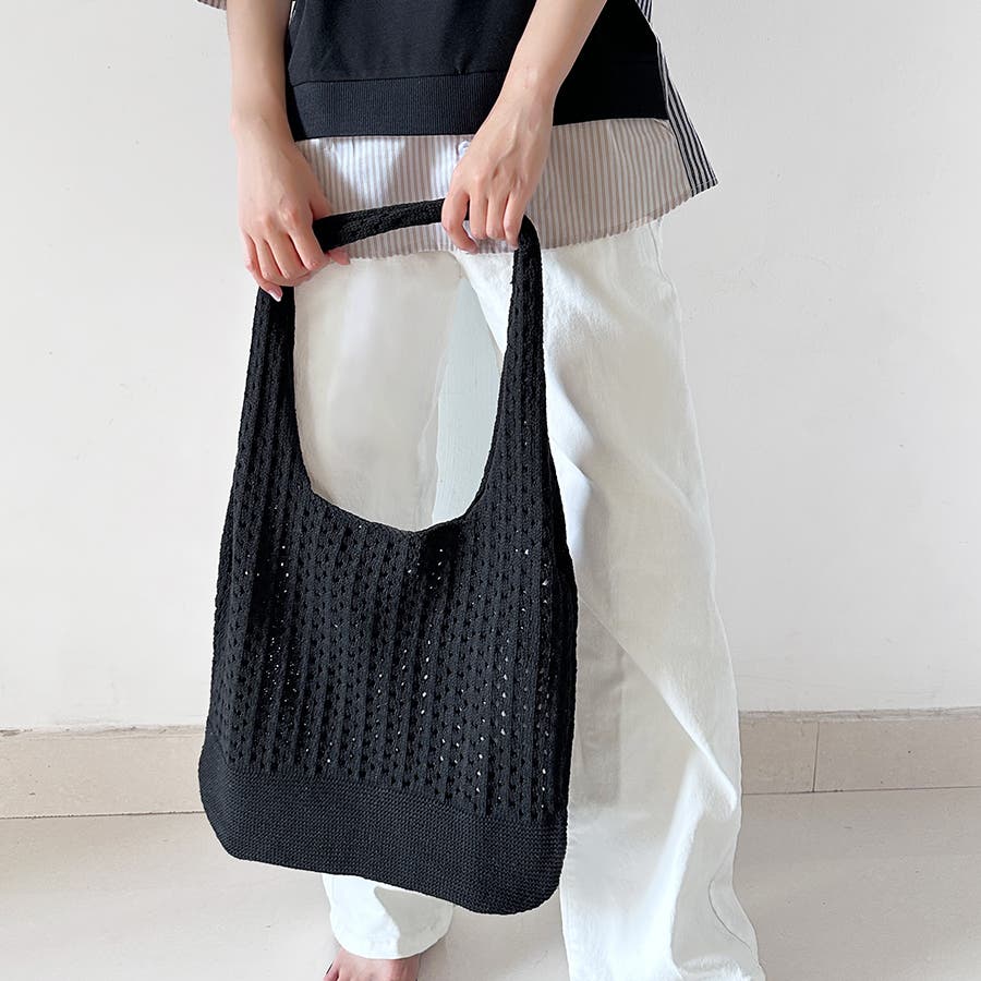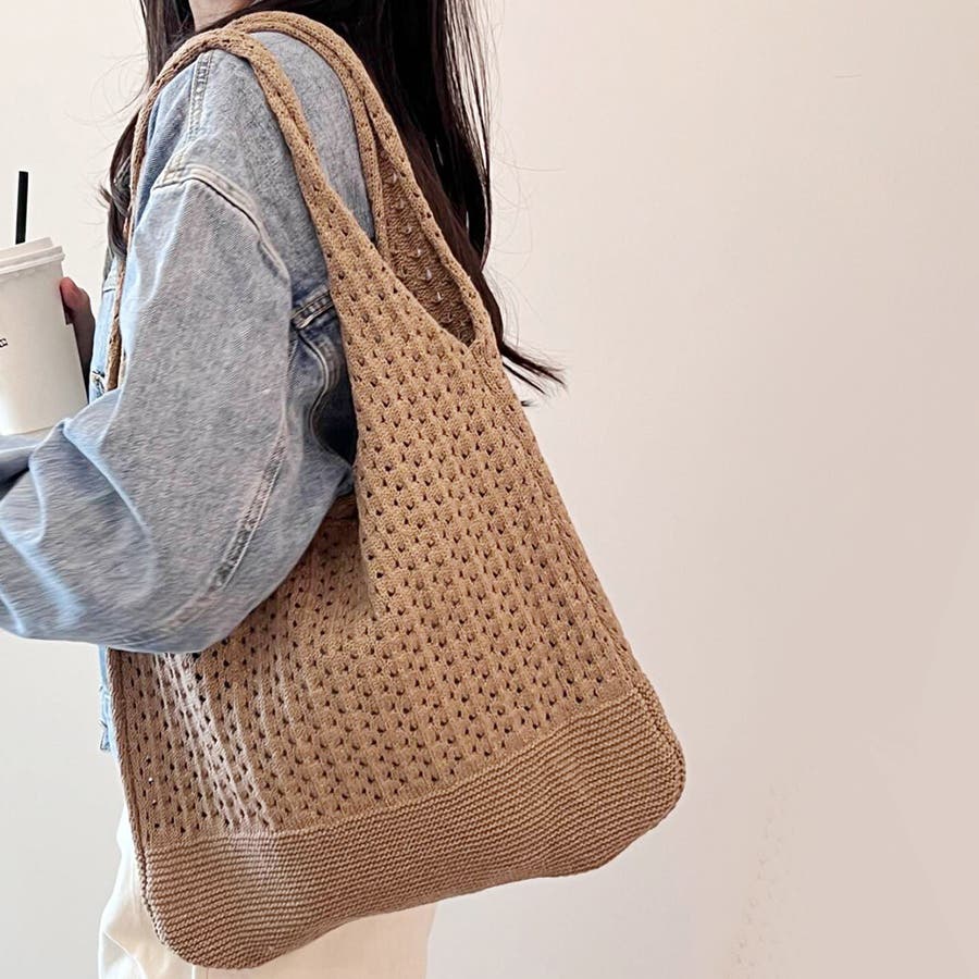 透け感のあるアクリル素材で仕立てた、軽やかな印象のトートバッグです。