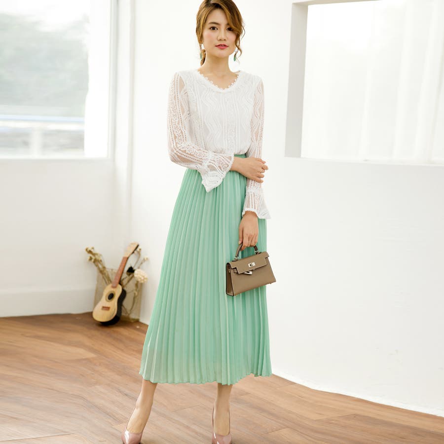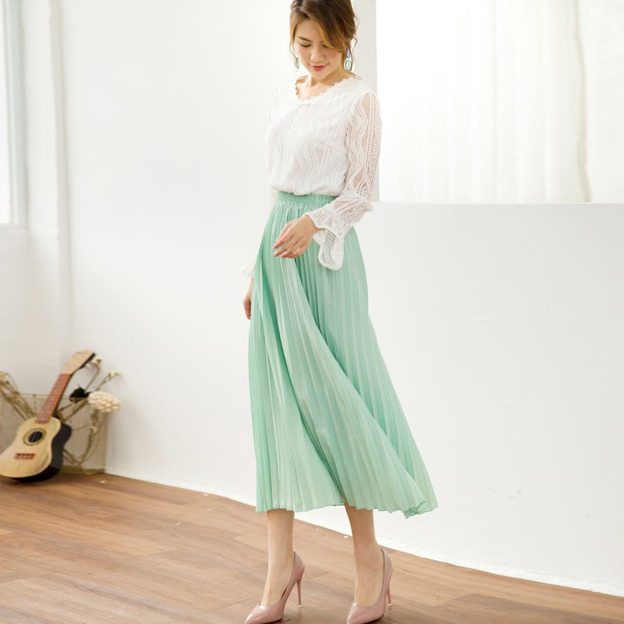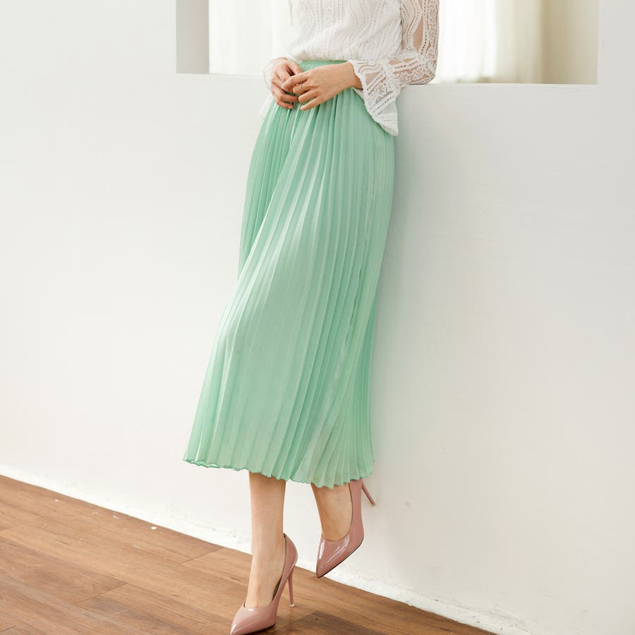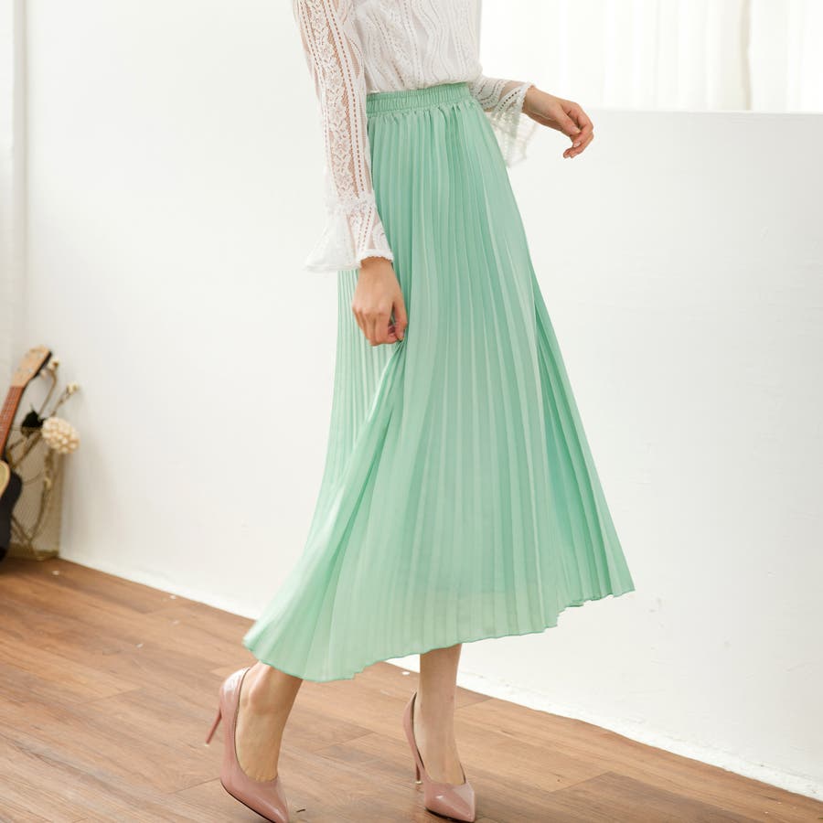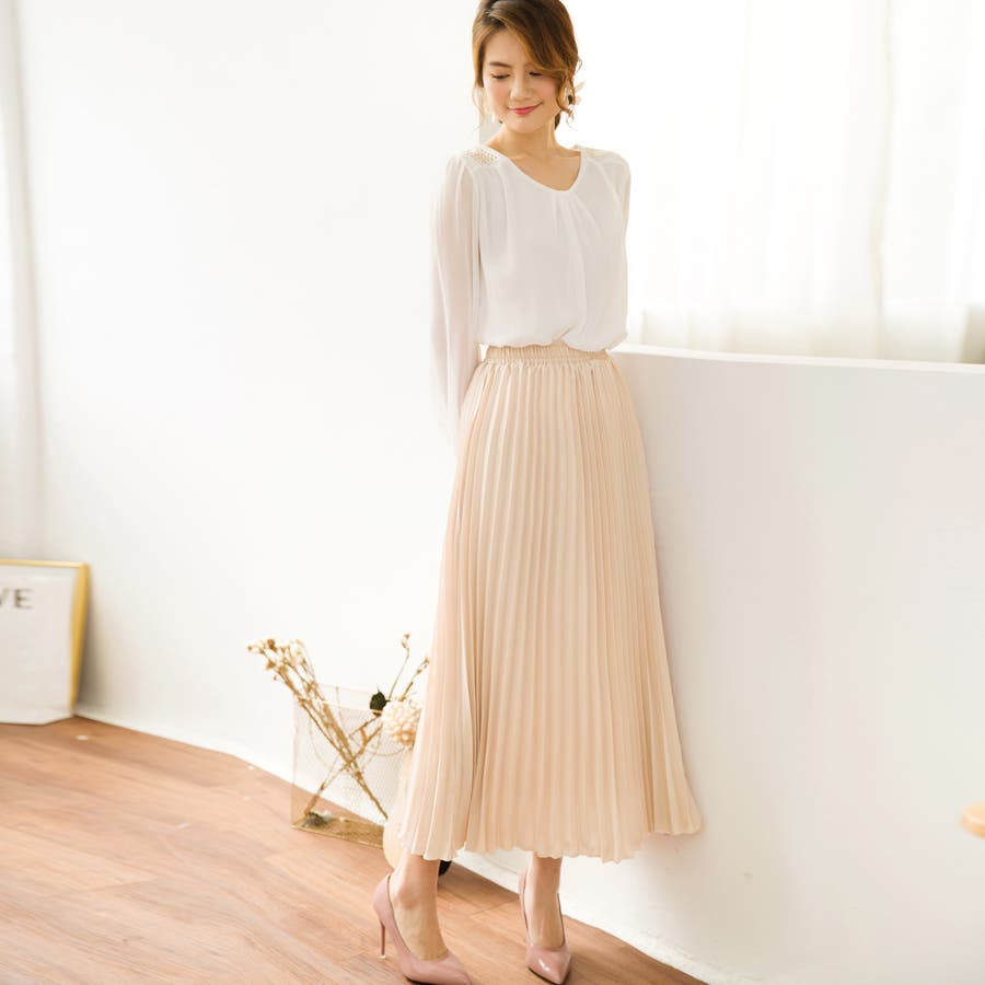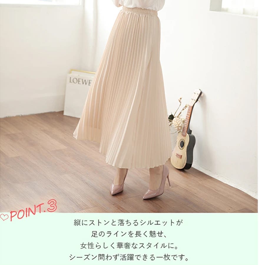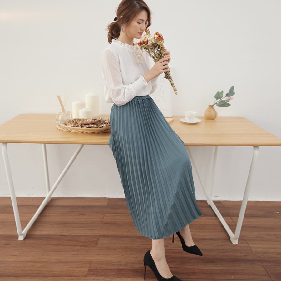 長くシーズンに使える雰囲気に動きたびに揺れてるプリーツが可愛い