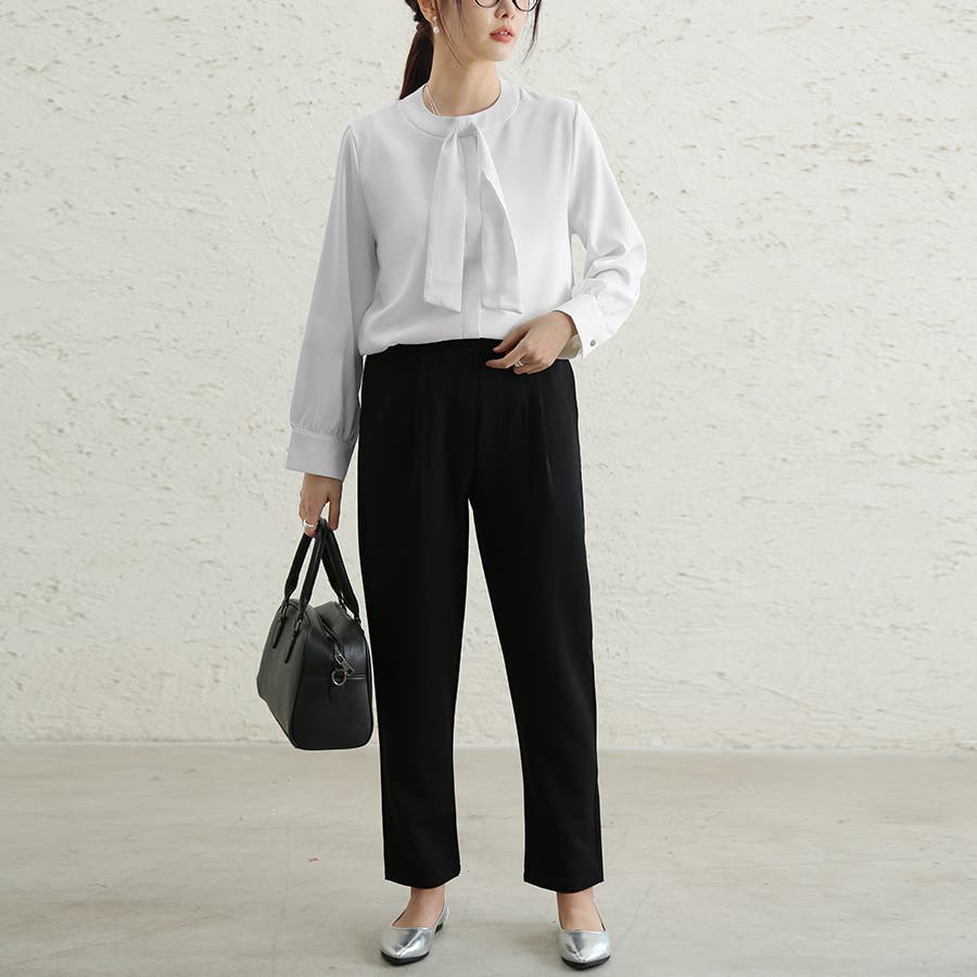 流行りに左右されず使いやすいトラウザーパンツ。