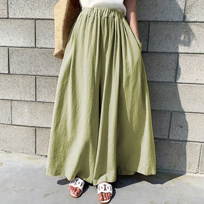 フレアスカートのようなワイドパンツ、スカートより使い勝手。