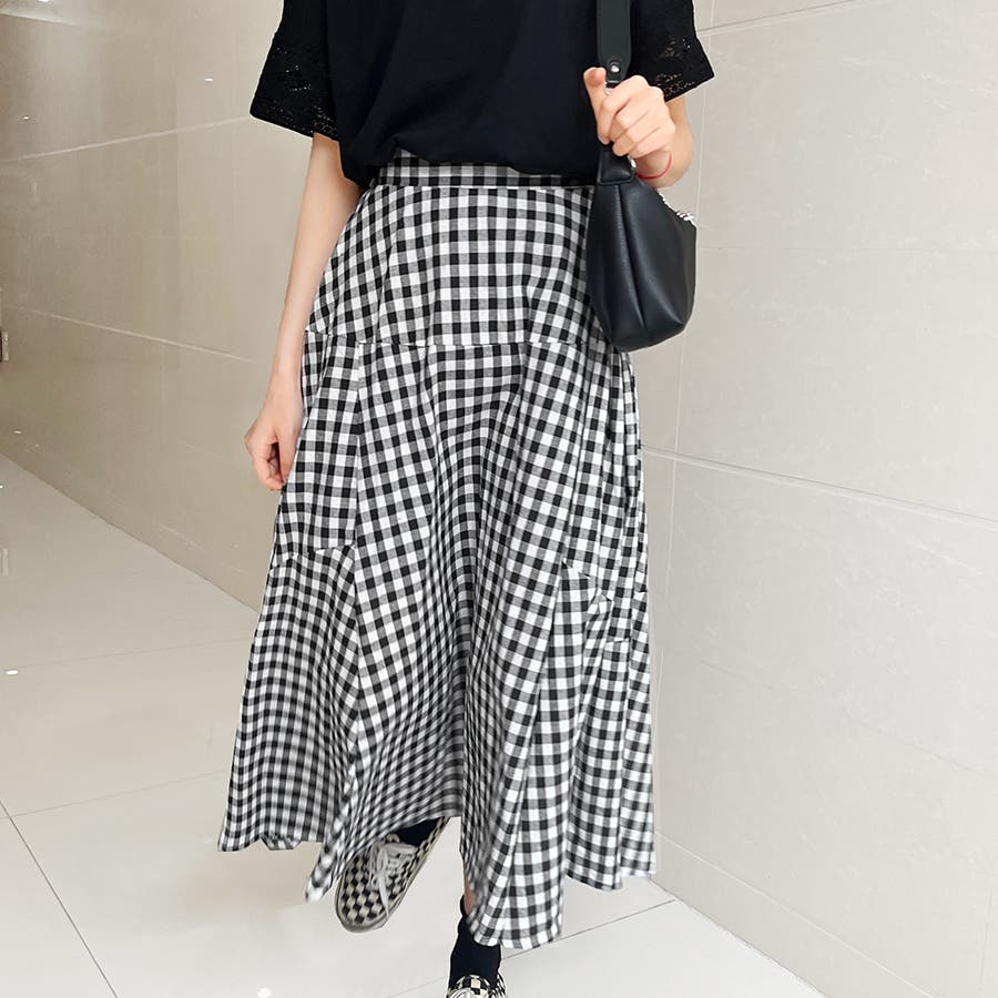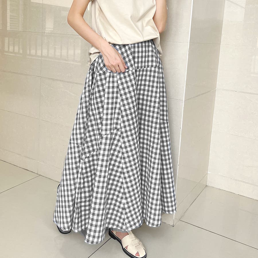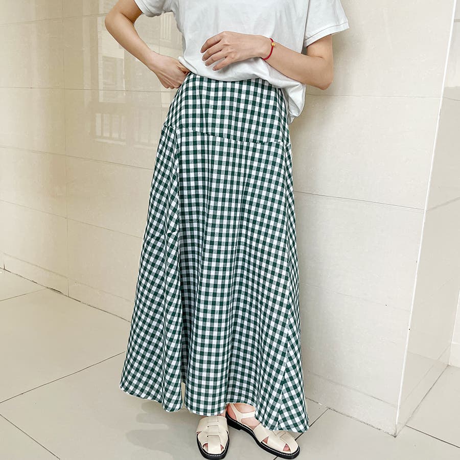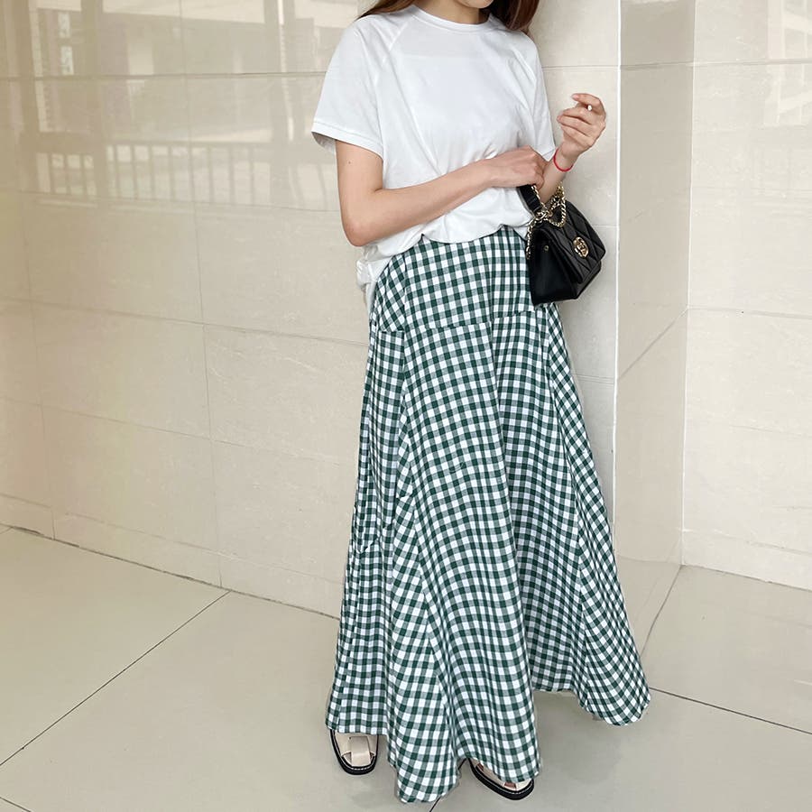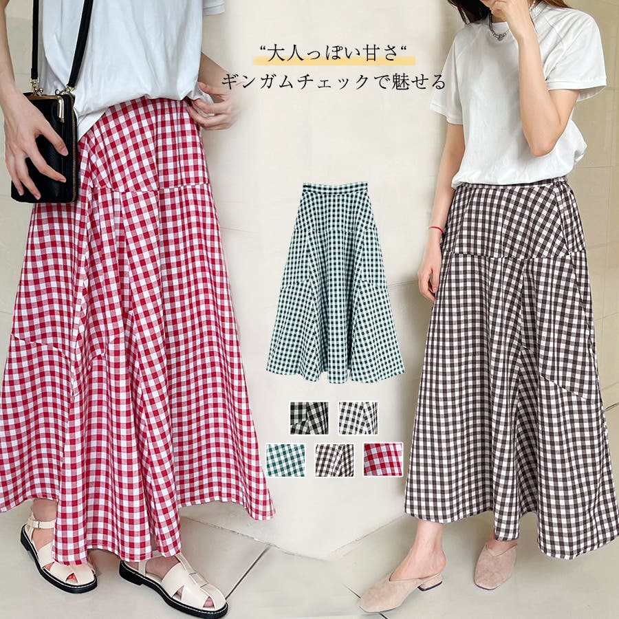 新作 スカート フレアスカート チェック柄 カジュアル キングダム柄
