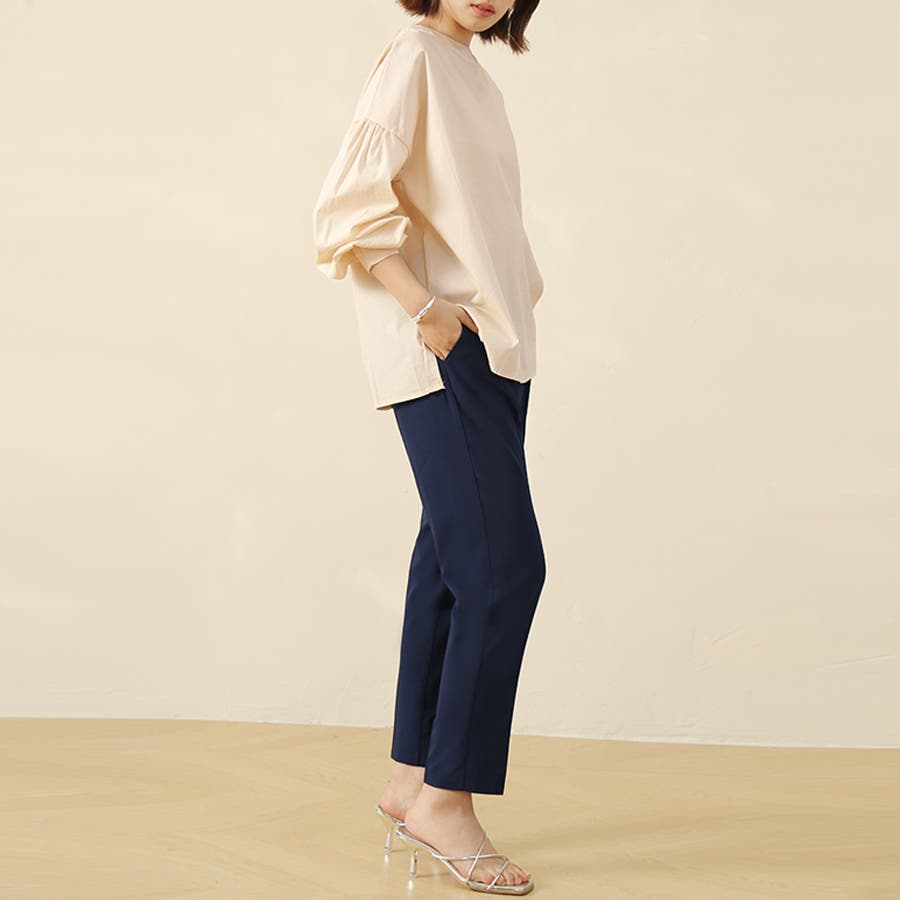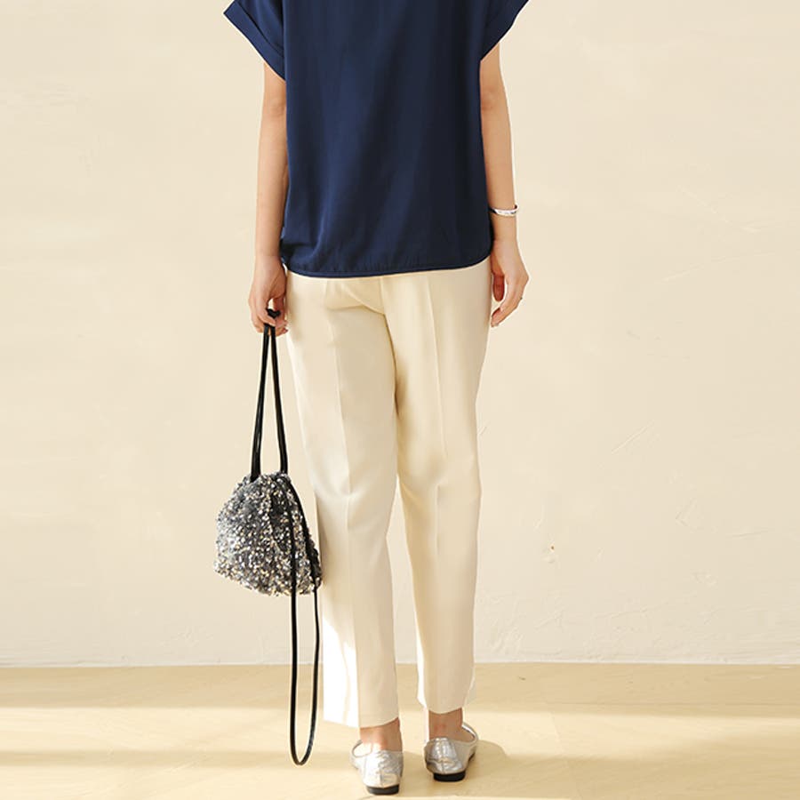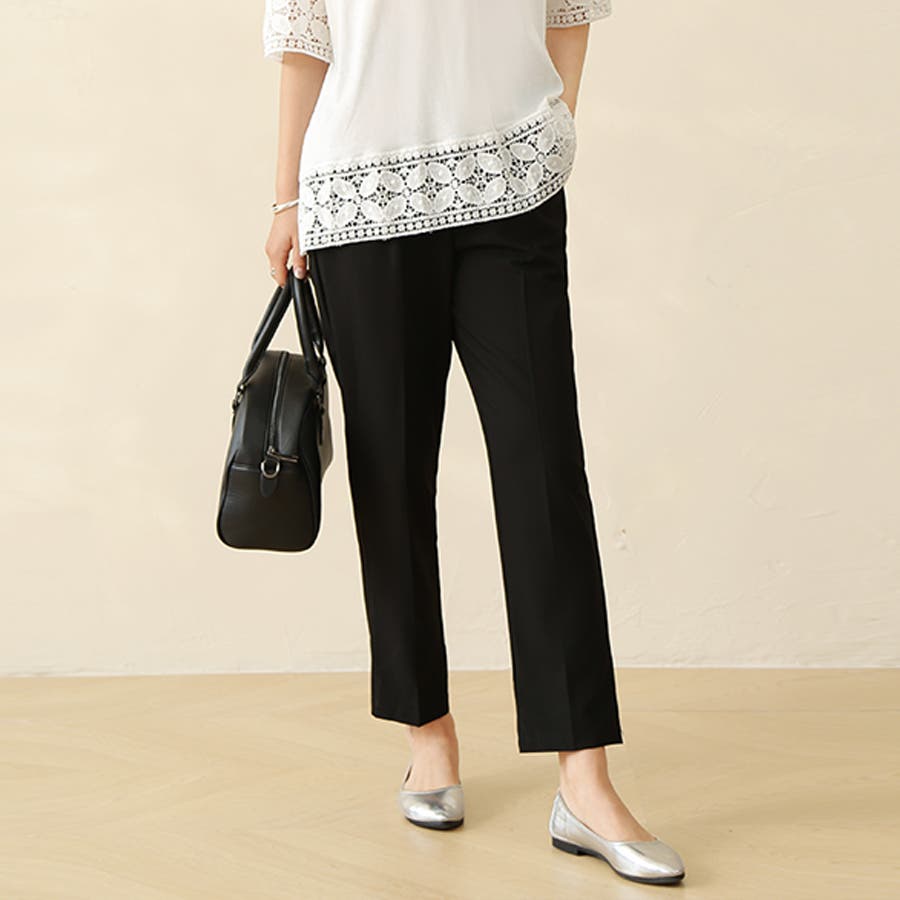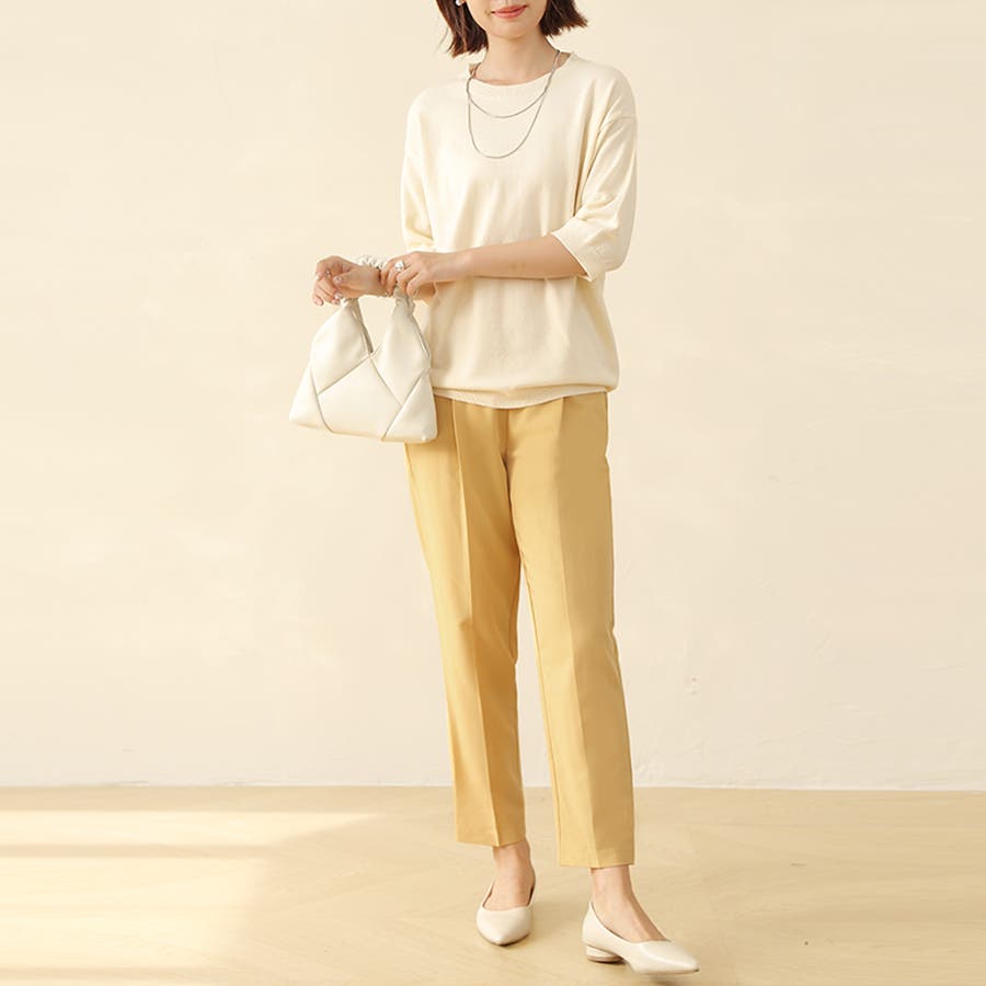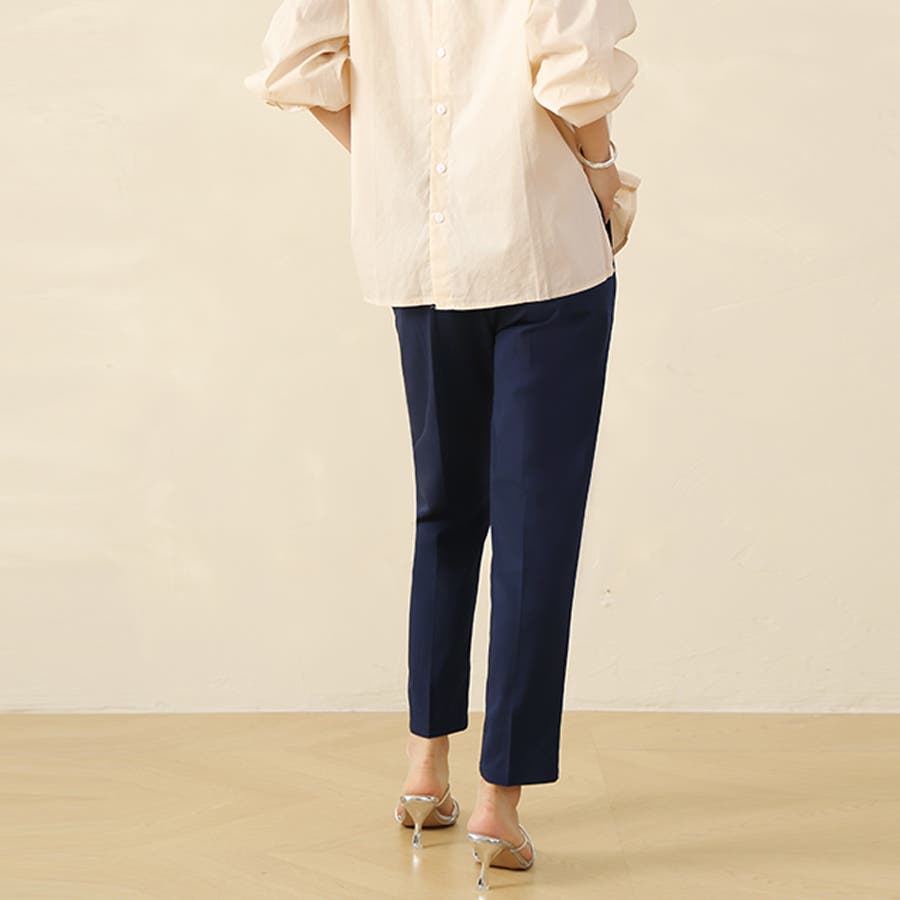 センタープレスがきちんと感を演出して大人っぽく綺麗めなスタイルに仕上げます。