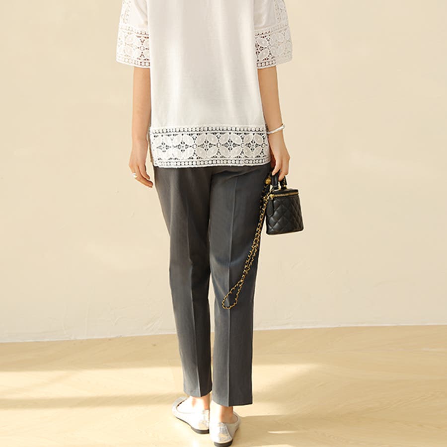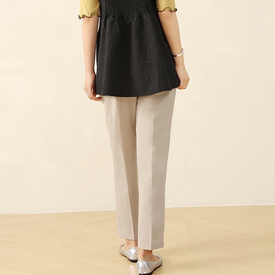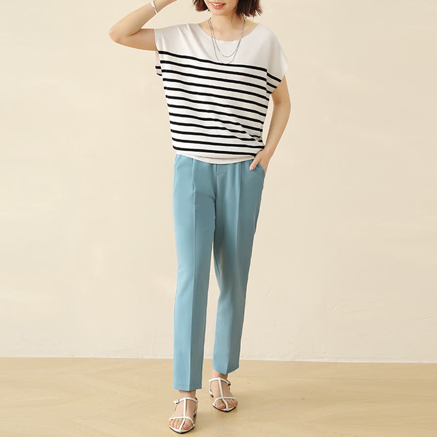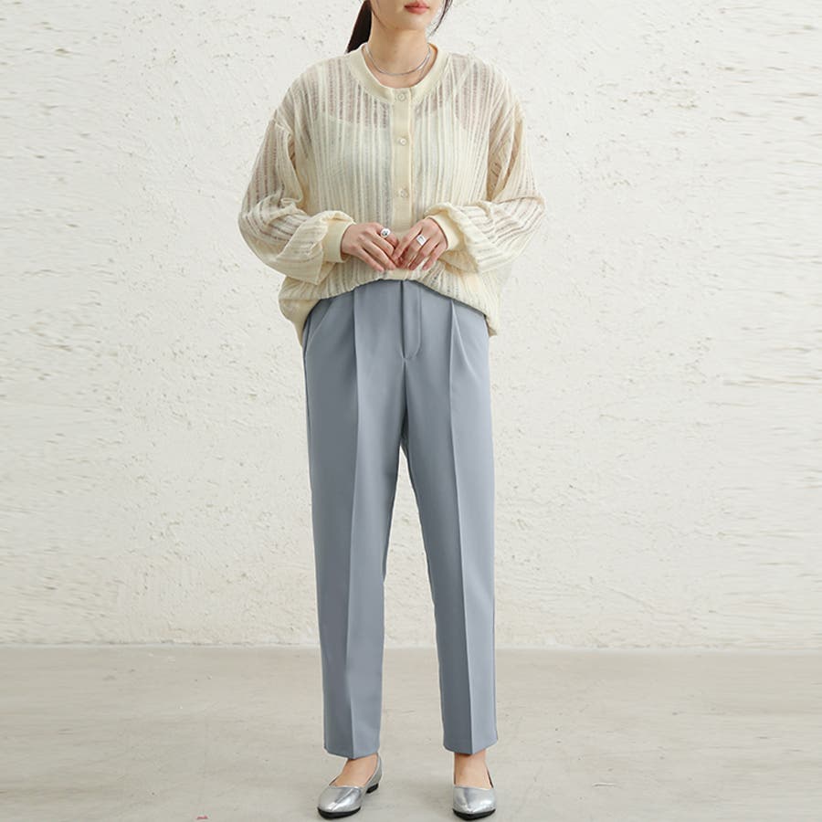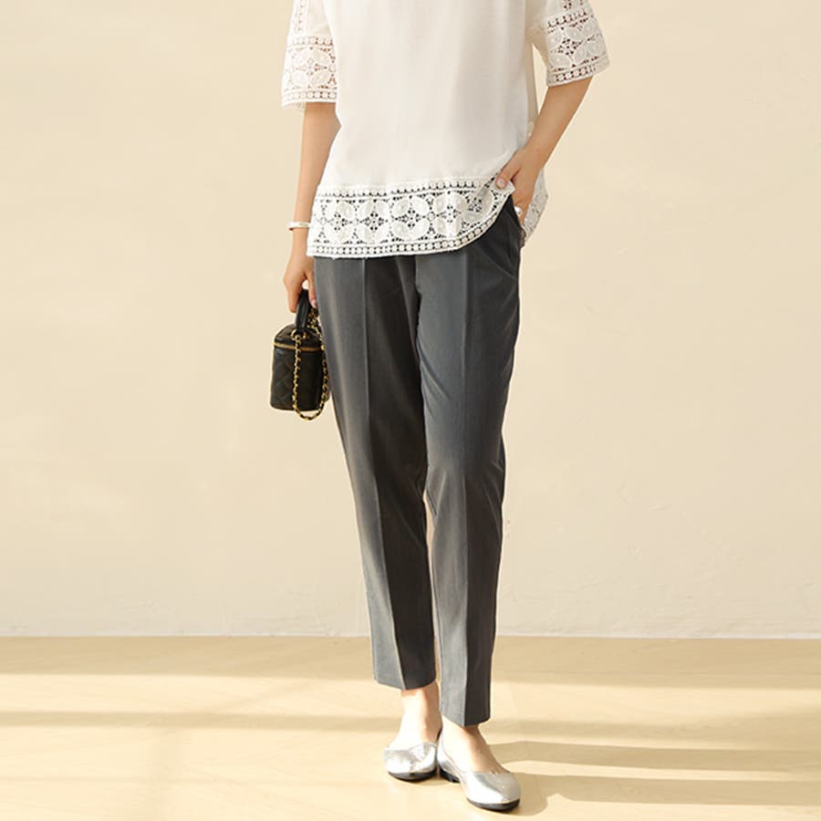 センタープレスがきちんと感を演出して大人っぽく綺麗めなスタイルに仕上げます。