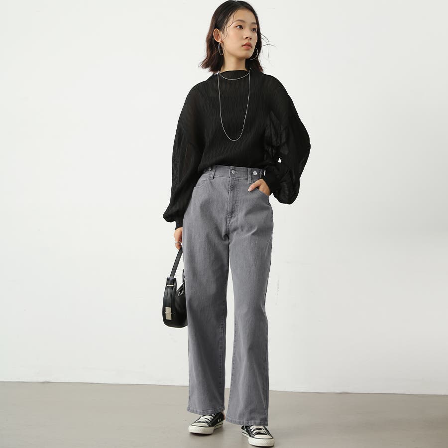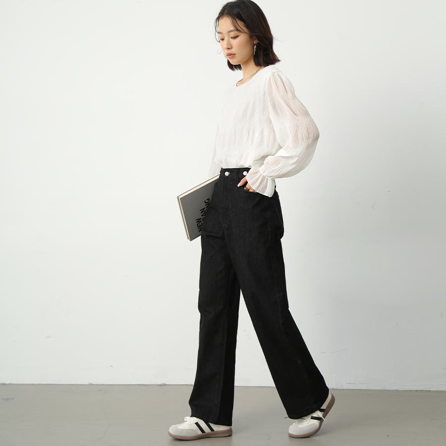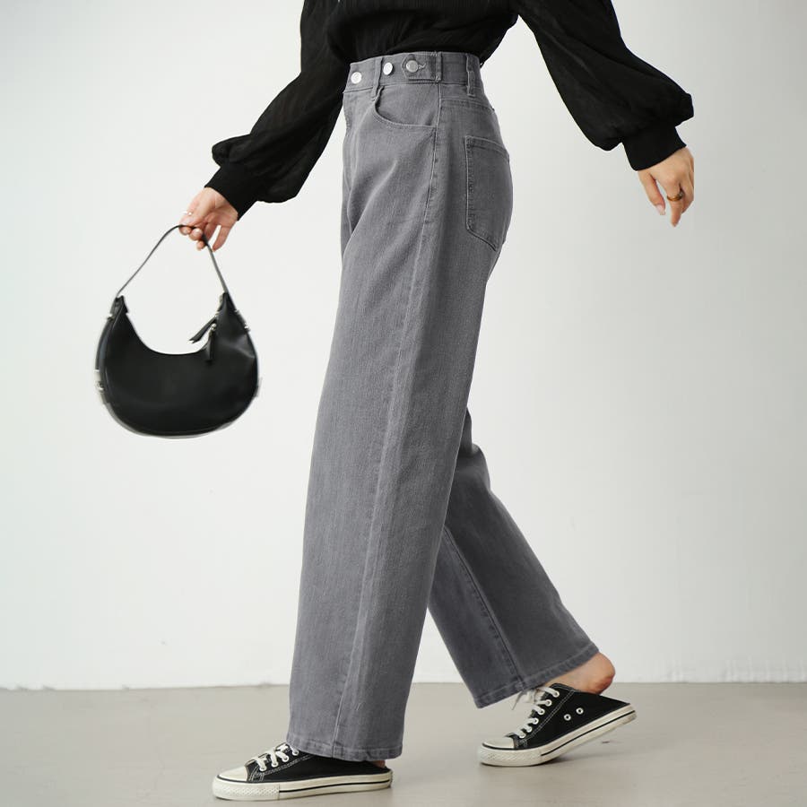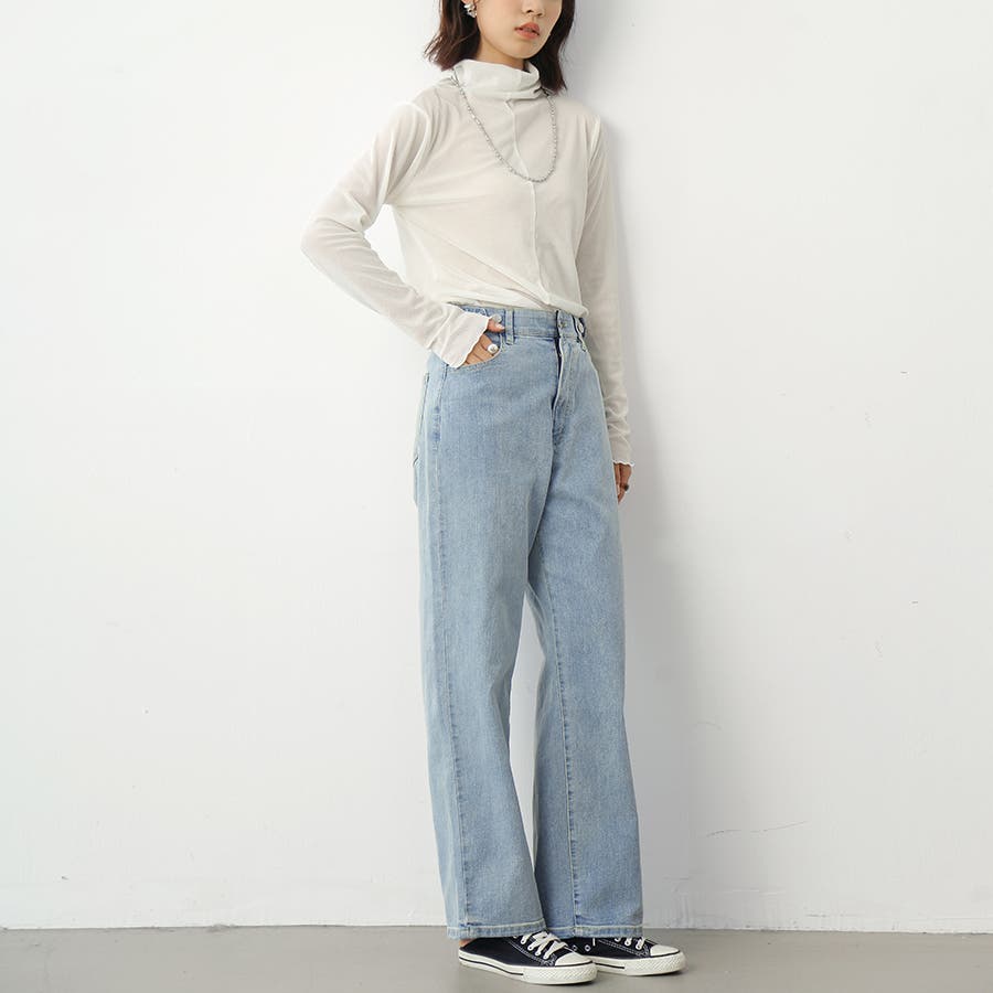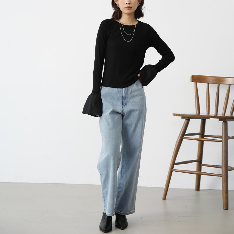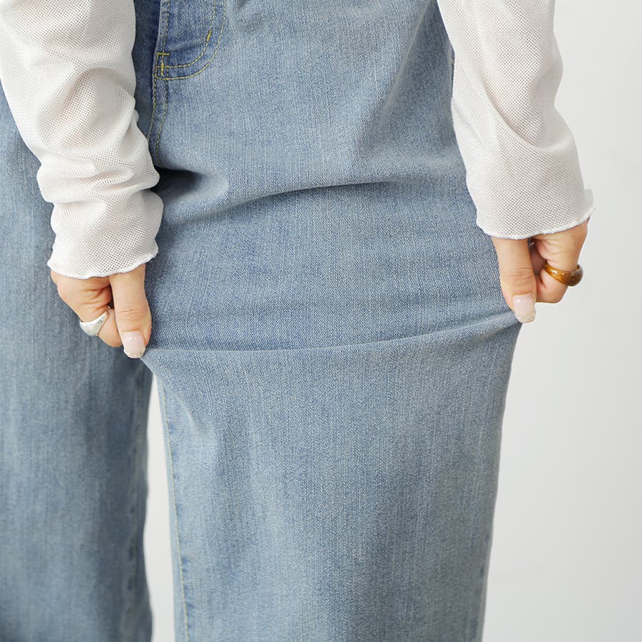 無地のデニム生地はどんなトップスとも相性が良く、