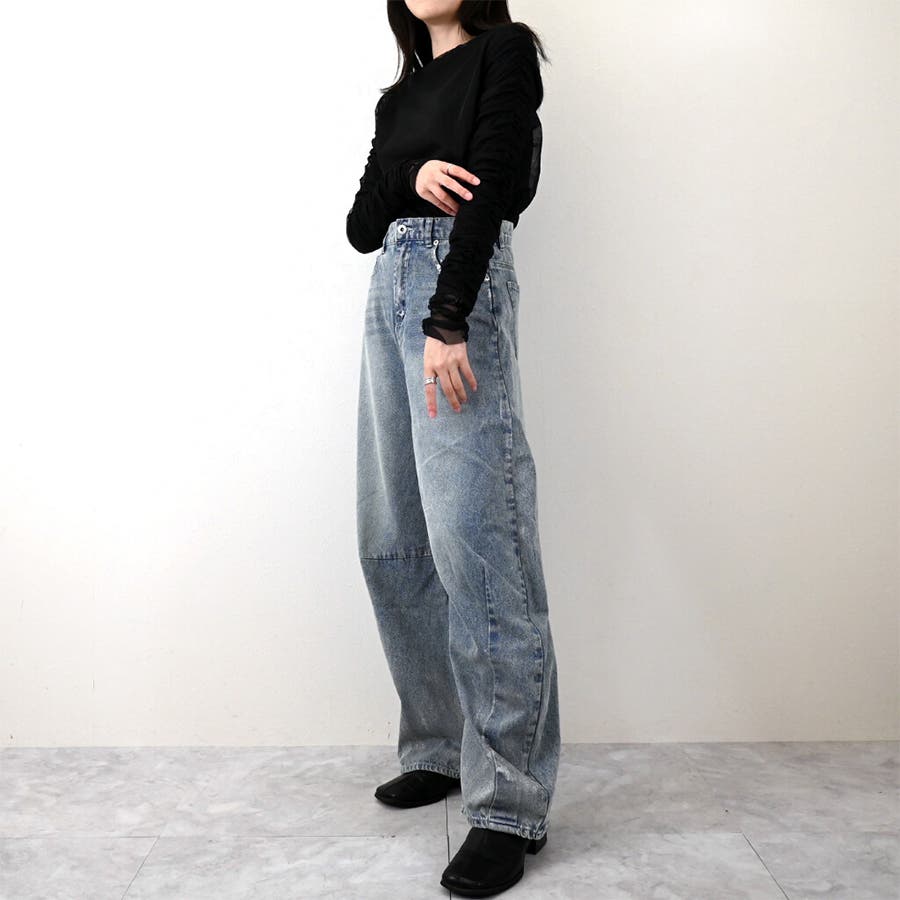 カーブシルエットでしっかりボトムスにボリュームが出るので