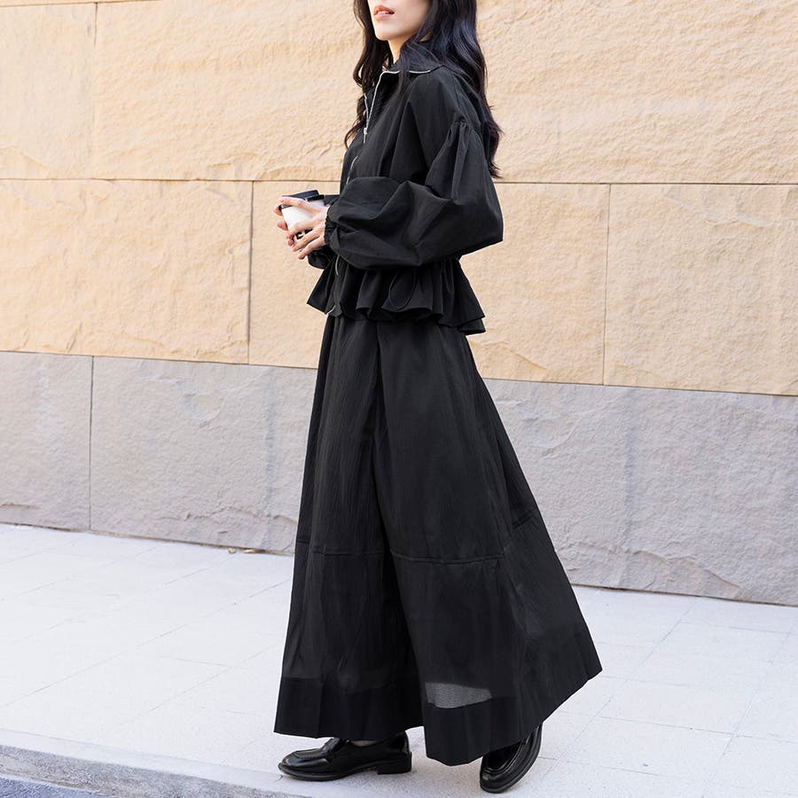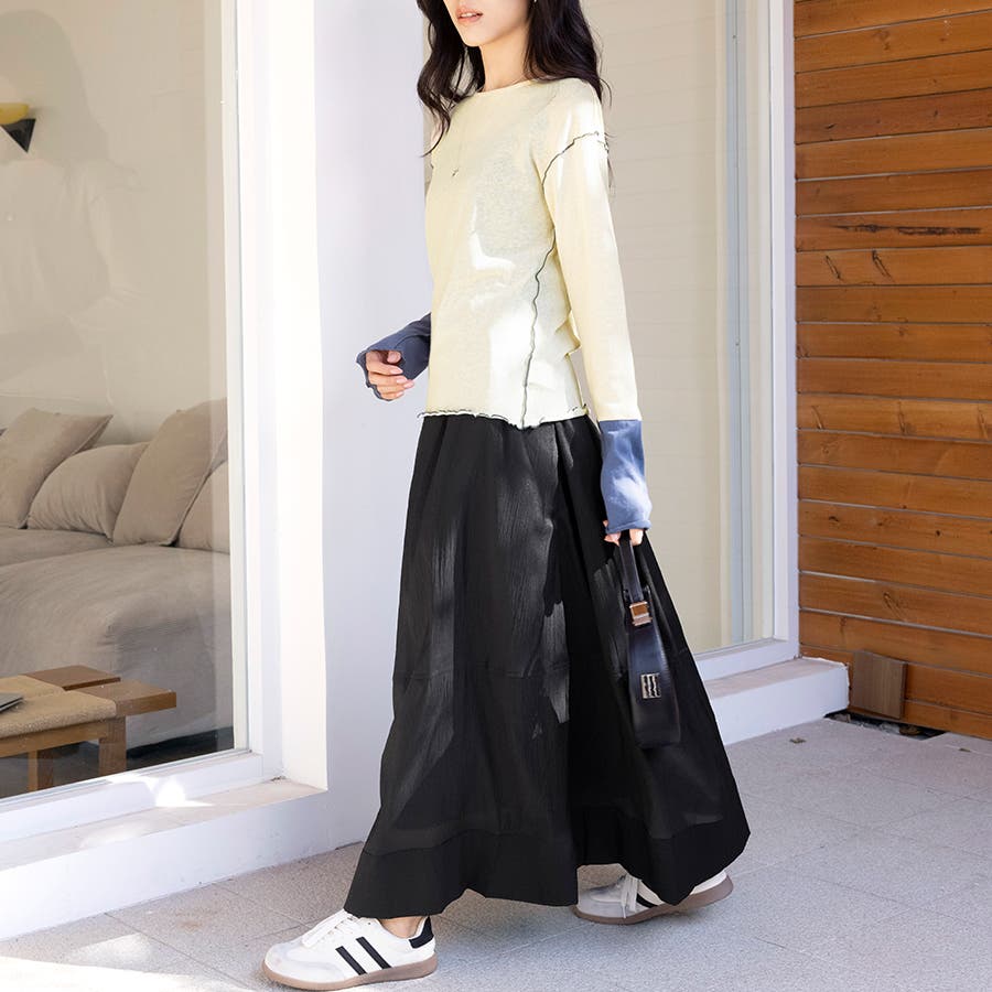 絶妙な透け感が程よく、歩くたびにふわっと広がるフレアスカート