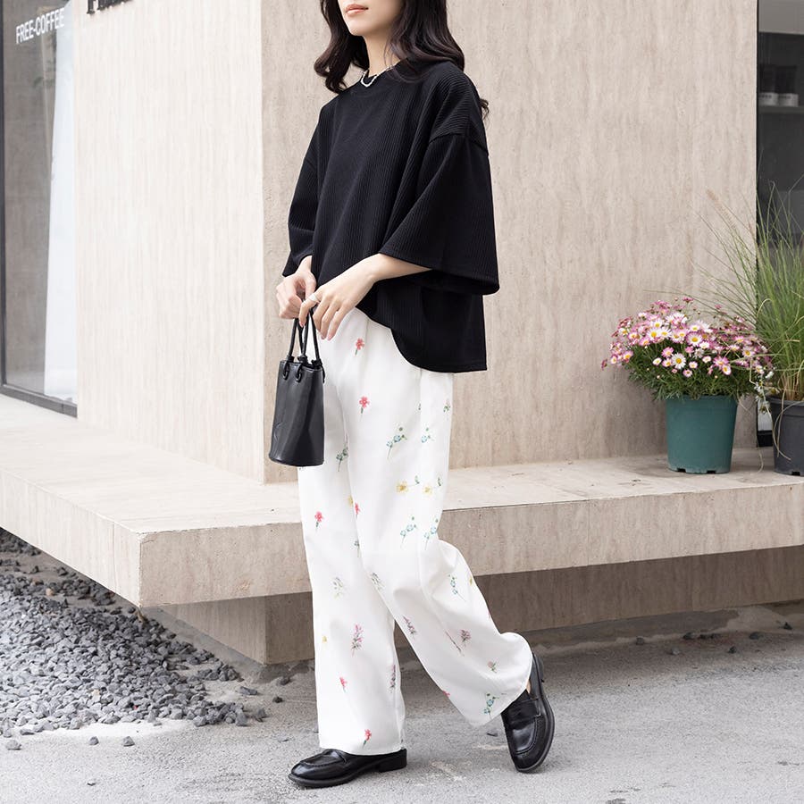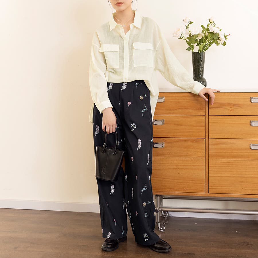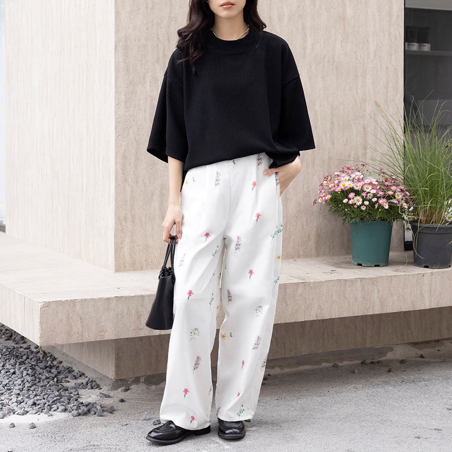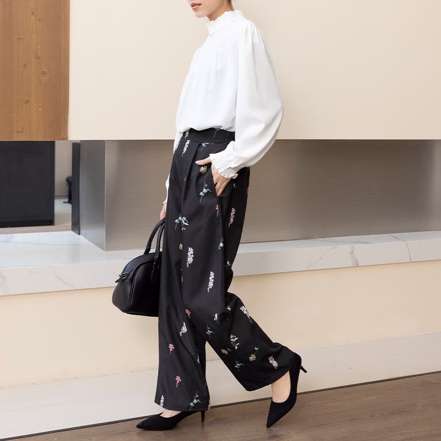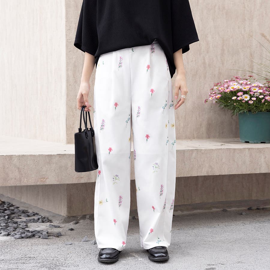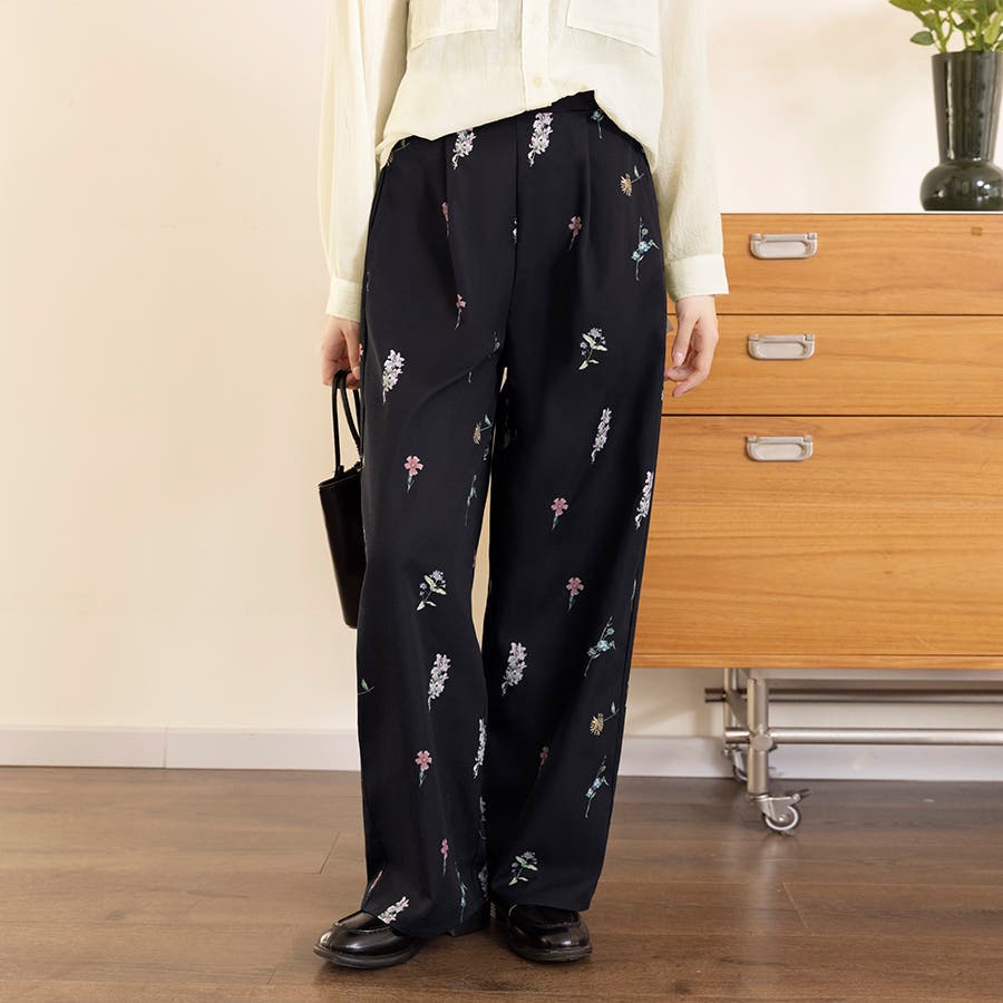 控えめな花柄で華やかながらも、抜け感があって大人っぽいワイドスラックスパンツが新登場!