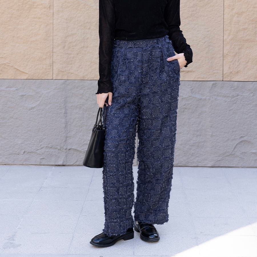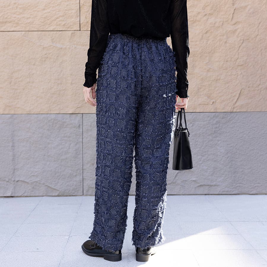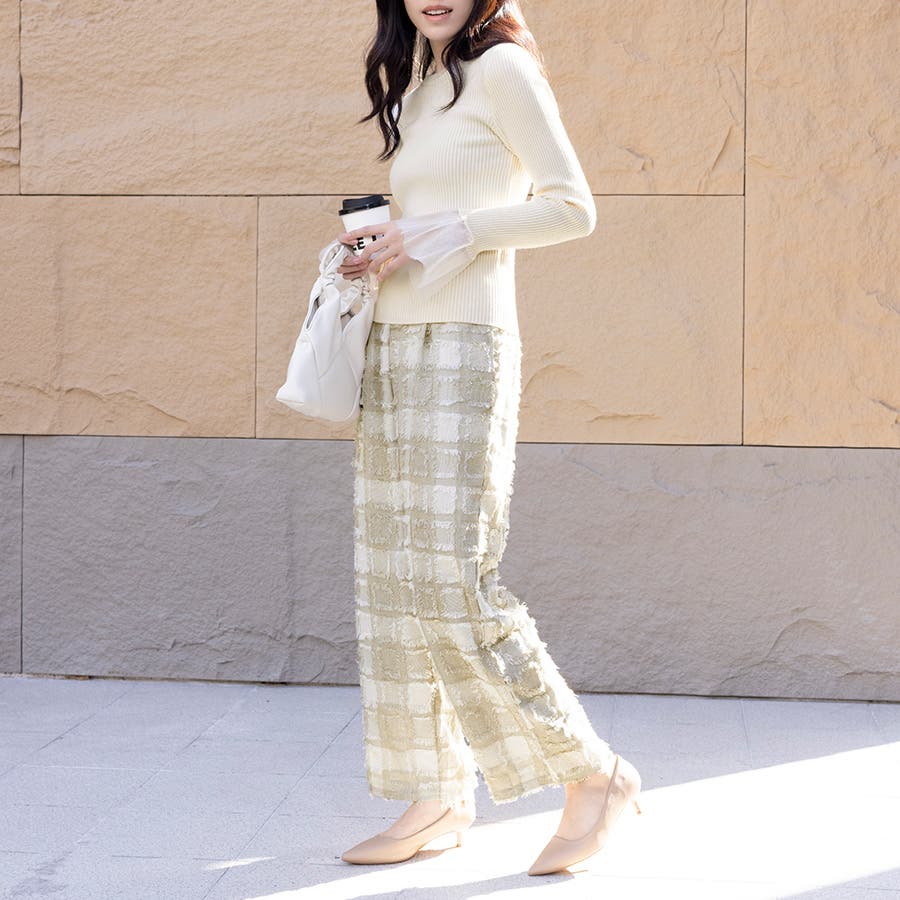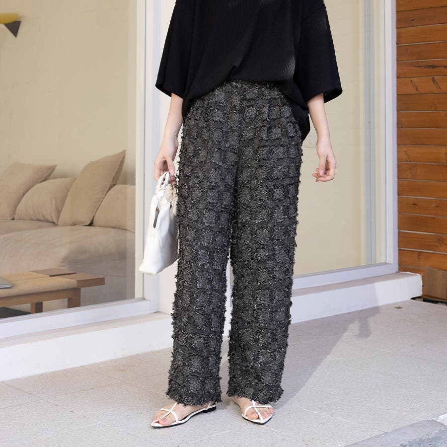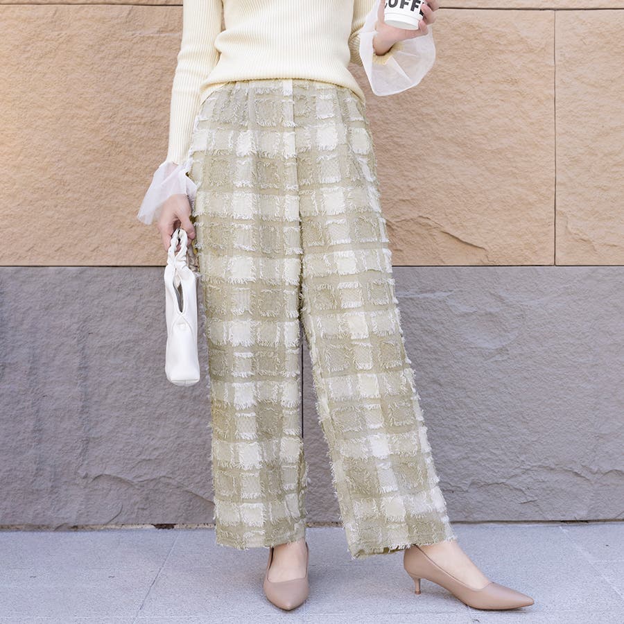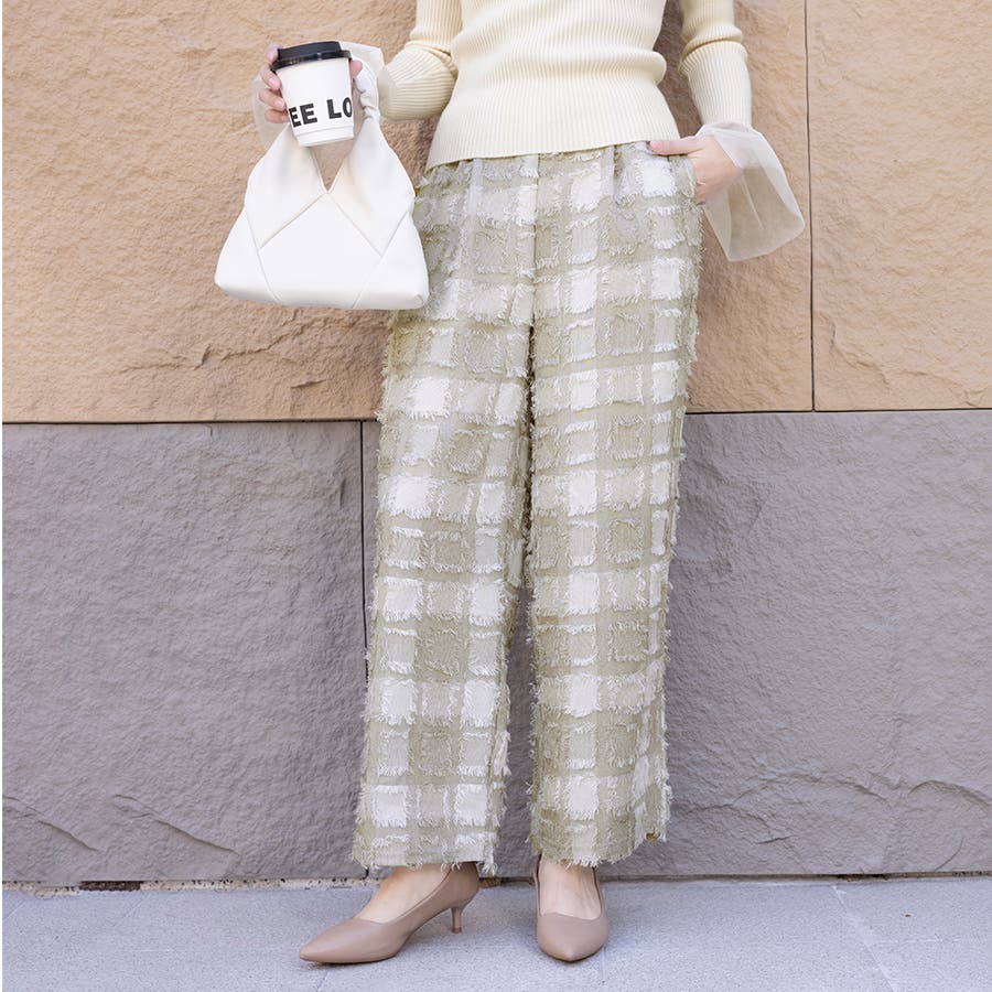 今トレンドの生地感を表現したフリンジチェックワイドパンツが新登場!