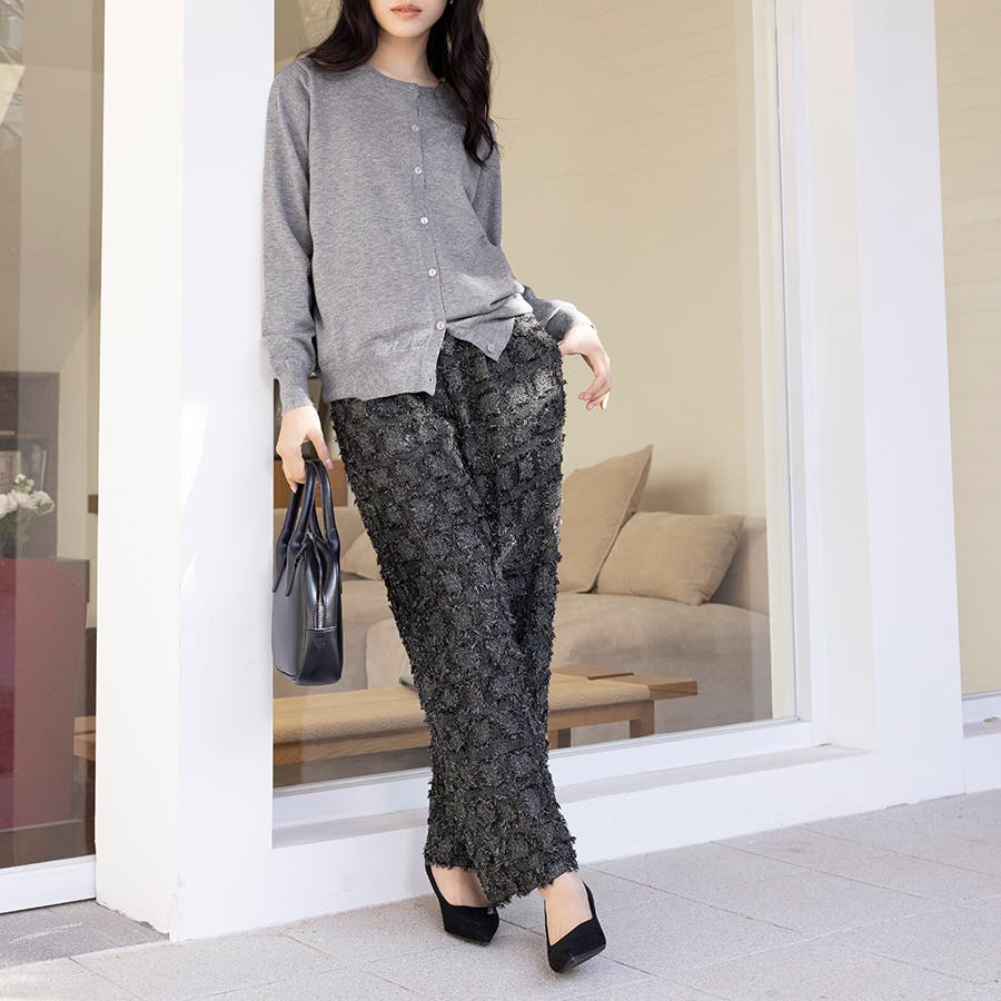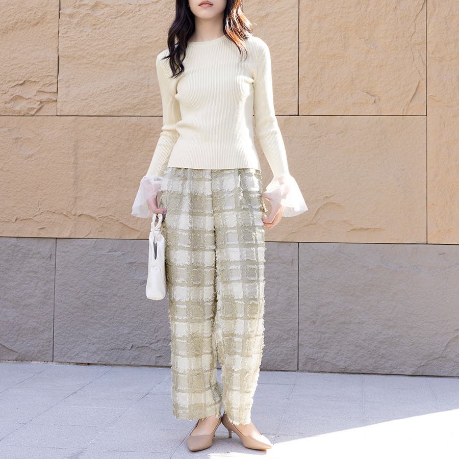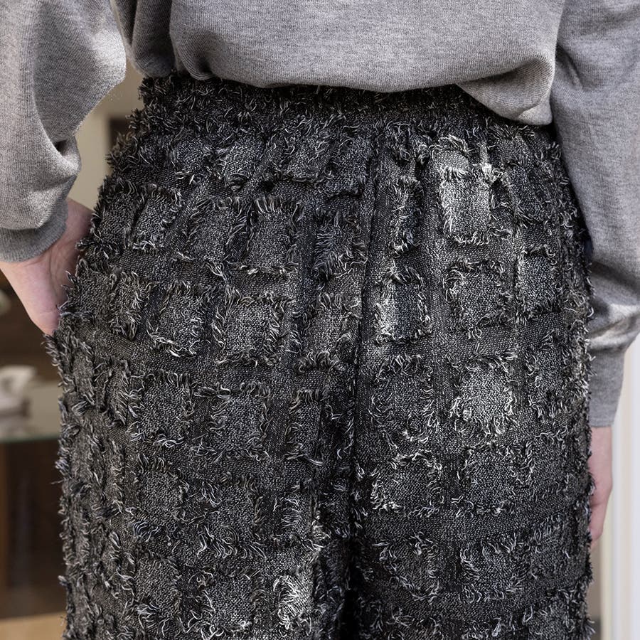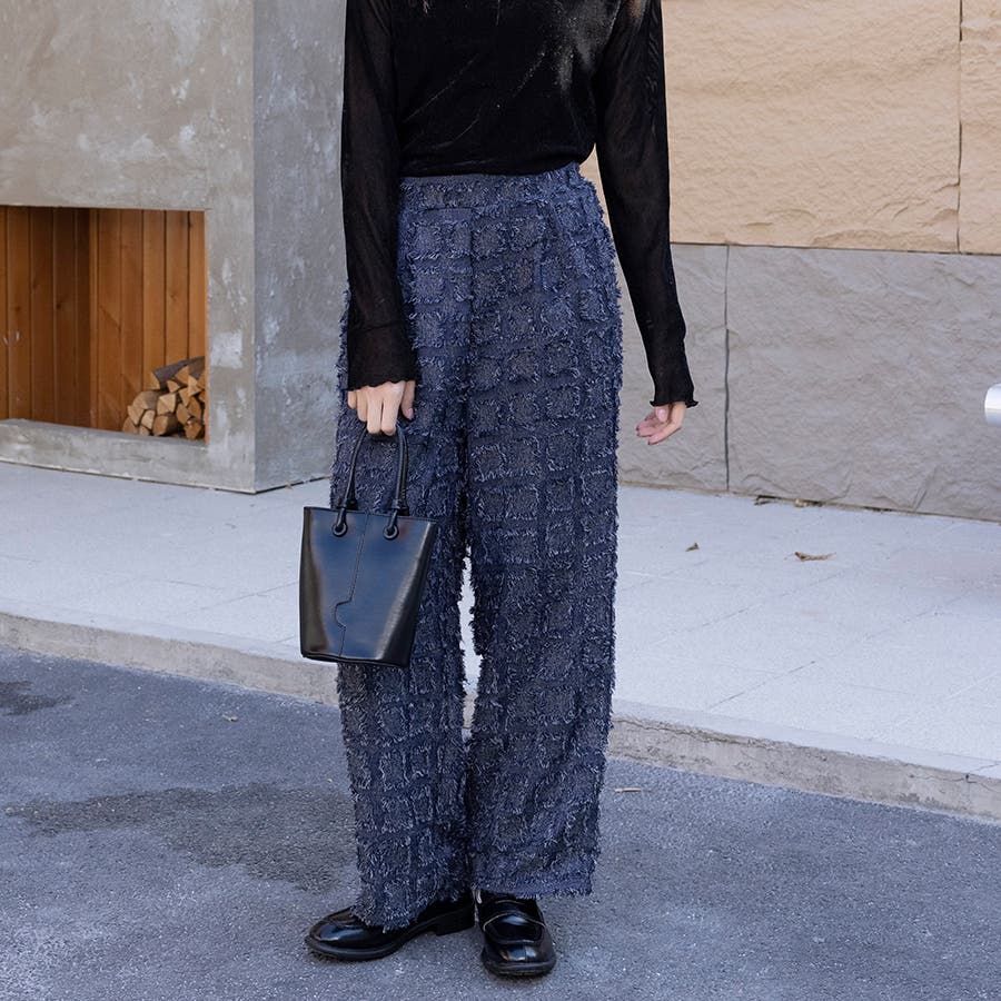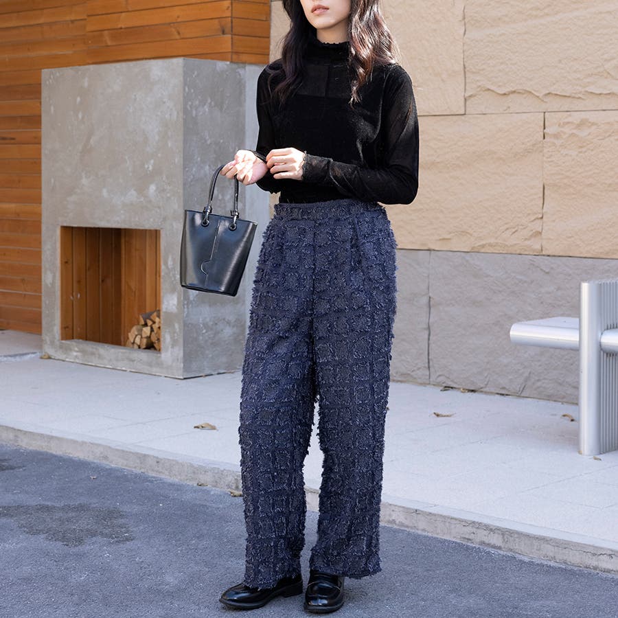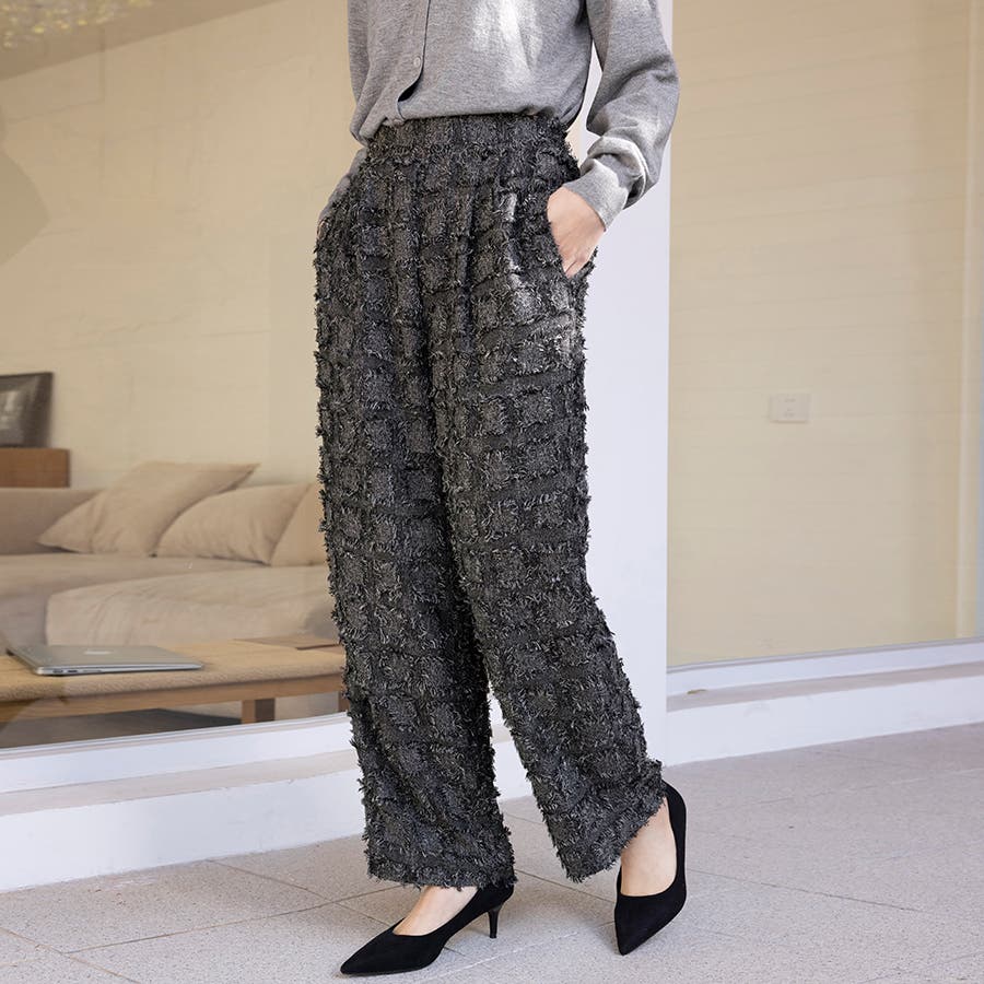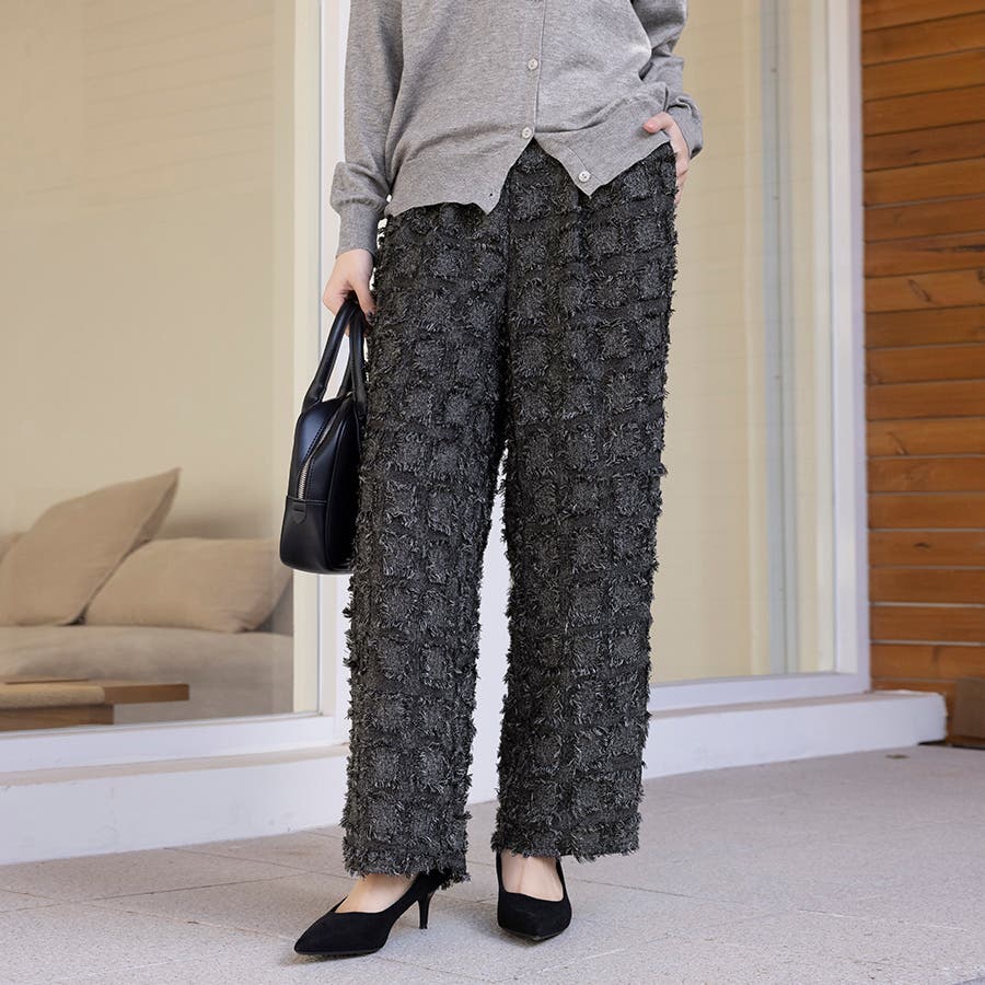 今トレンドの生地感を表現したフリンジチェックワイドパンツが新登場!