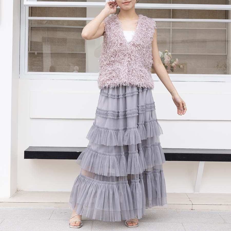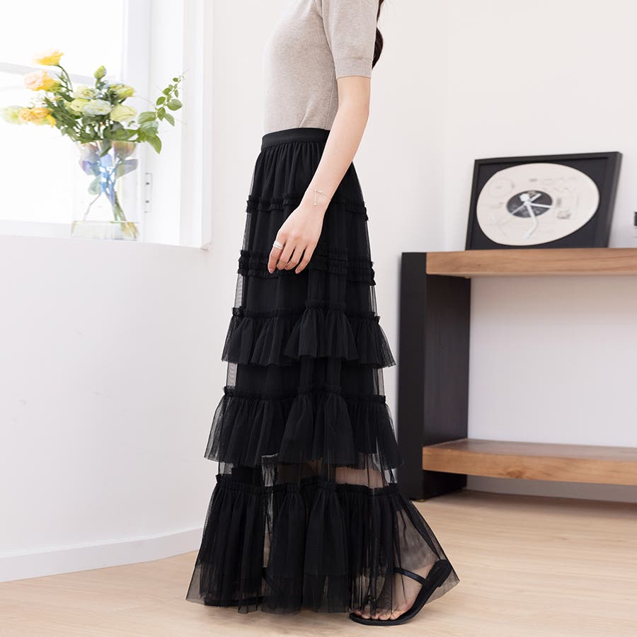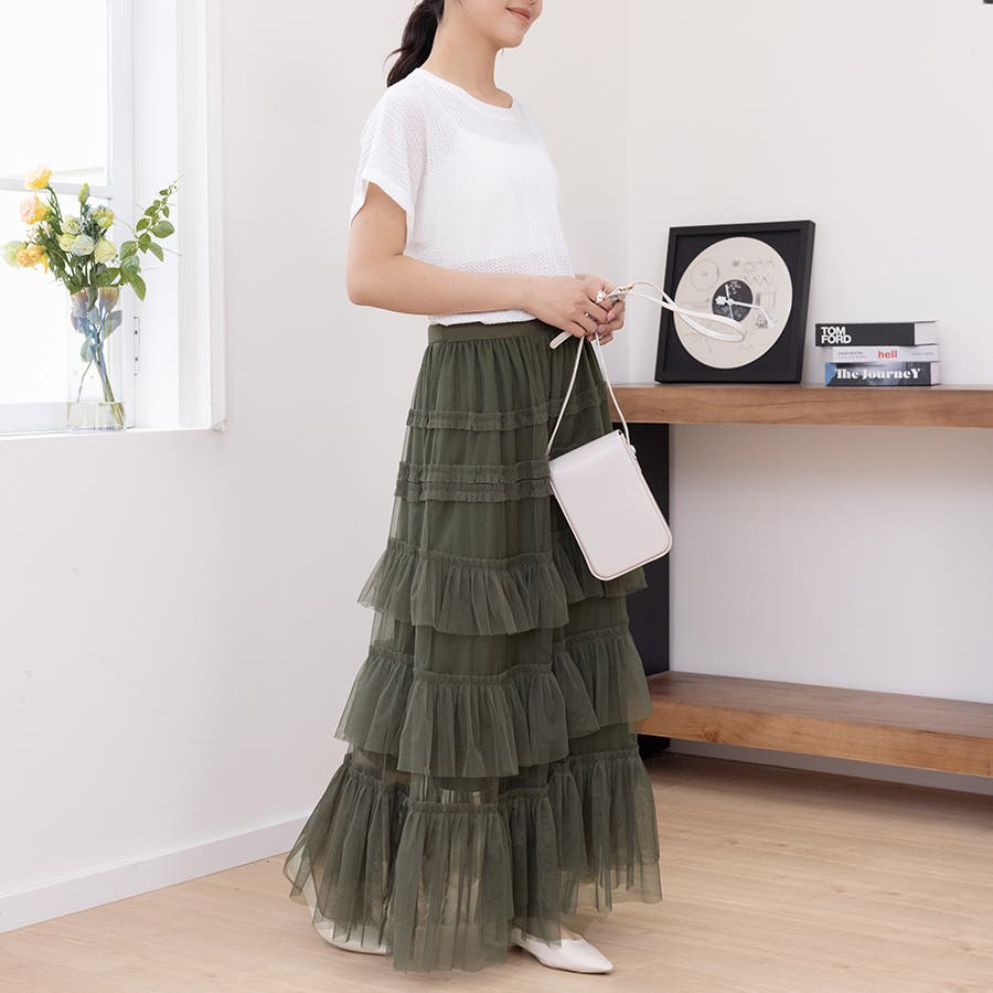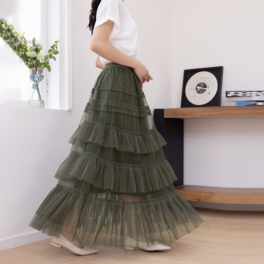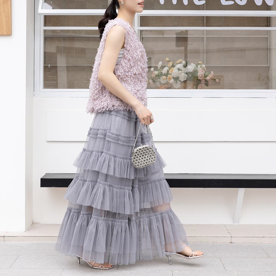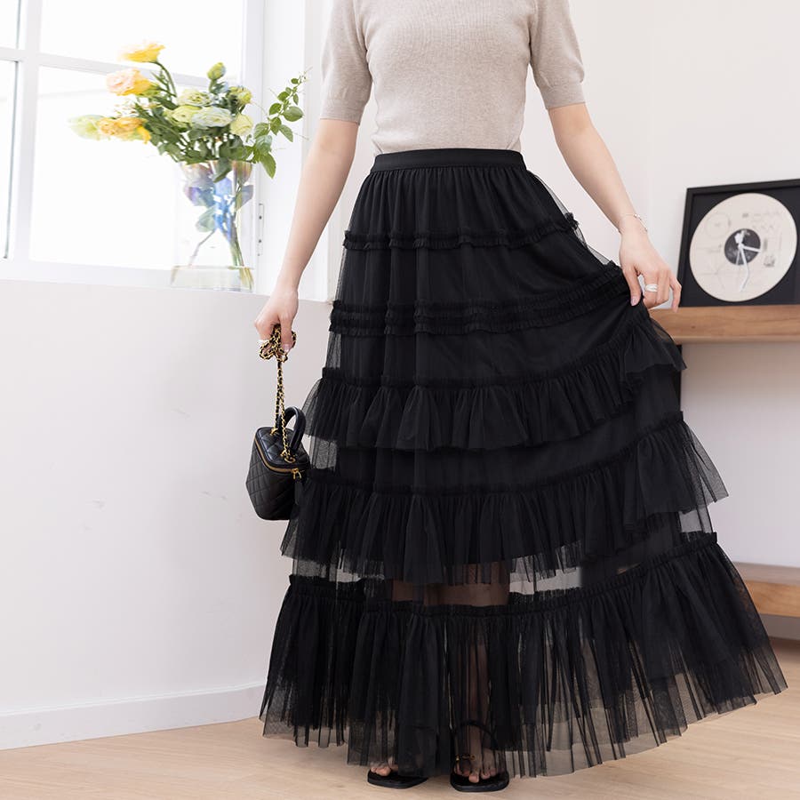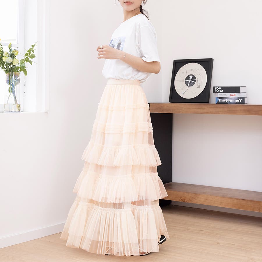 シアー素材を使用したティアードデザインがチャームポイントのAラインロングスカートが新登場!