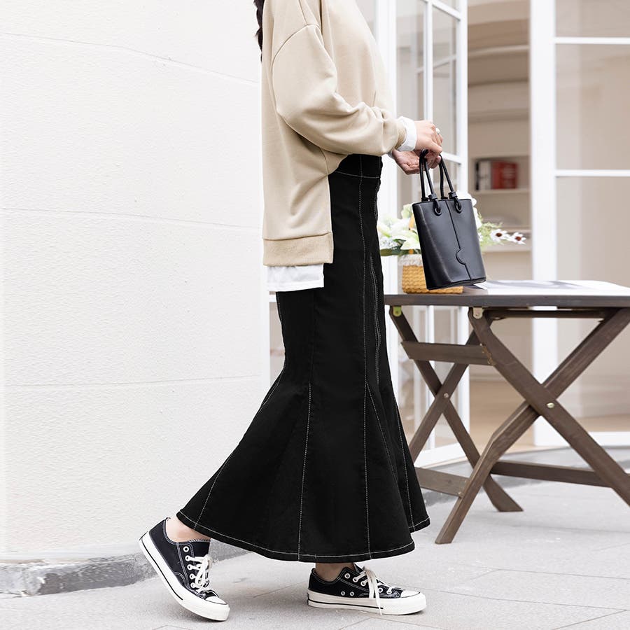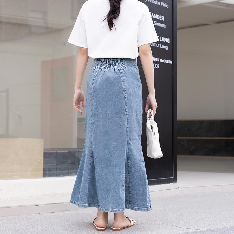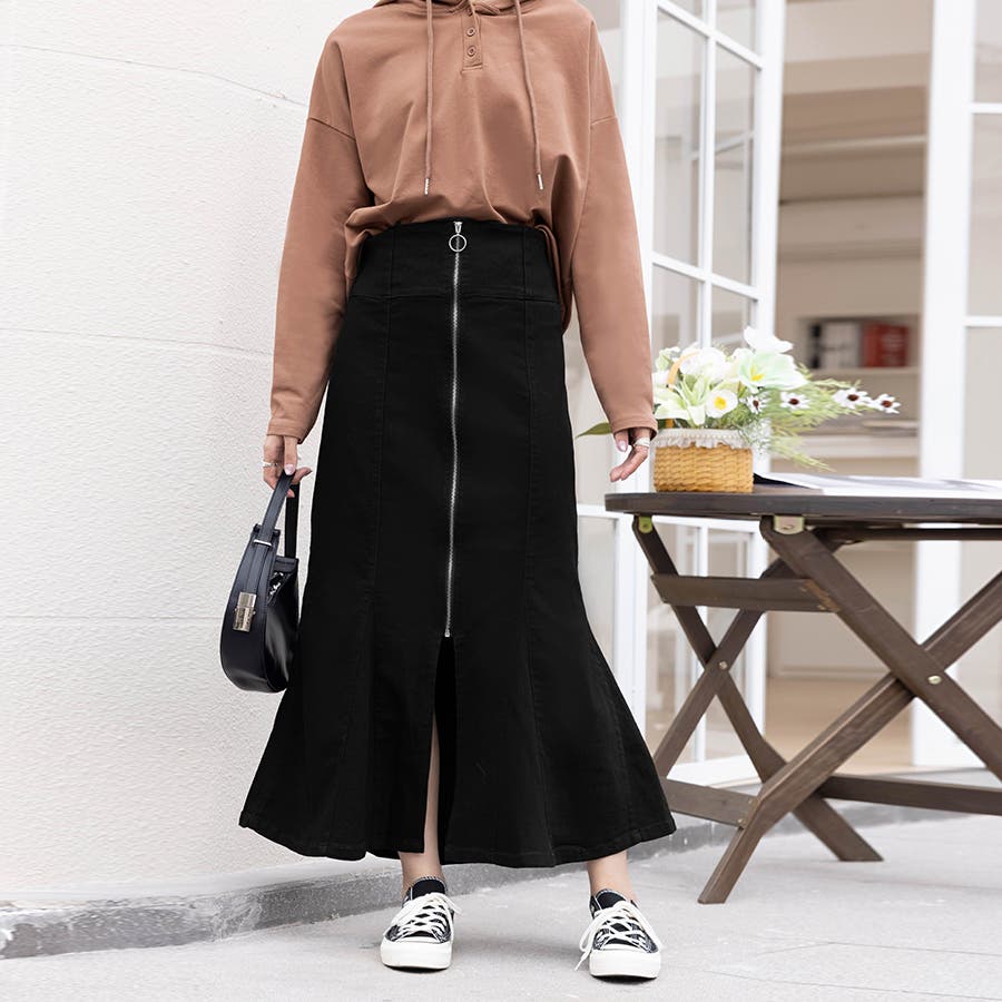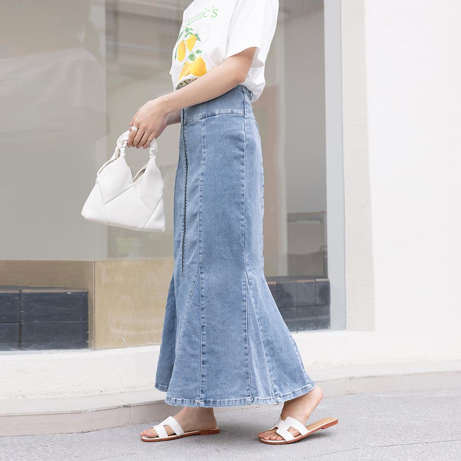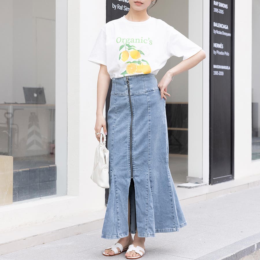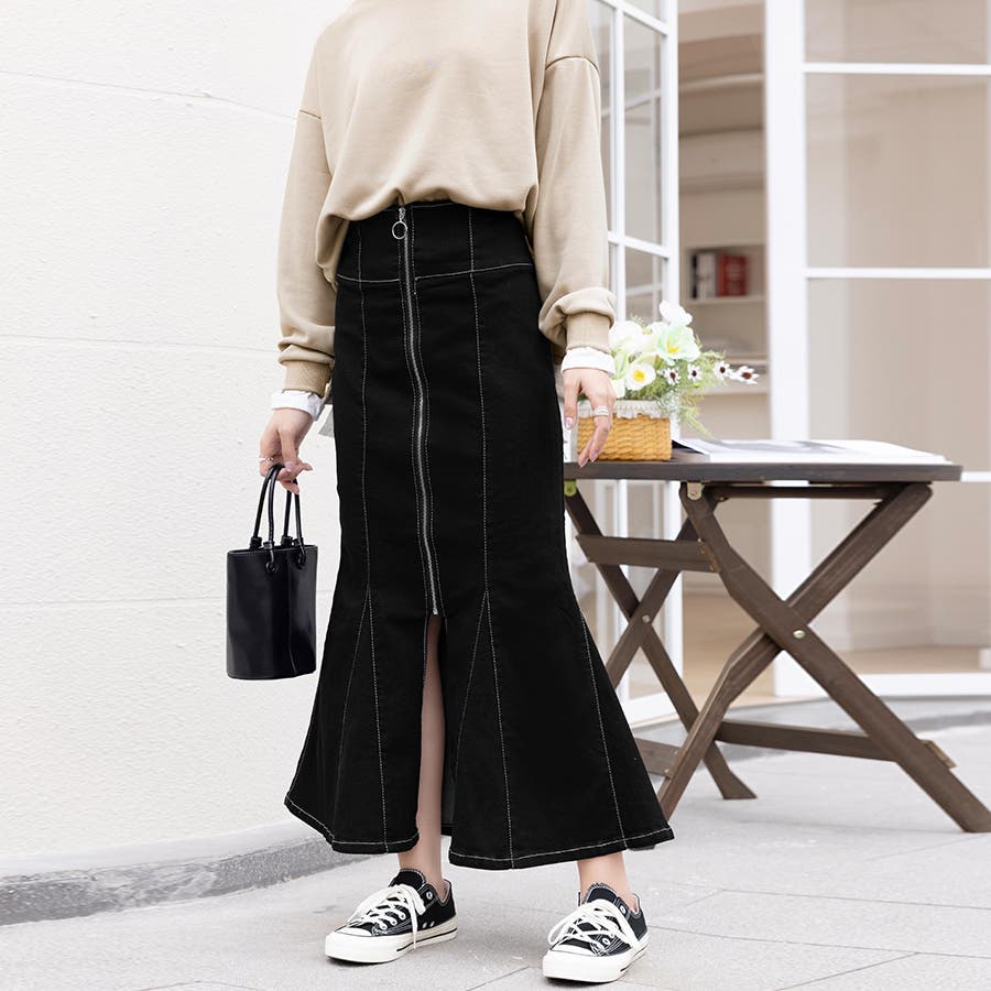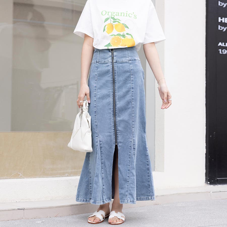 フロントのジップデザインが韓国風で可愛い!デニム生地を仕様したマーメイドスカートが新登場!