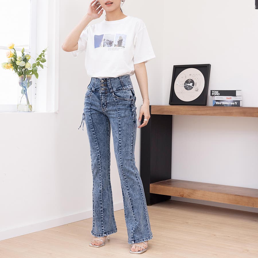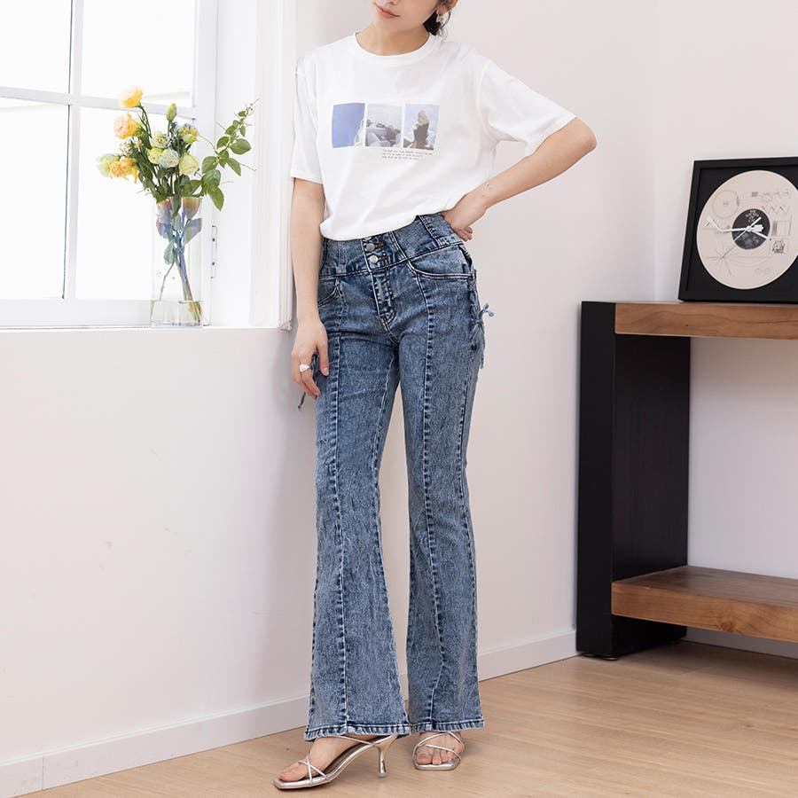 今トレンドのデニム生地感を使用したハイウエストフレアパンツが新登場!
