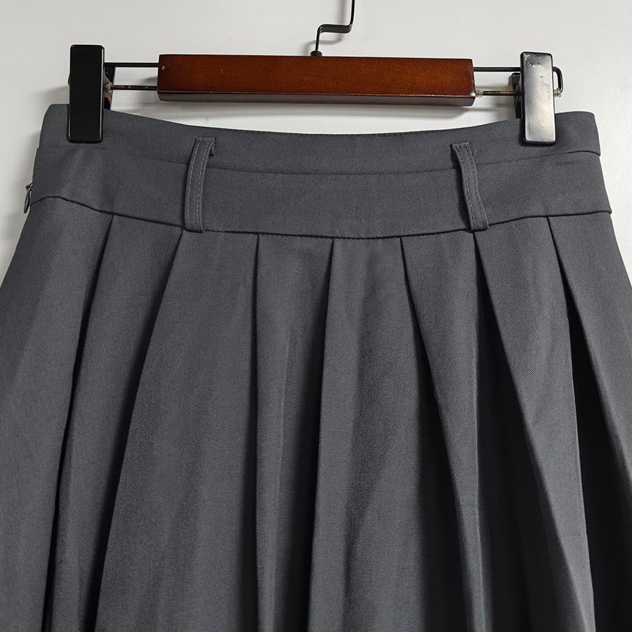 ハイウエスト×タック入りデザインで、腰回りをすっきり見せながら美しいフレアラインを演出。
