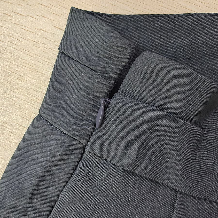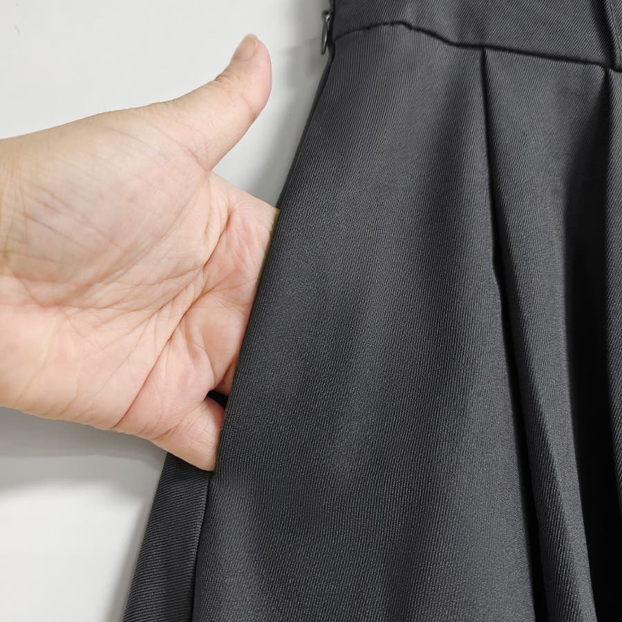ポリエステル素材を使用し、程よい厚みと裏地付きで透け感を気にせず着用可能。