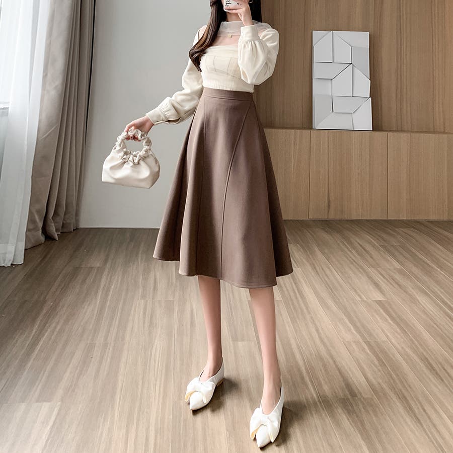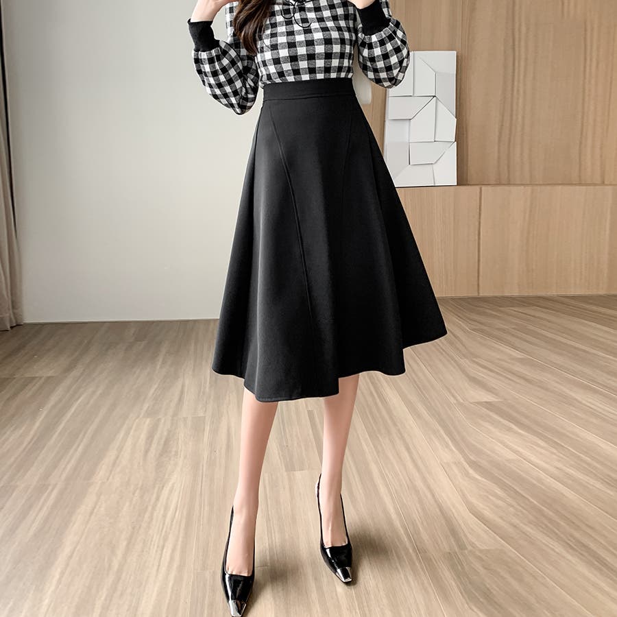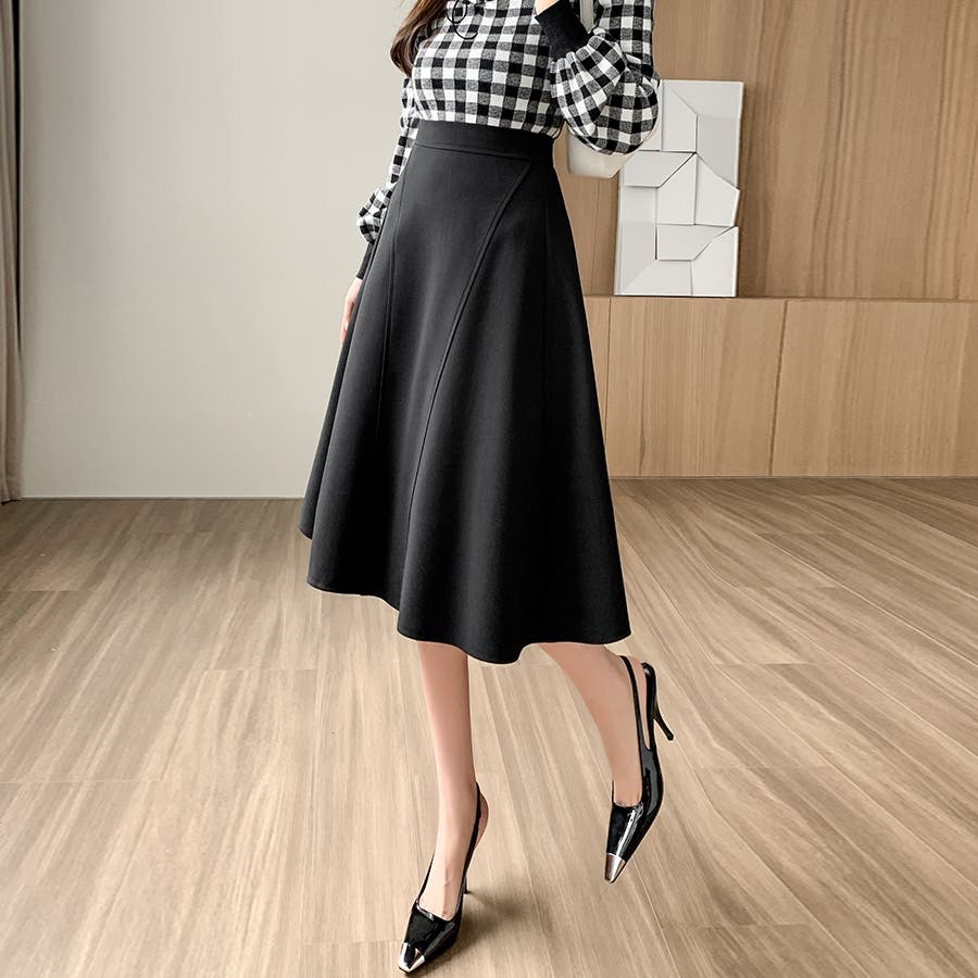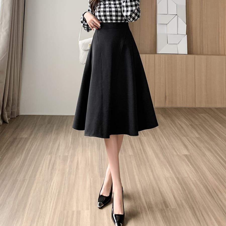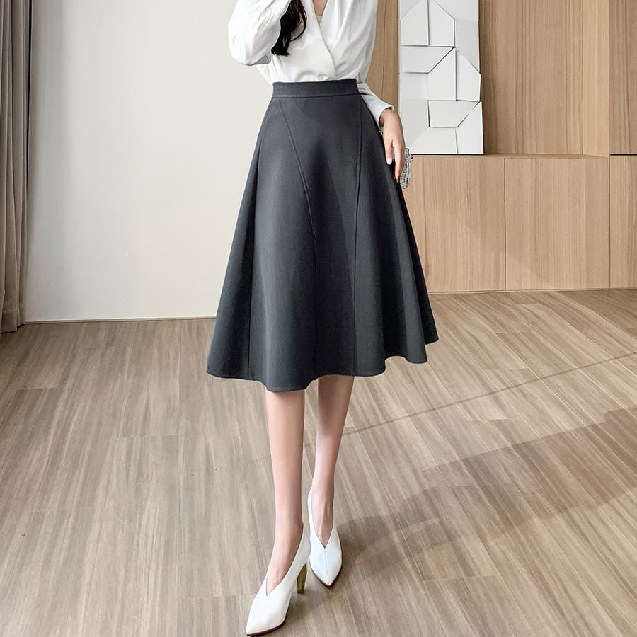 Aラインシルエットフレアミディアム丈スカート