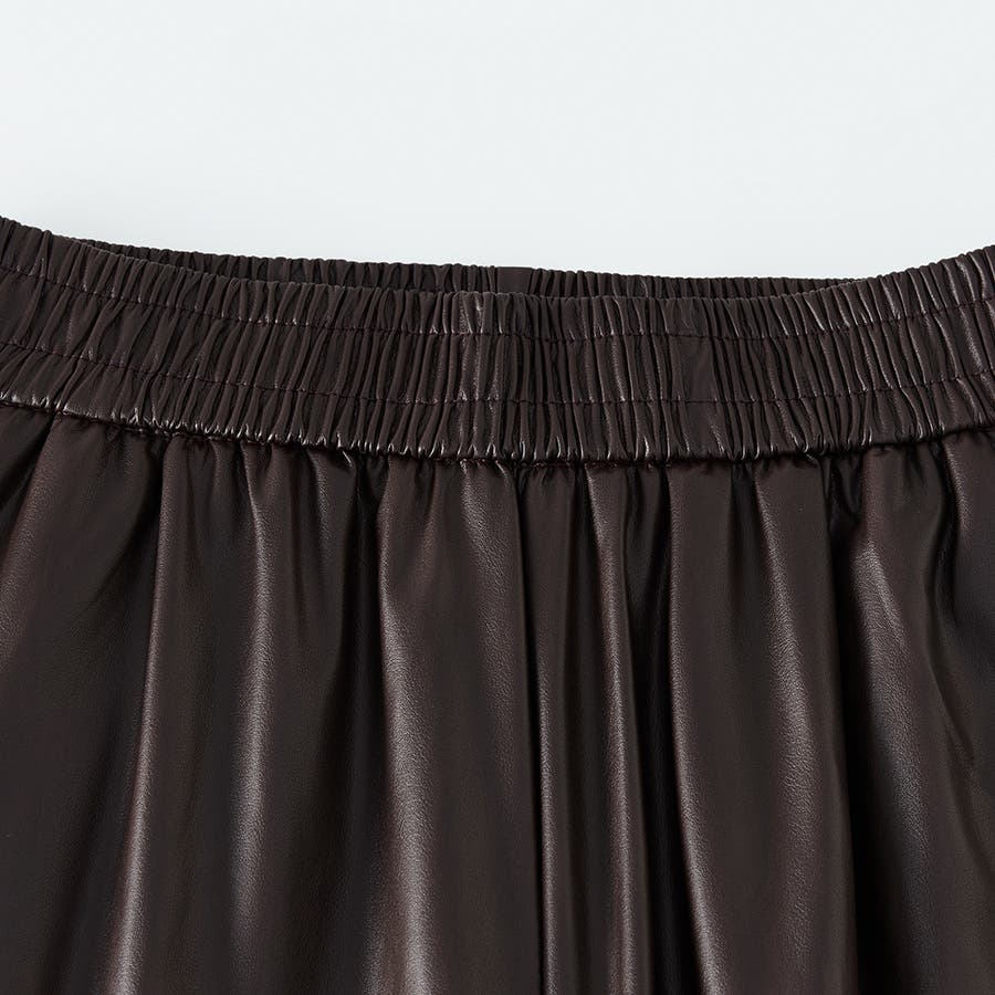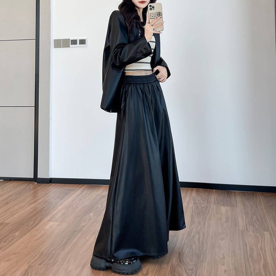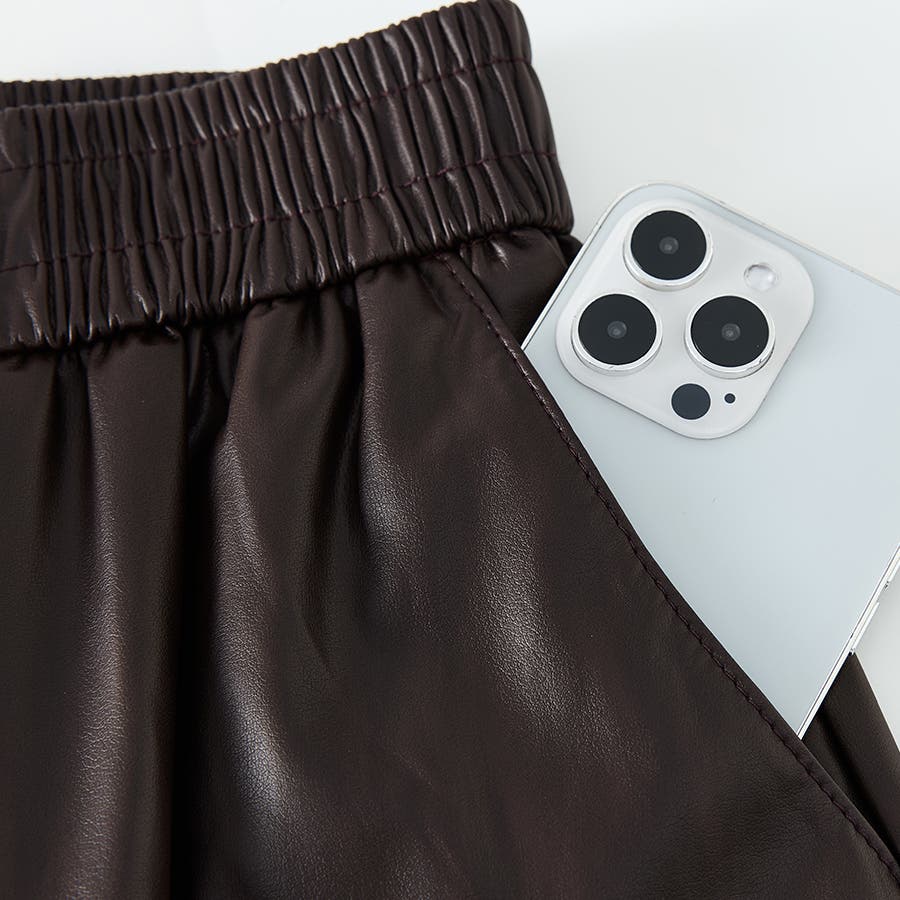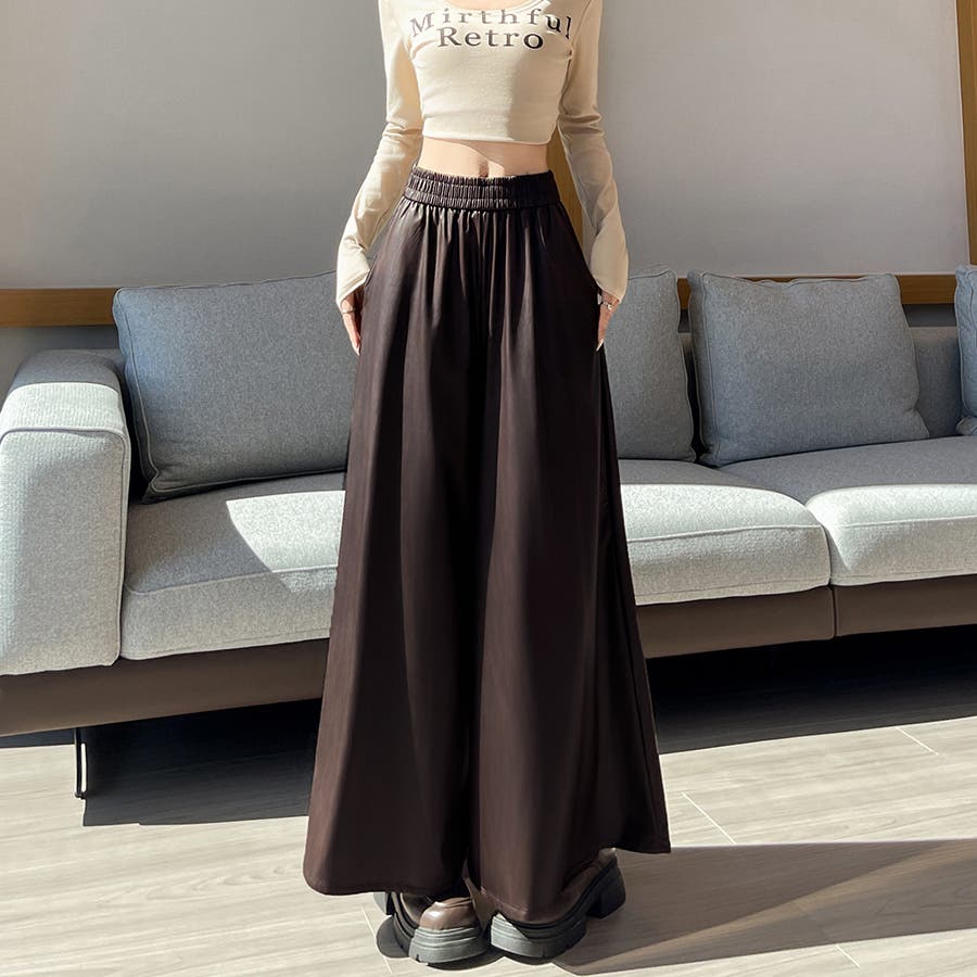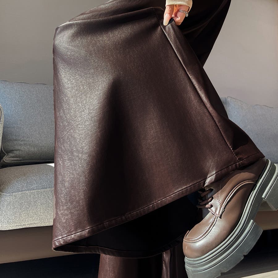 フェイクレザー素材を使用したワイドシルエットのロングパンツです。
