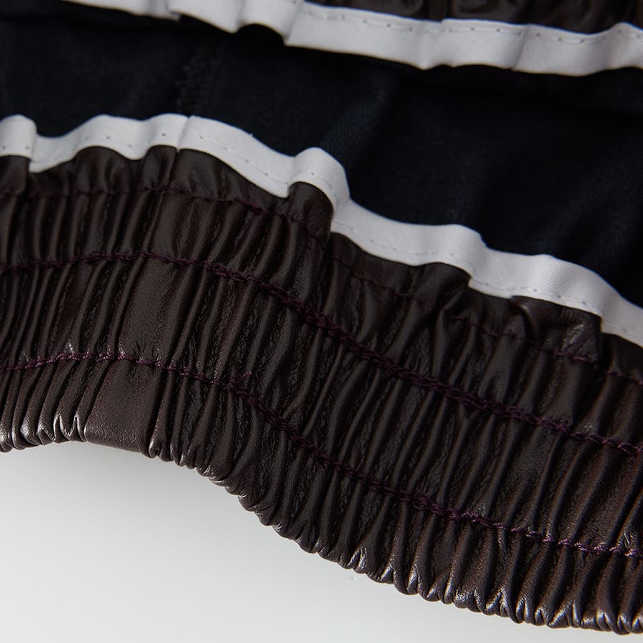 艶のある質感が、動くたびに光を受けて表情を変え、スタイリングに奥行きをプラス。