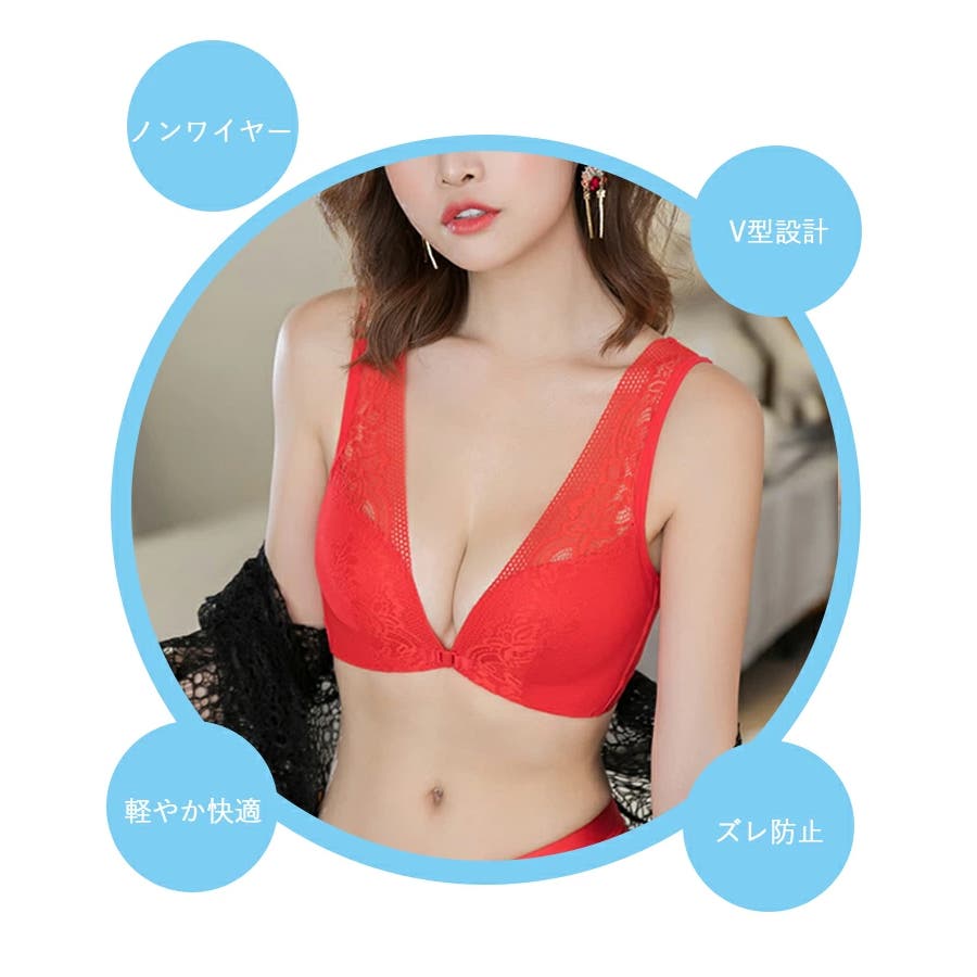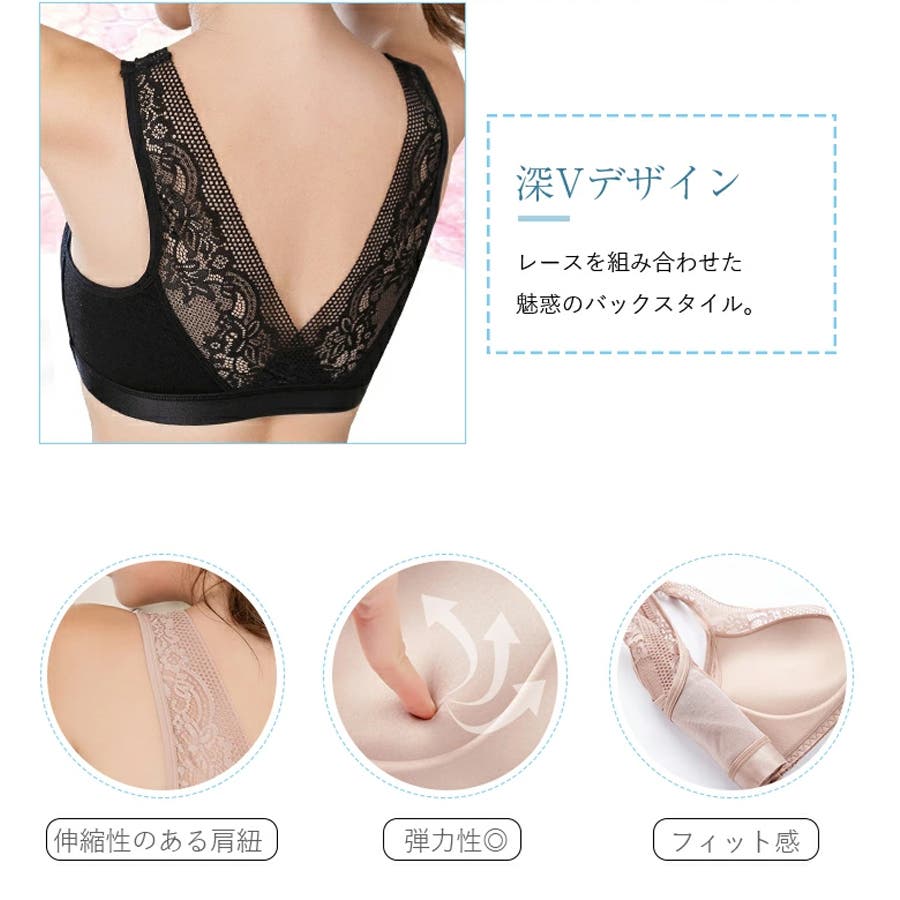ブラジャー ナイトブラ レース フロントホック ノンワイヤー 脇高