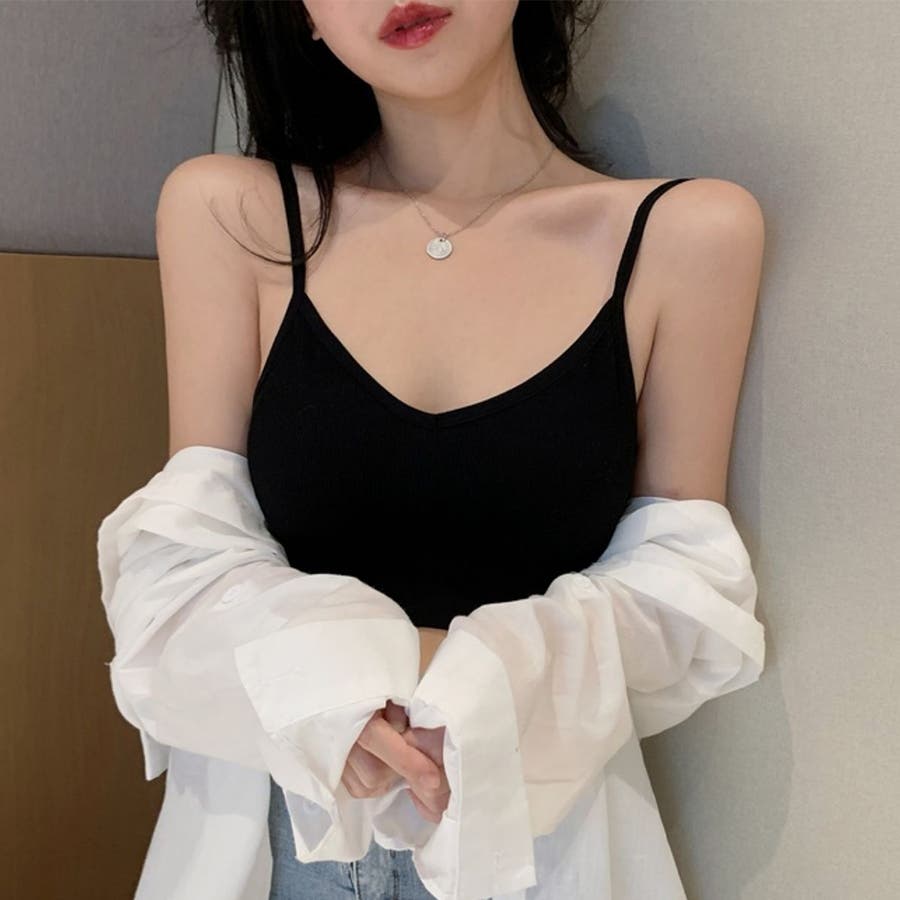 これ1枚で美胸メイクが叶う、カップ付きリブキャミソールです。