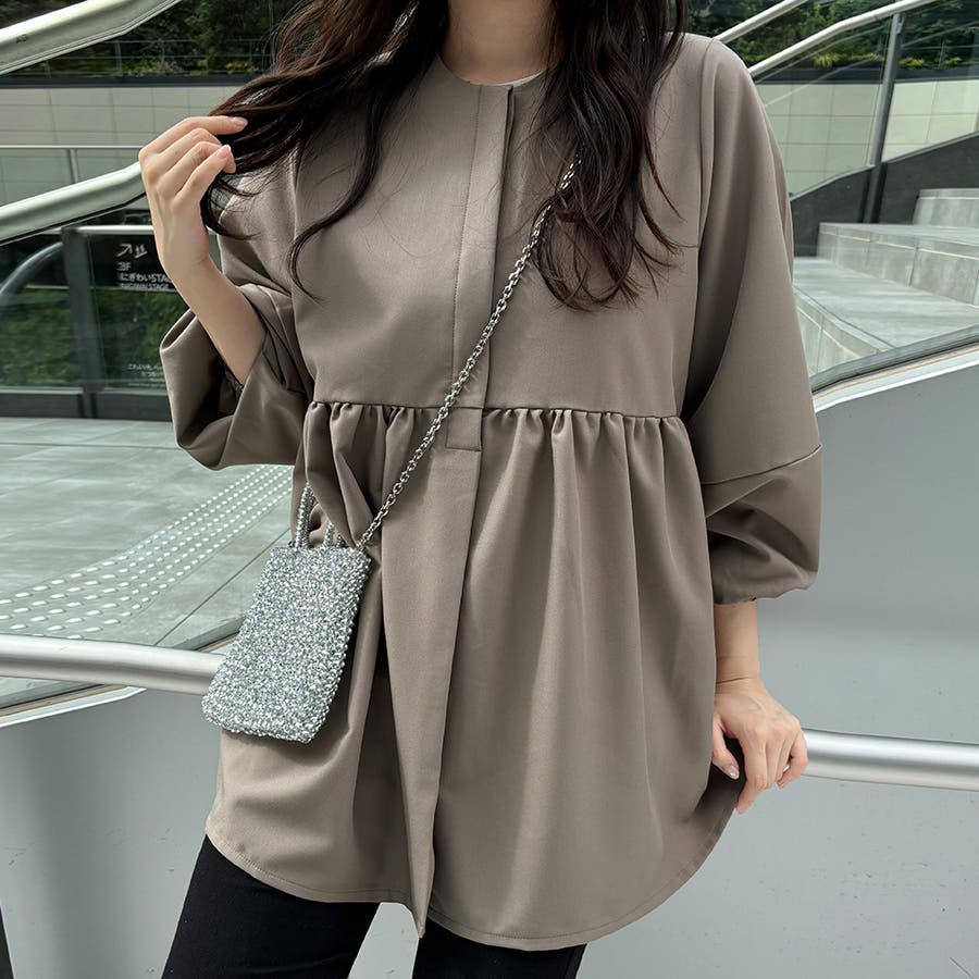 たっぷりギャザー切り替えて、ふんわりシルエットなのでマタニティ服でも◎