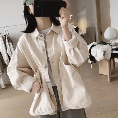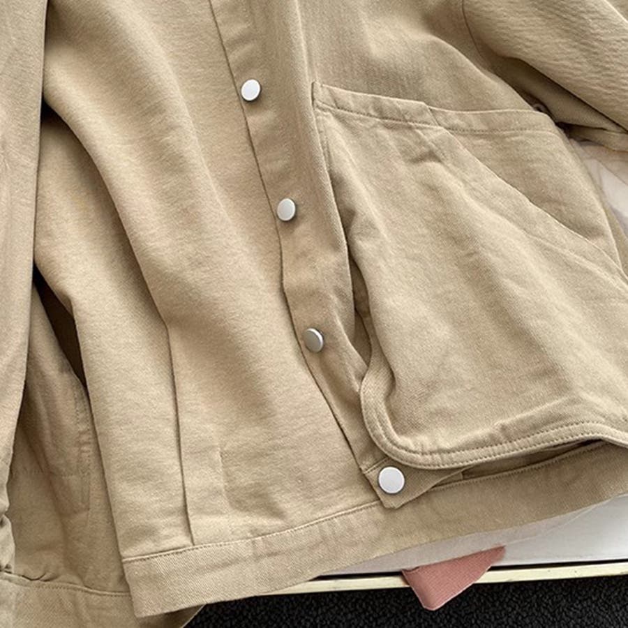 裏地なしのすっきり設計で、春秋の軽アウターとして活躍します。