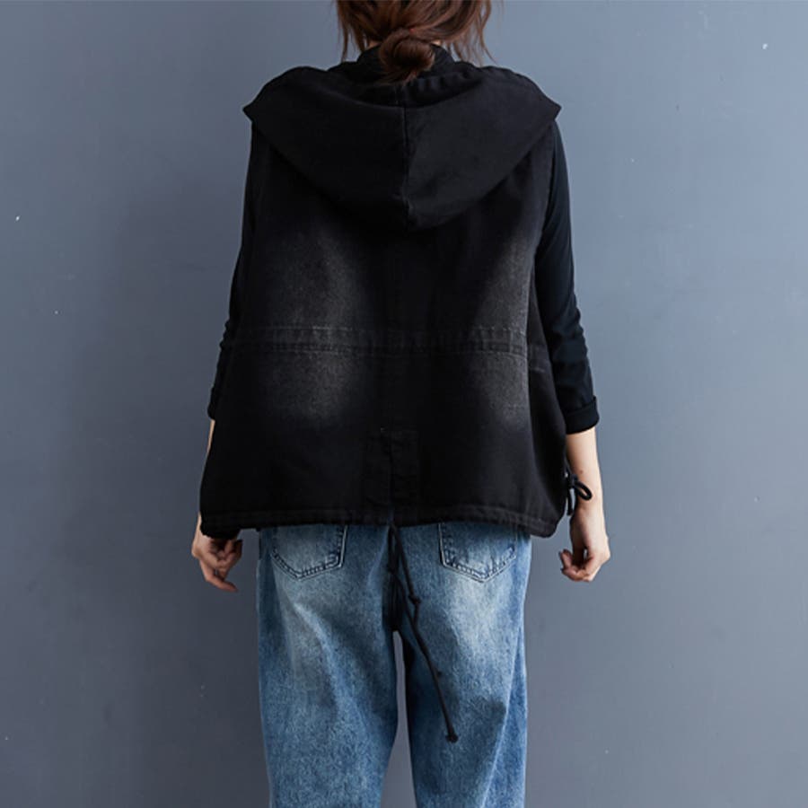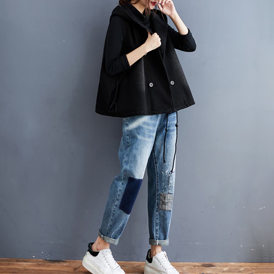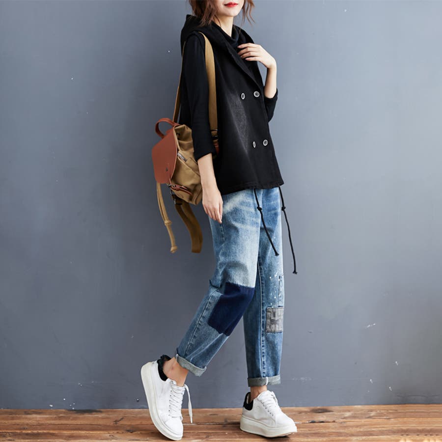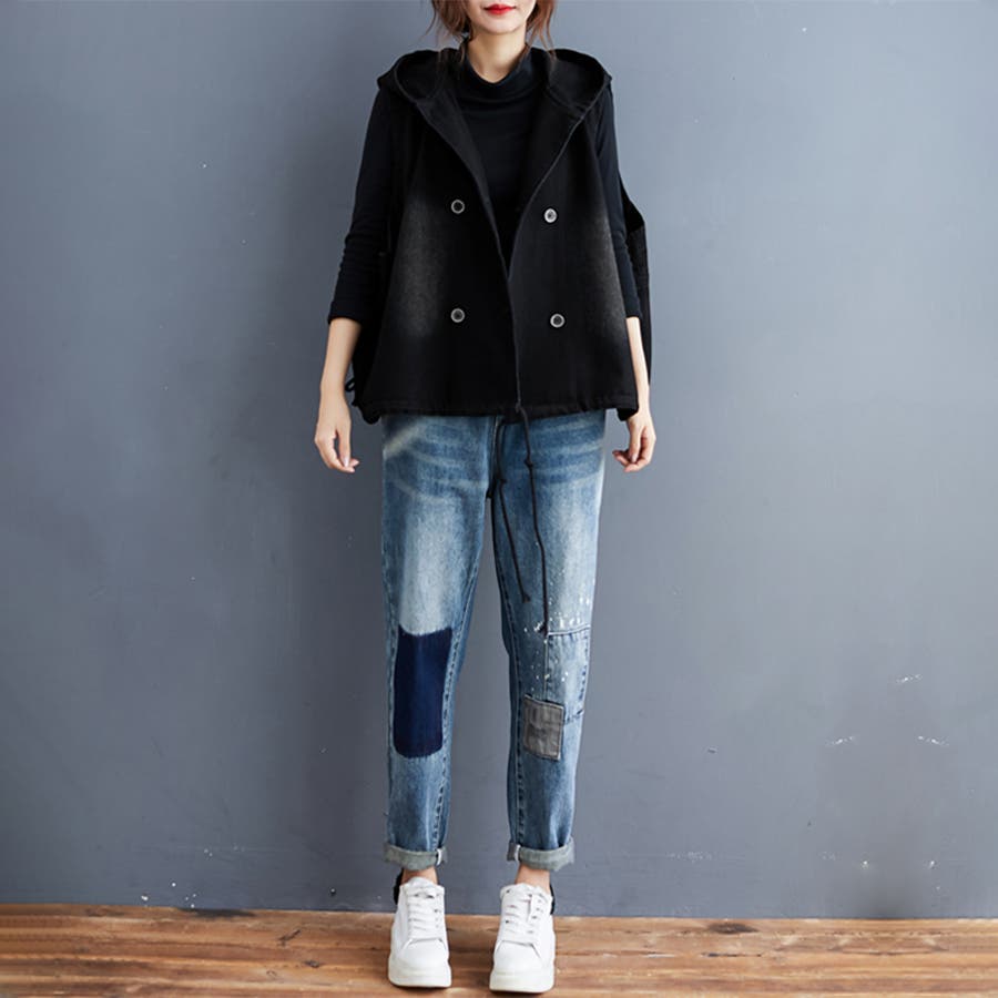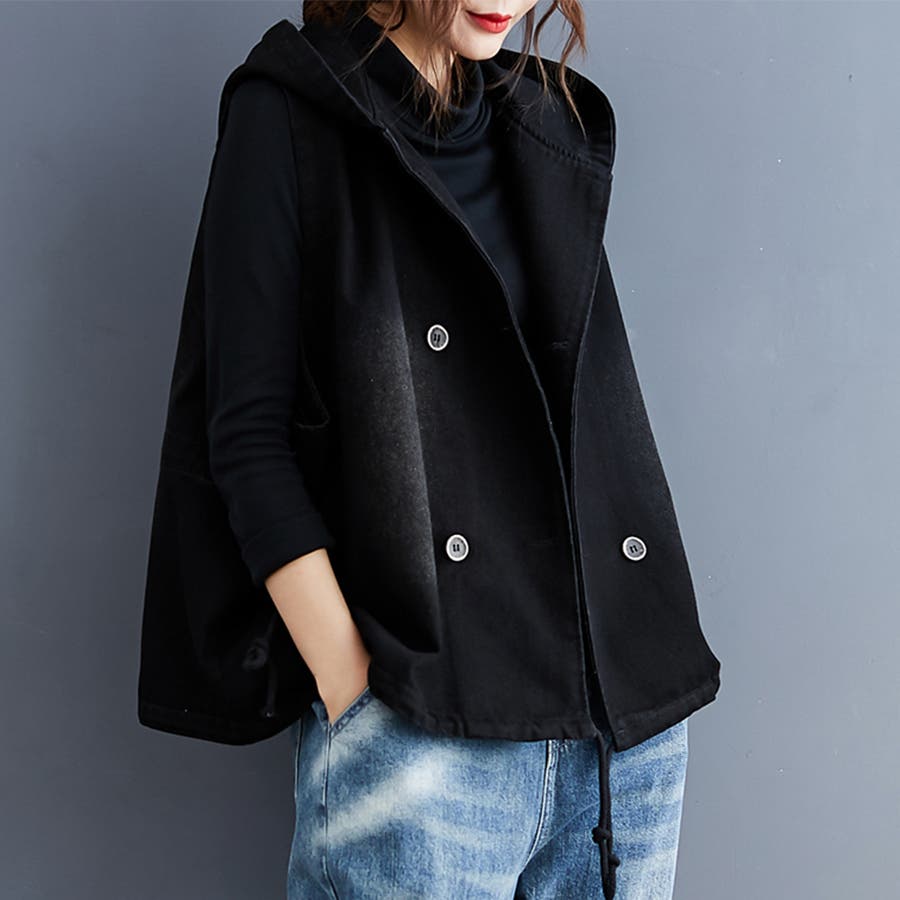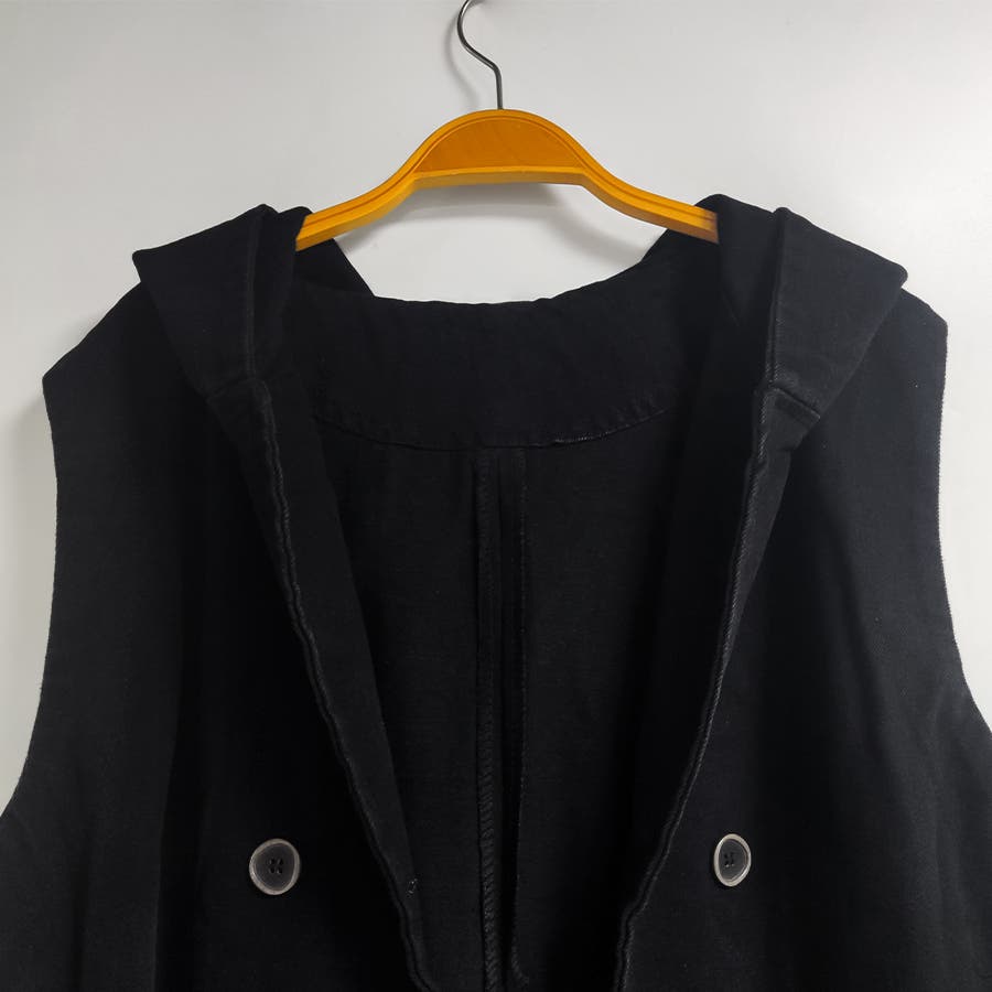 フード付きダブルボタンベスト